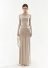 Draped Neck Long Sleeve Top and Ruched Maxi Skirt Two-Piece Set