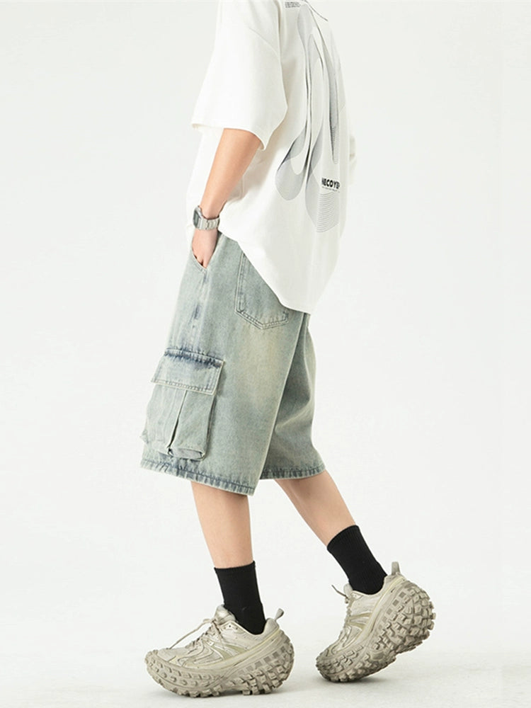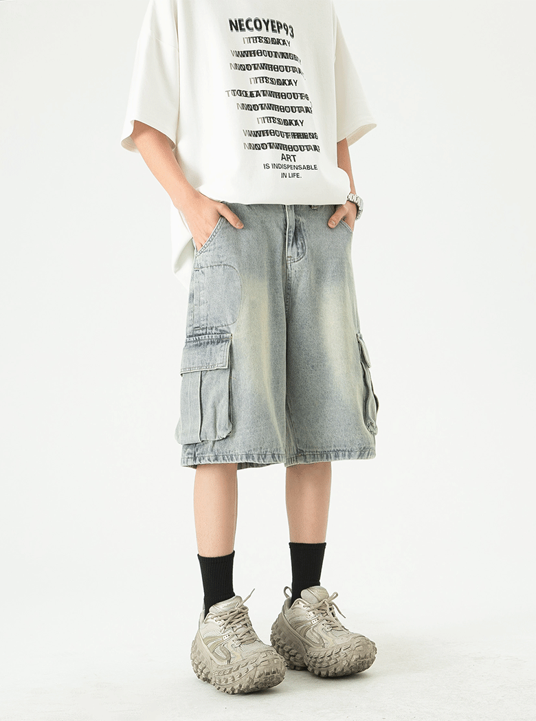 Read full Return PolicyConstructed with a premium blend of fabrics, these shorts offer both durability and comfort. The timeless denim is washed to achieve a vintage fade, while the relaxed fit and above-the-knee cut enhance mobility without compromising on style. Cargo pockets add a functional edge, perfect for storing your essentials.