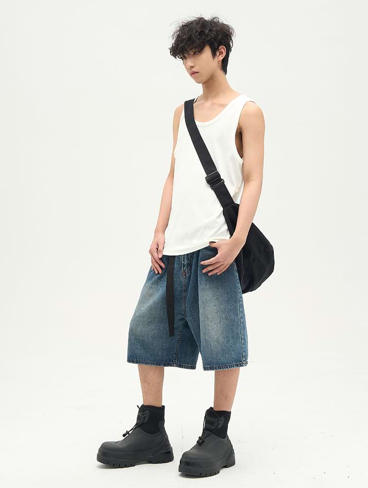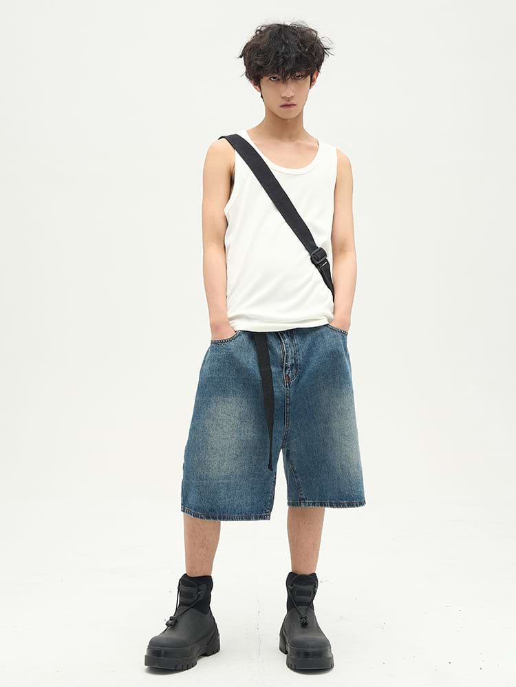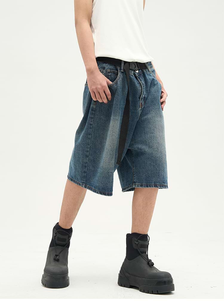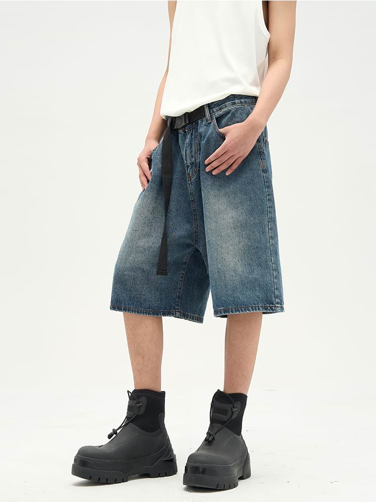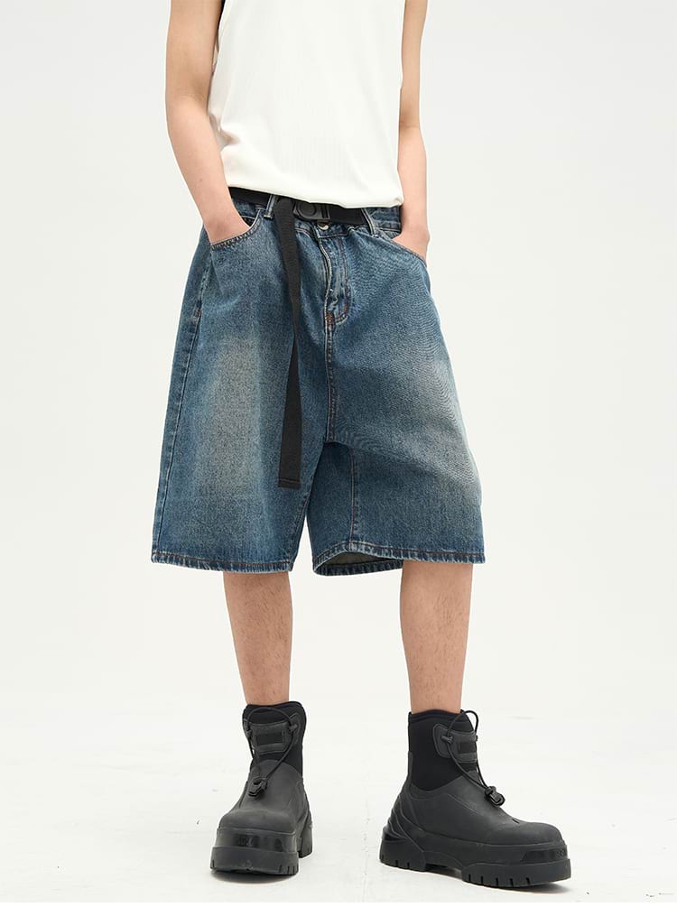 Read full Return PolicyThese faded denim shorts offer a casual look perfect for warm weather. With their versatile style and strap, they can be paired with any top and sandals or sneakers for a complete look. Their quality denim fabric ensures maximum comfort and durability.