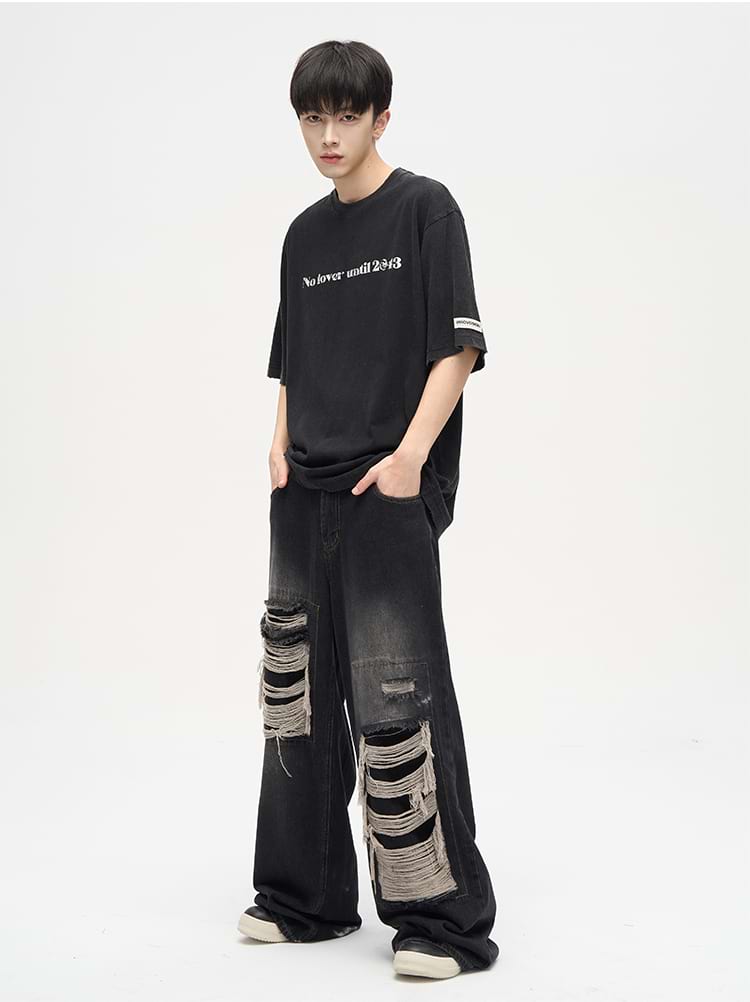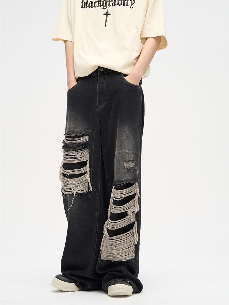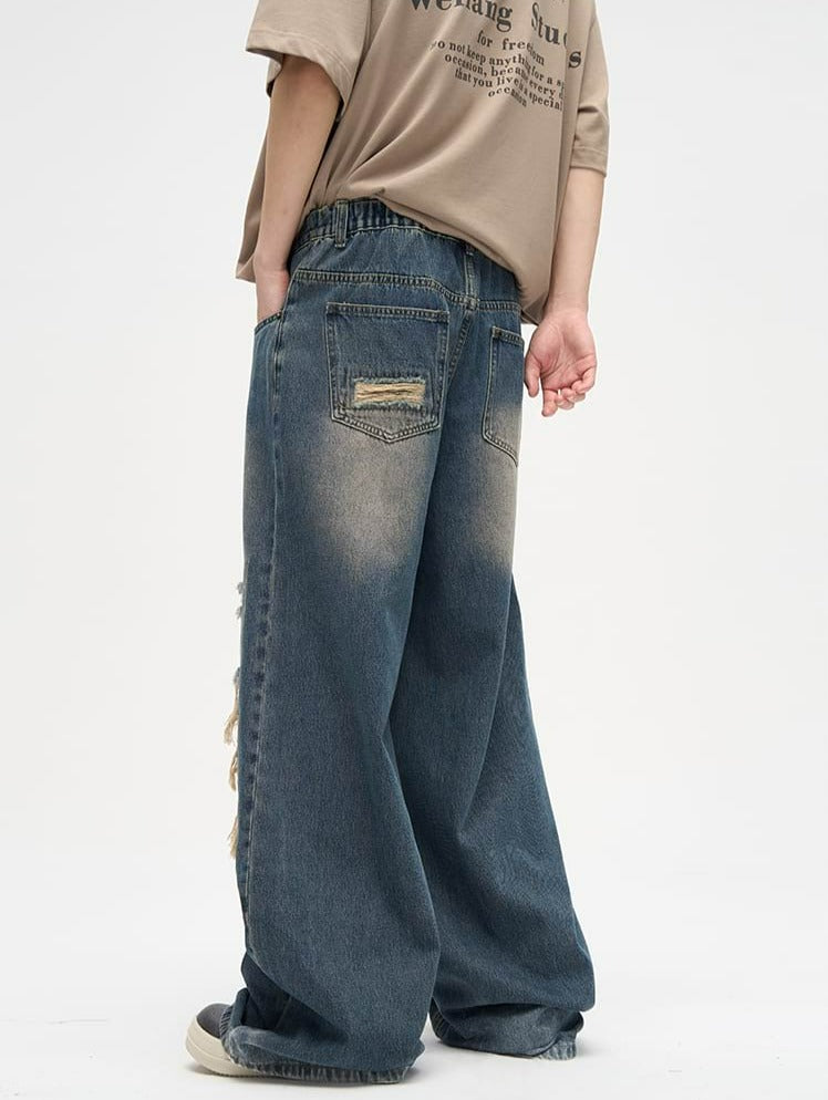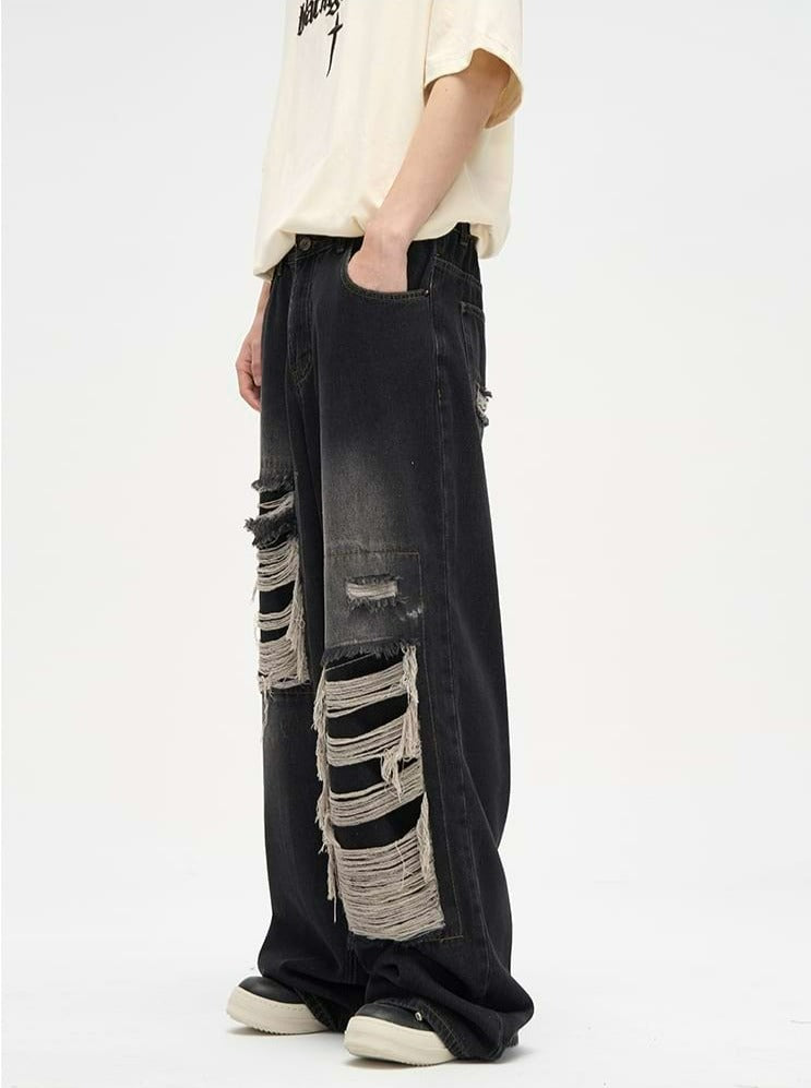 Faded Distressed Patchwork Jeans
