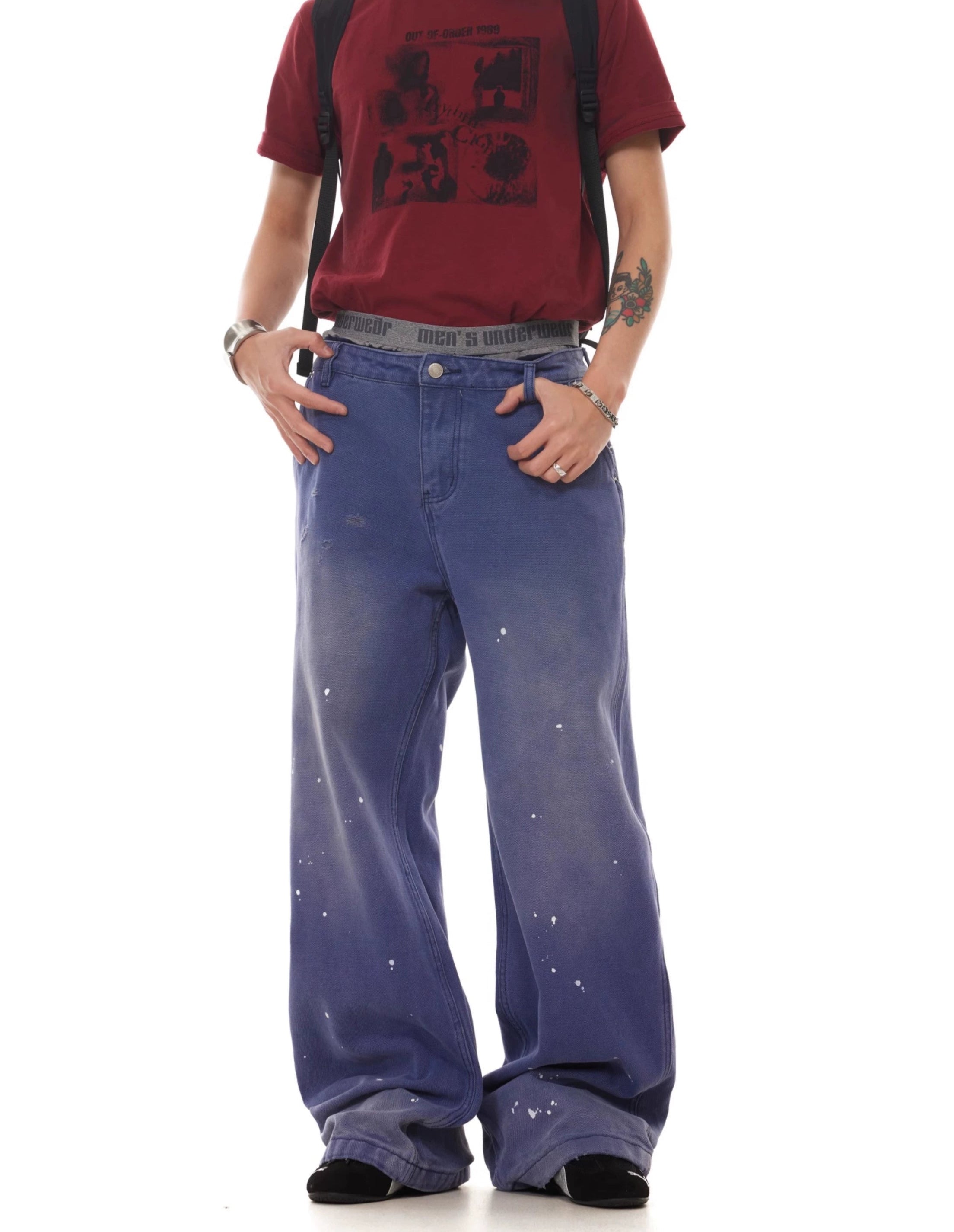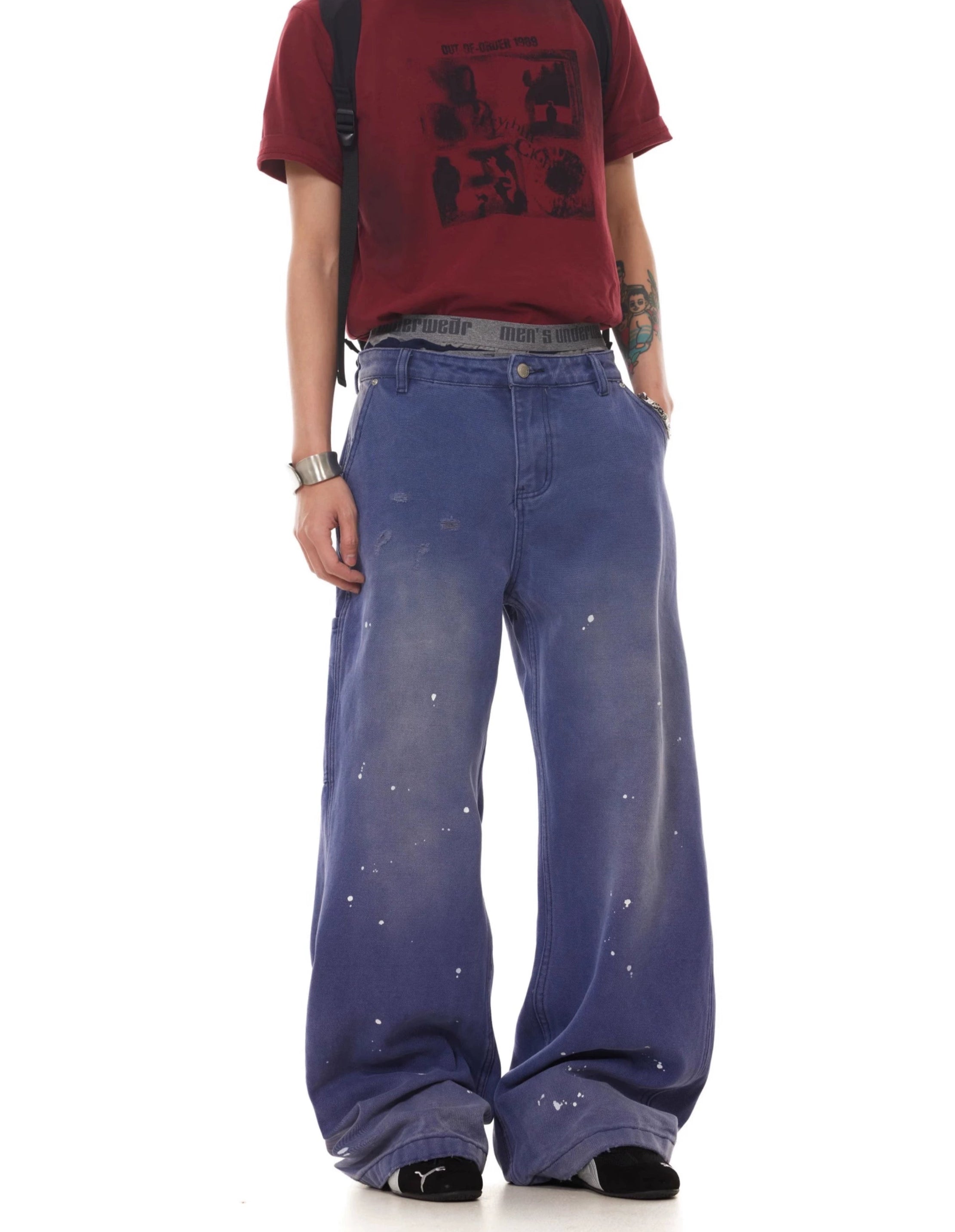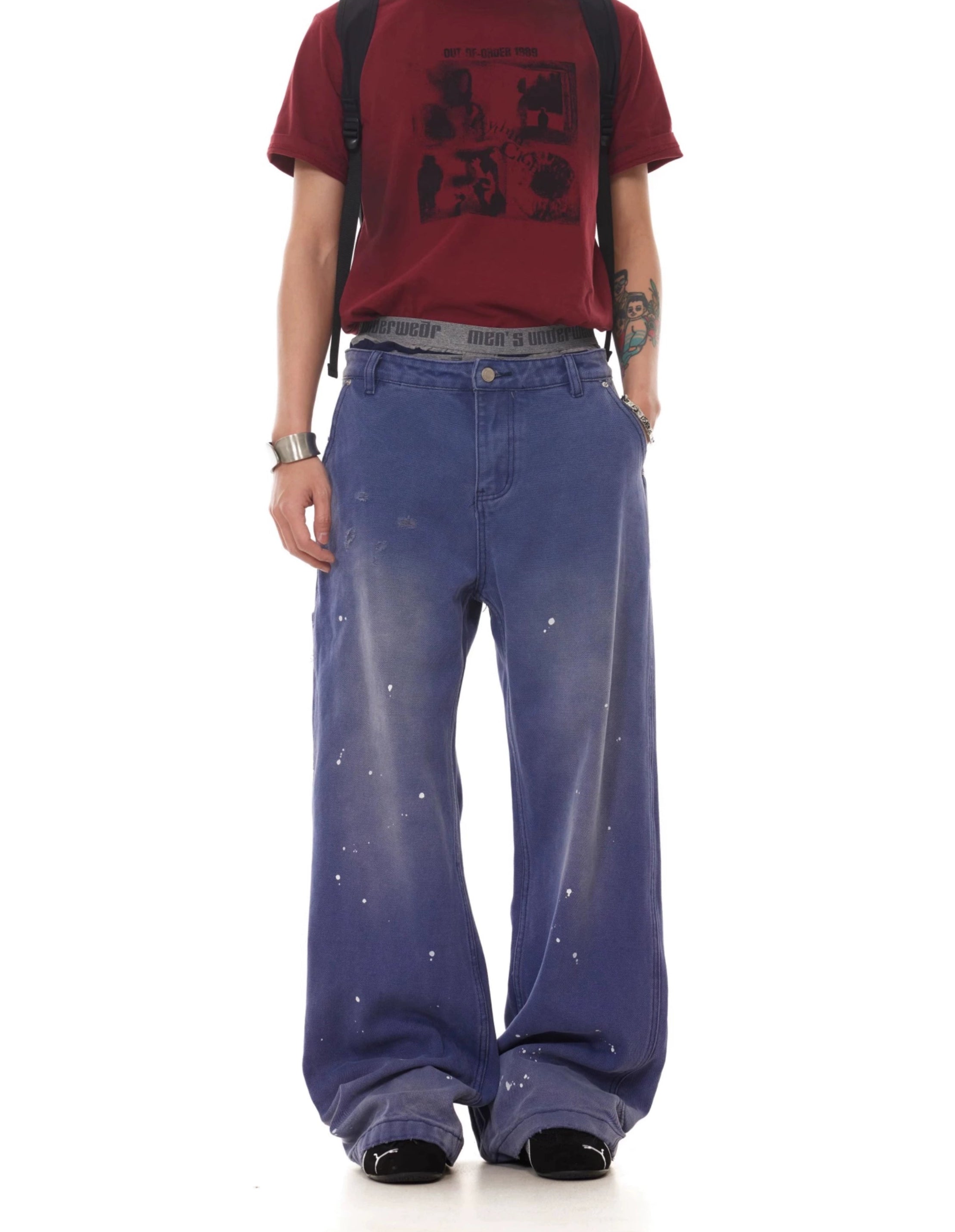 Faded Paint Splatter Low-Rise Wide-Leg Jeans