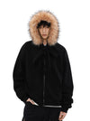 Made with a composite fabric and weighing in at 420 grams, this hoodie promises both warmth and durability. Its loose fit, combined with the faux fur lining, offers an exceptional blend of functionality and edgy aesthetics, perfect for daily wear. The bow detail adds a nonchalant touch to the practical zip-up design, allowing for easy layering over your favorite outfits.
