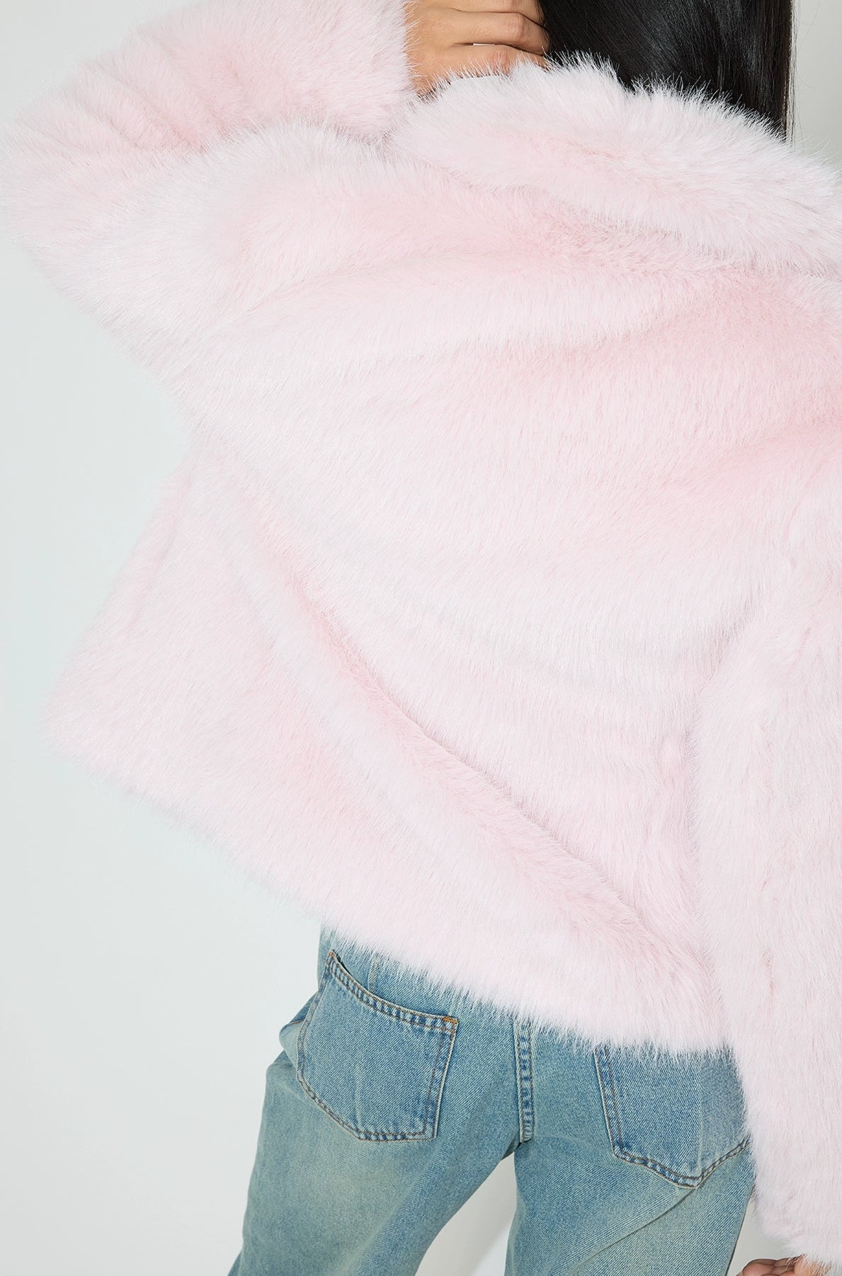 Crafted from high-quality faux fur, this medium-weight jacket features a structured V-shaped neckline, cropped length, and functional side pockets. The relaxed silhouette and plush texture balance form and function, giving off a look that’s both refined and relaxed.
