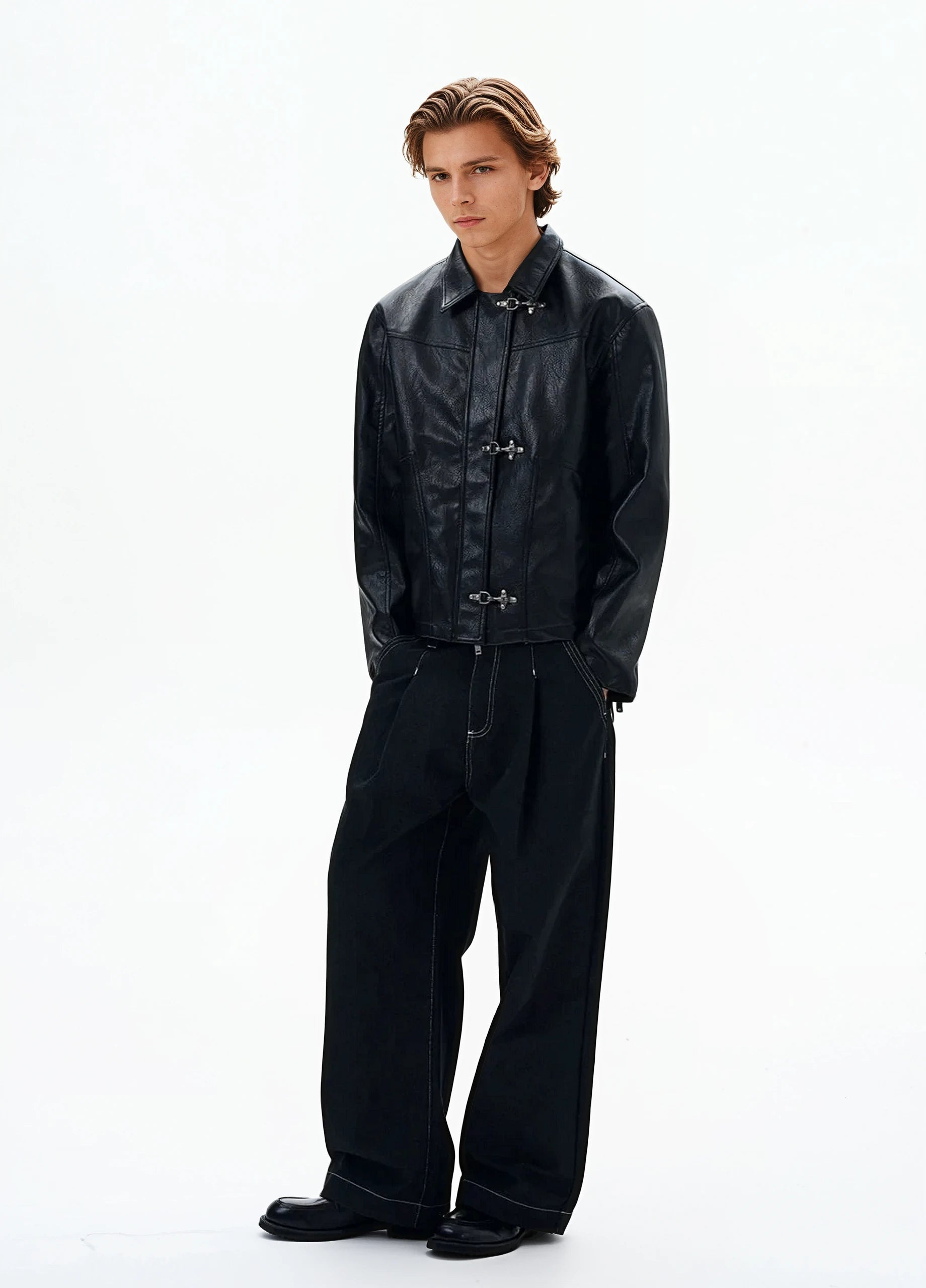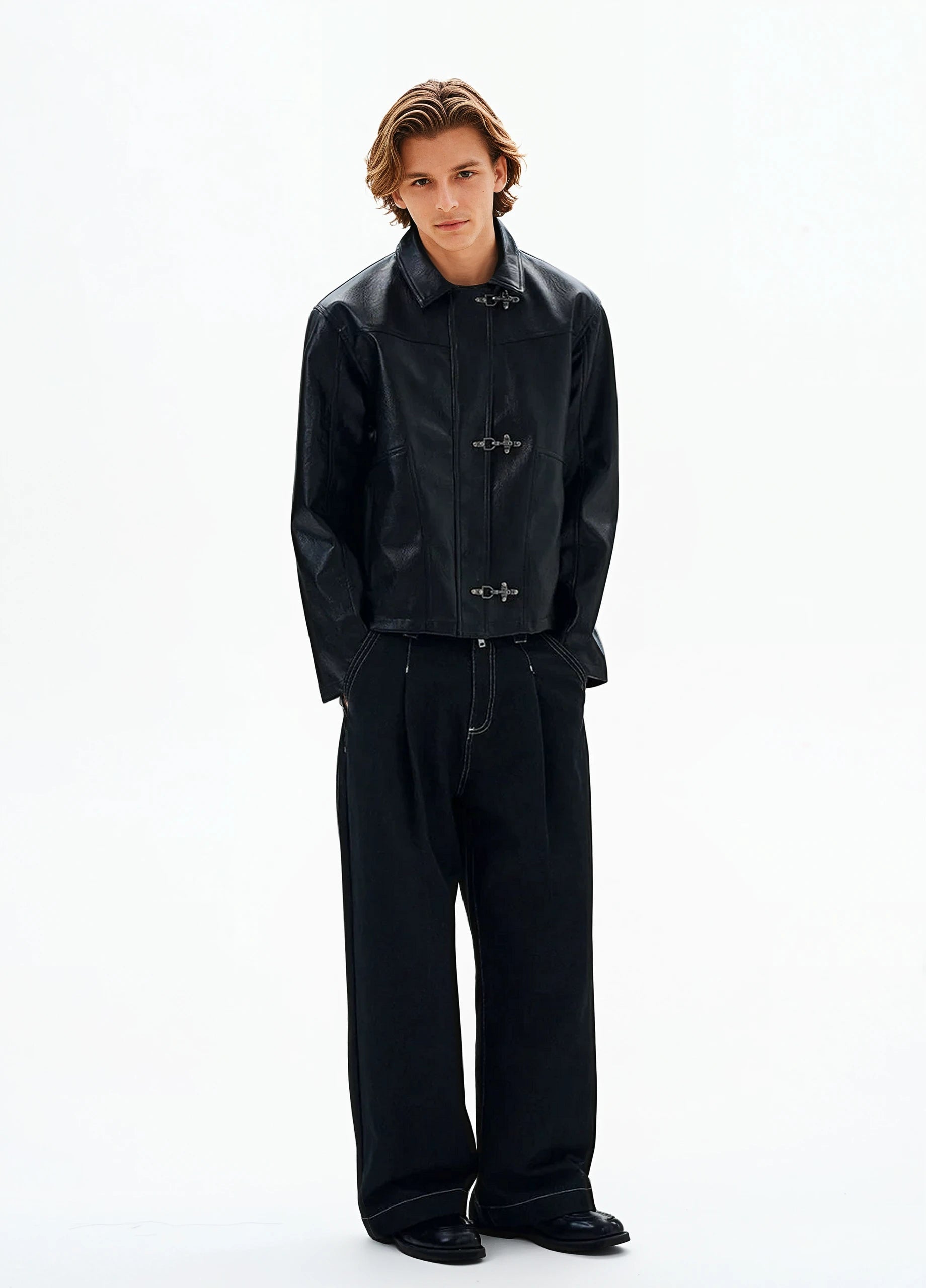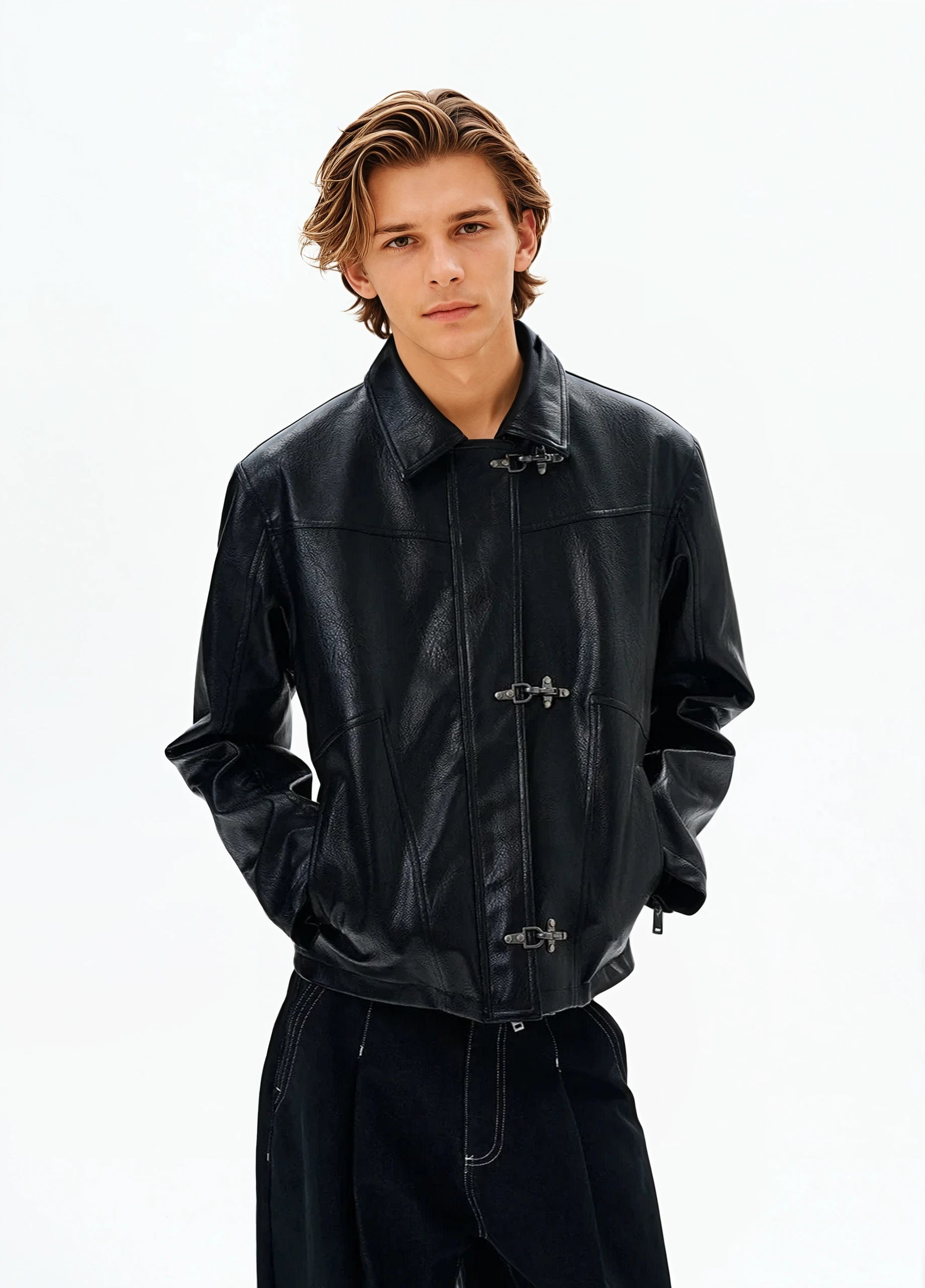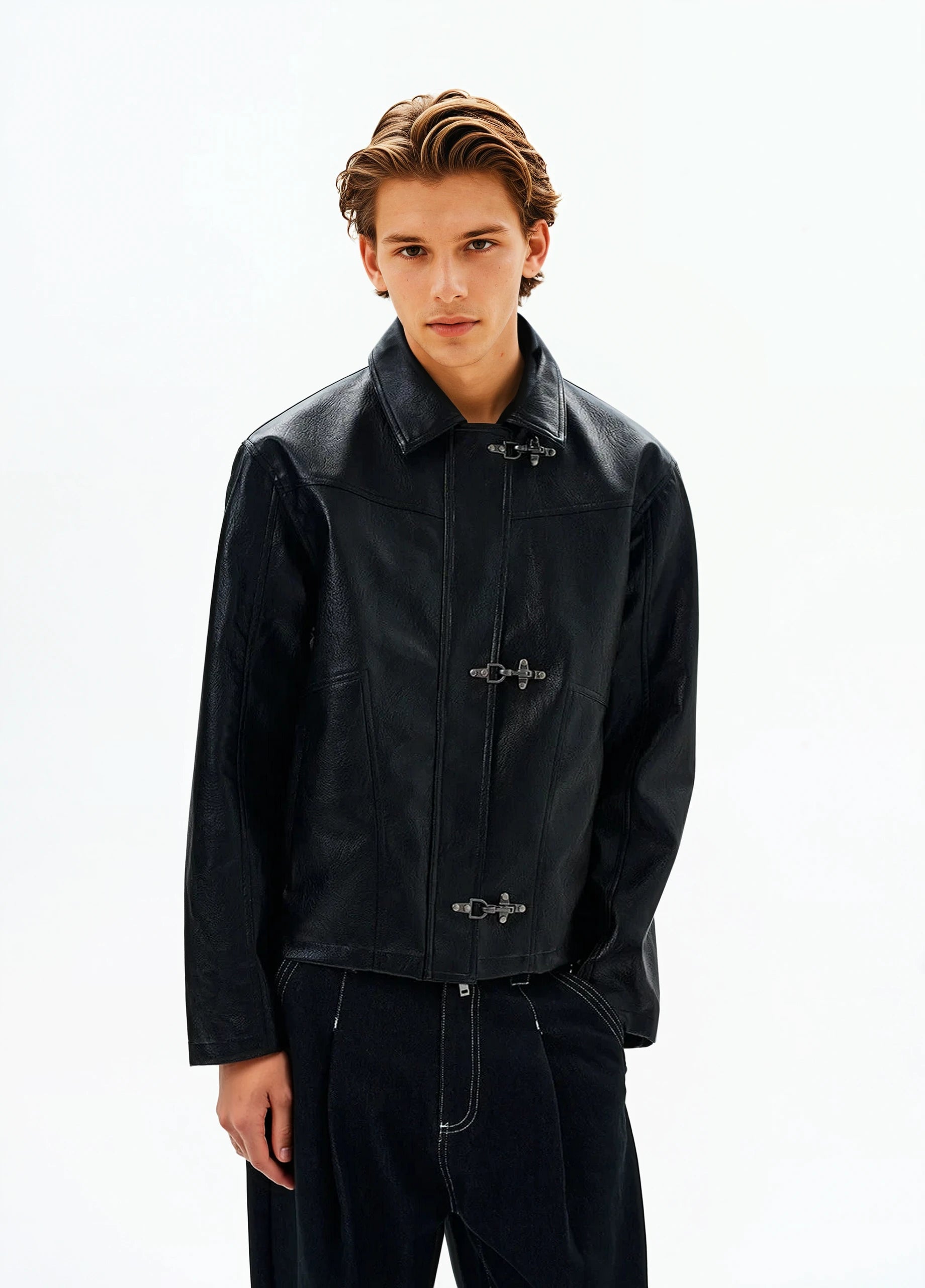 Fireman Buckle Mid-Crop Faux Leather Jacket