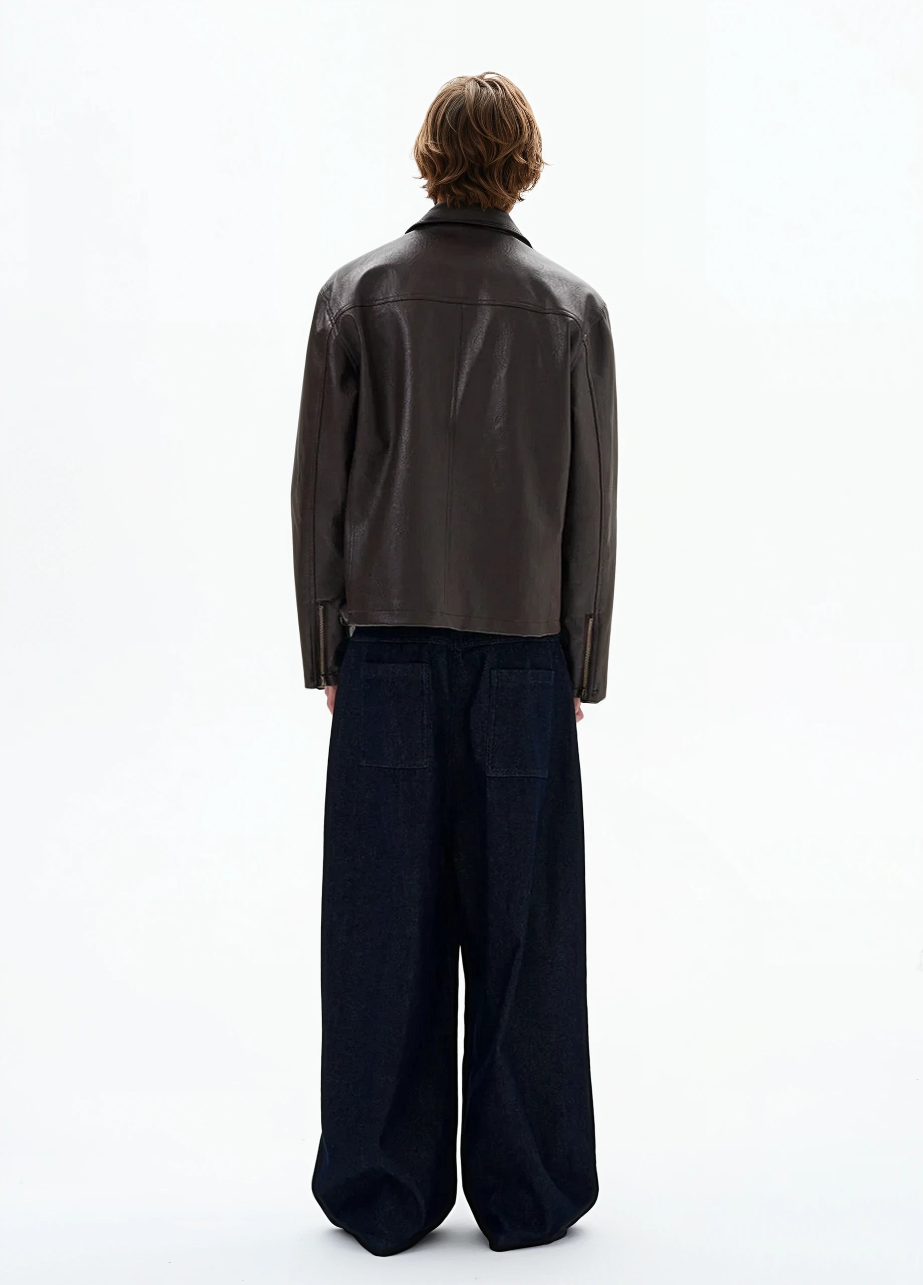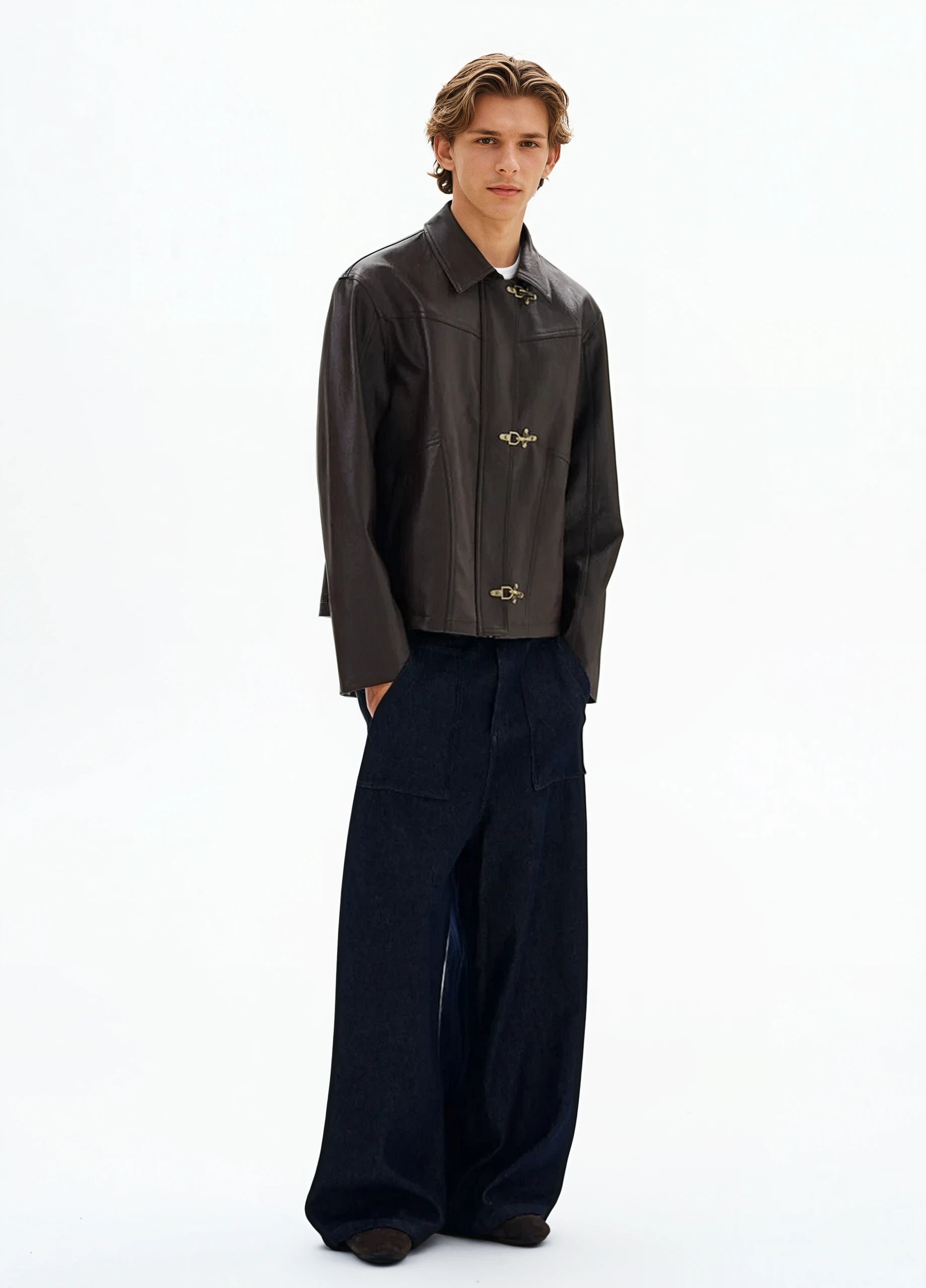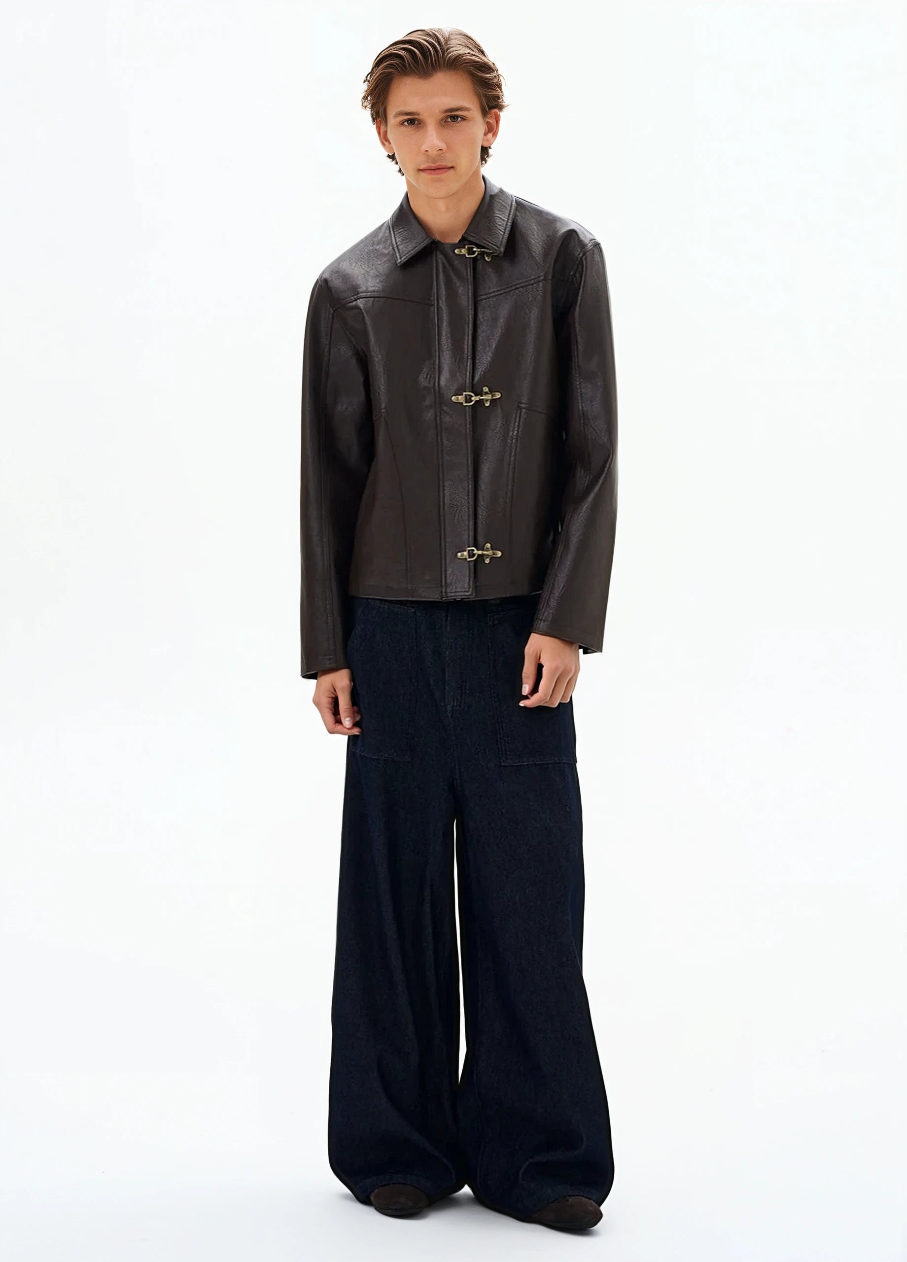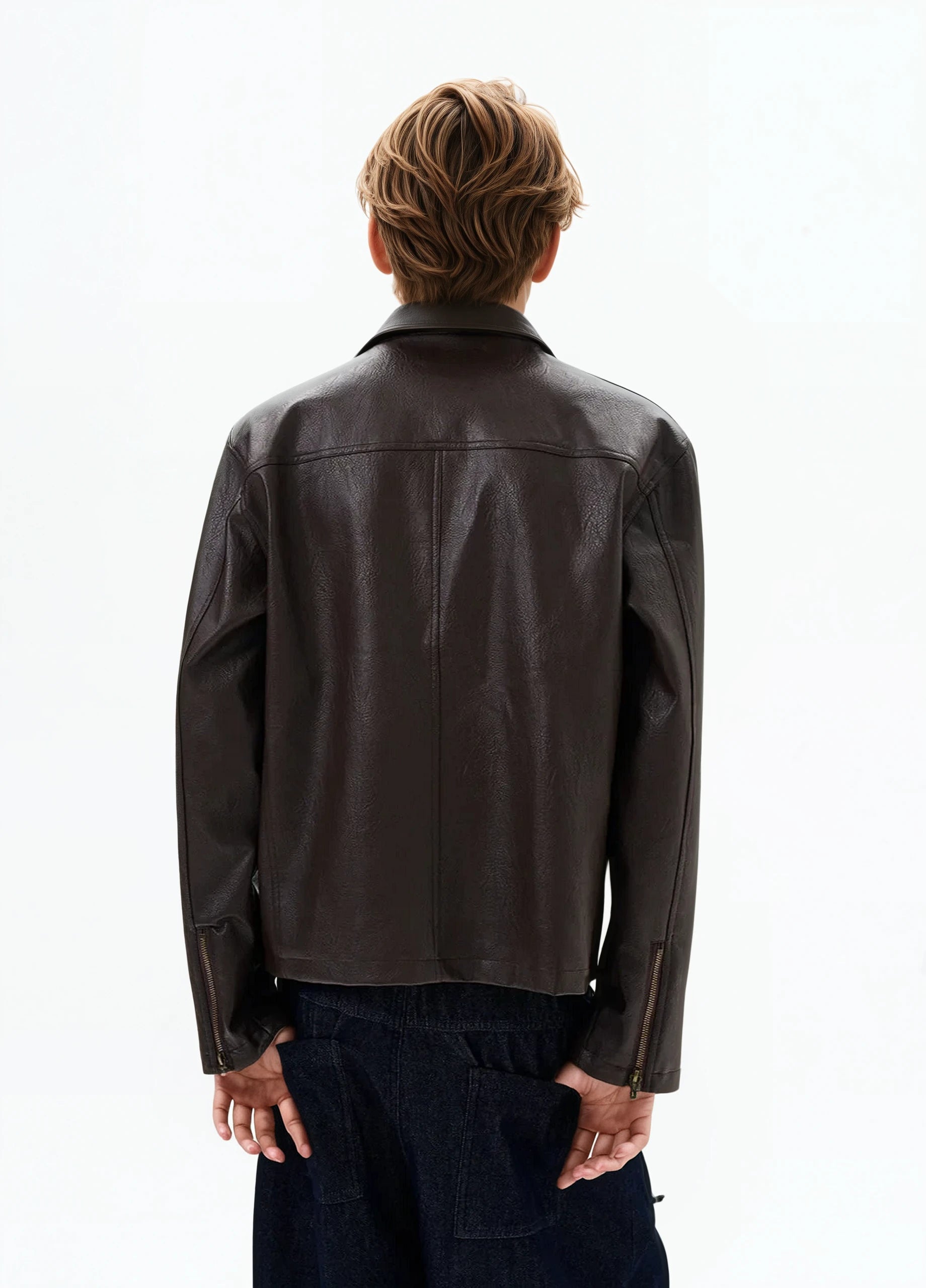 Fireman Buckle Mid-Crop Faux Leather Jacket