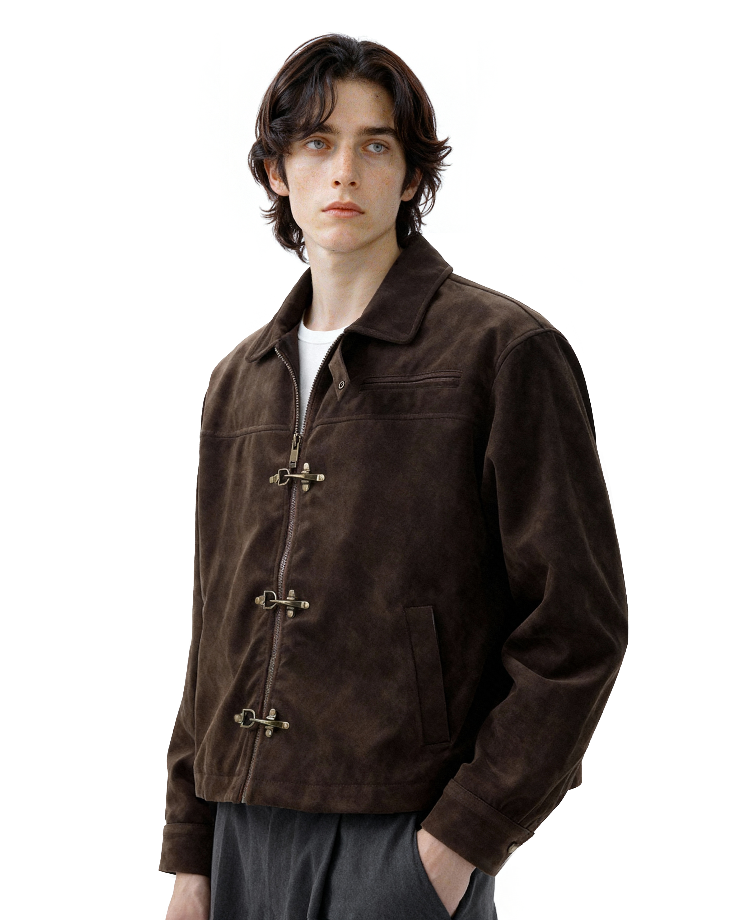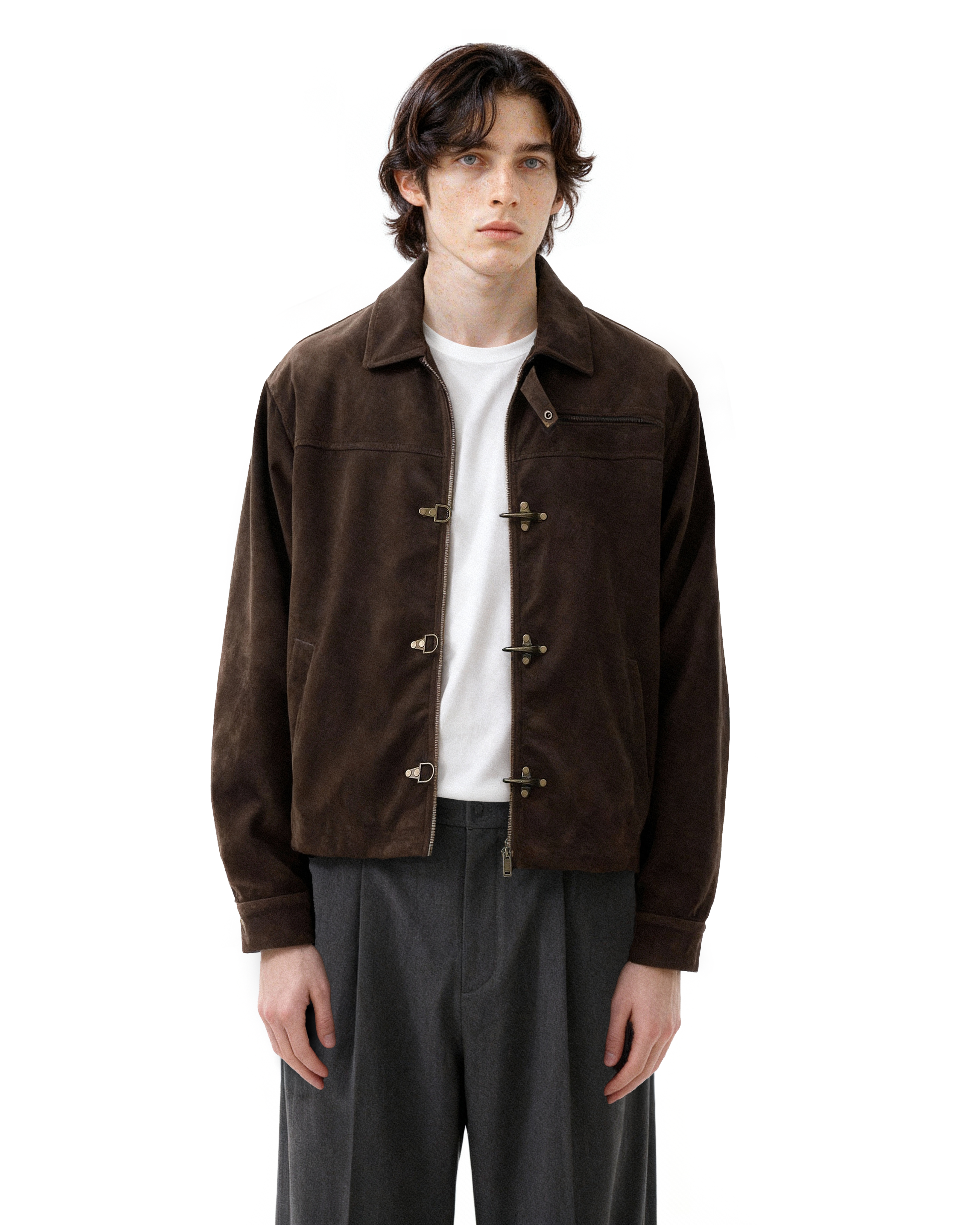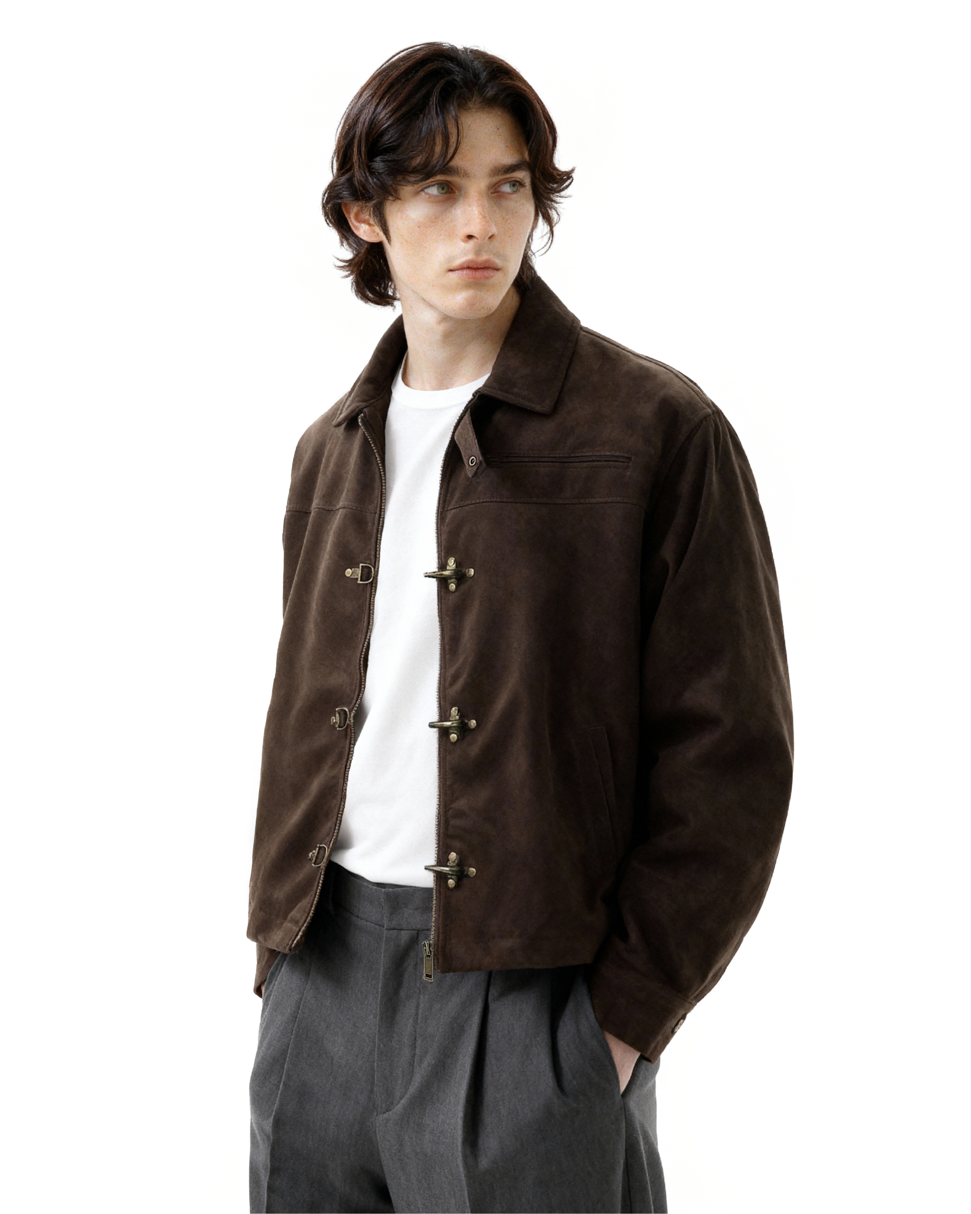 Fireman Buckle Mid-Crop Worker Suede Jacket