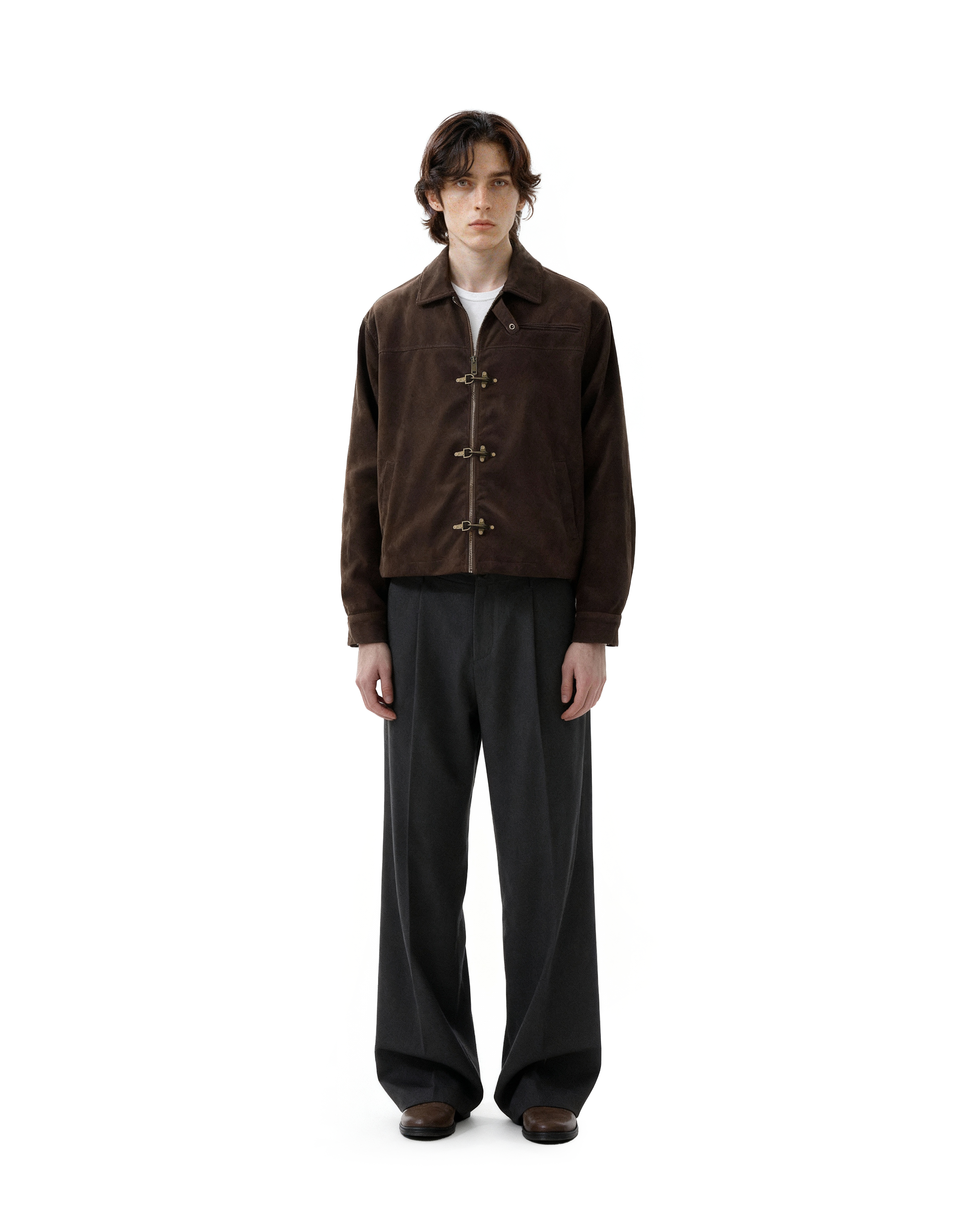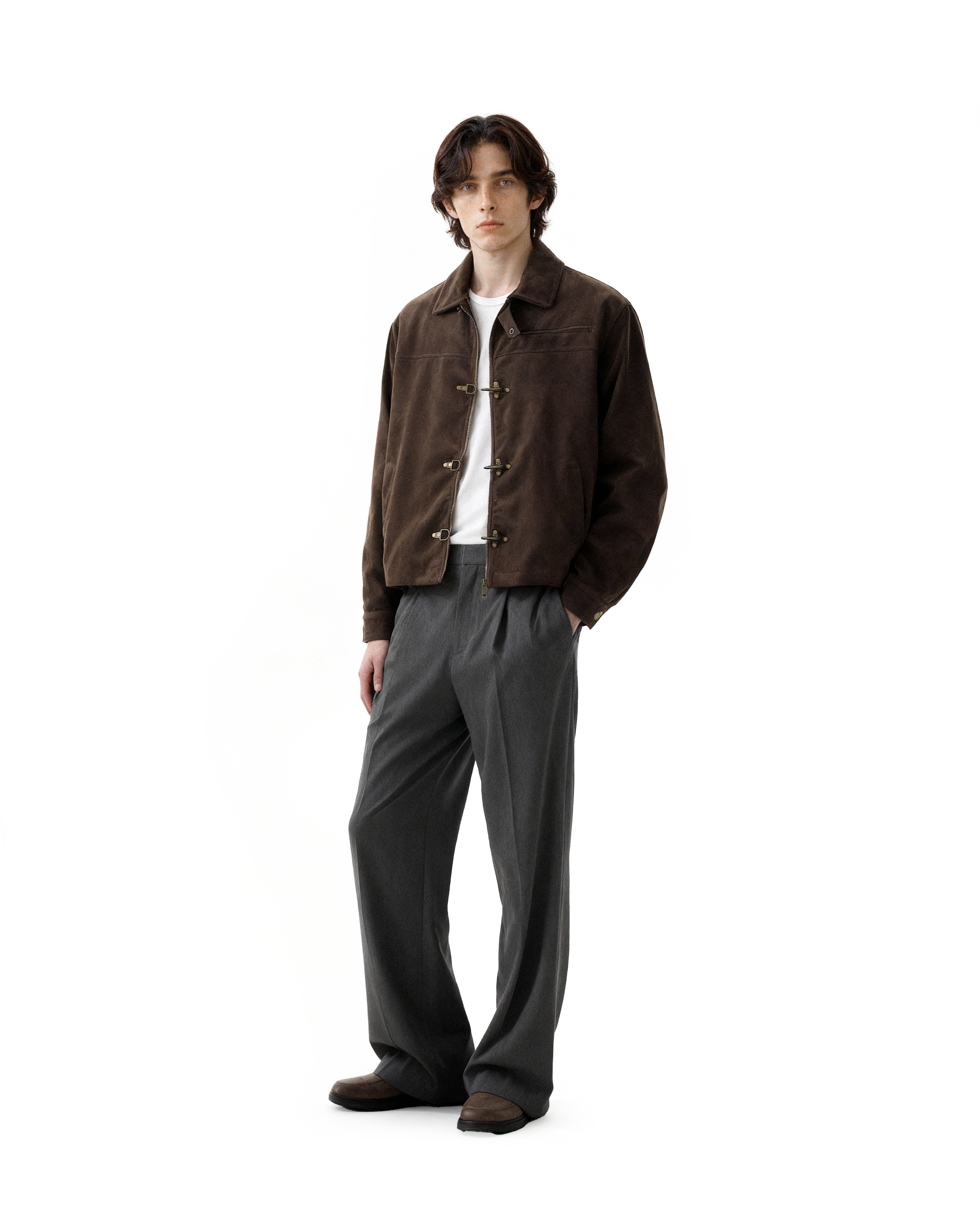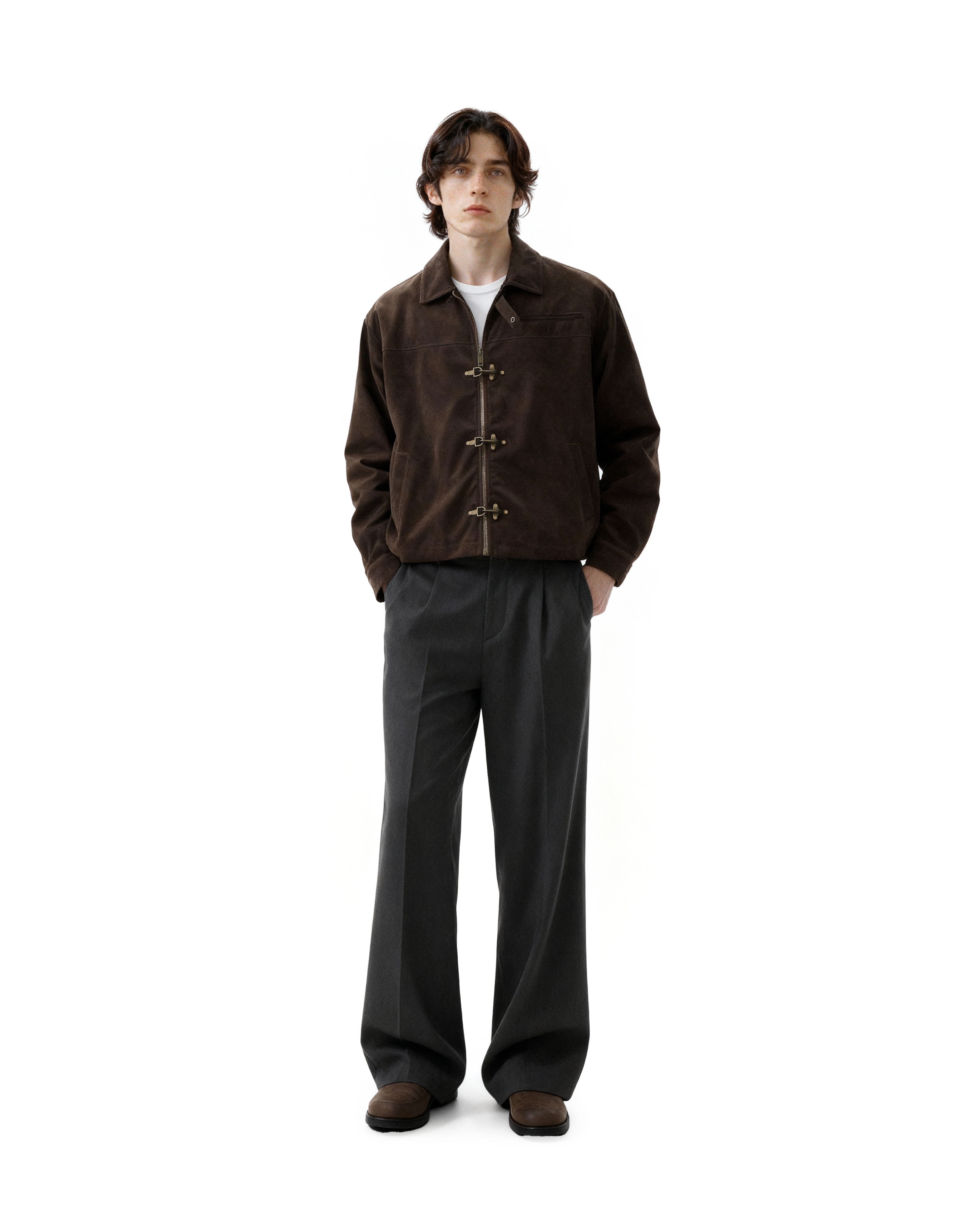 Fireman Buckle Mid-Crop Worker Suede Jacket