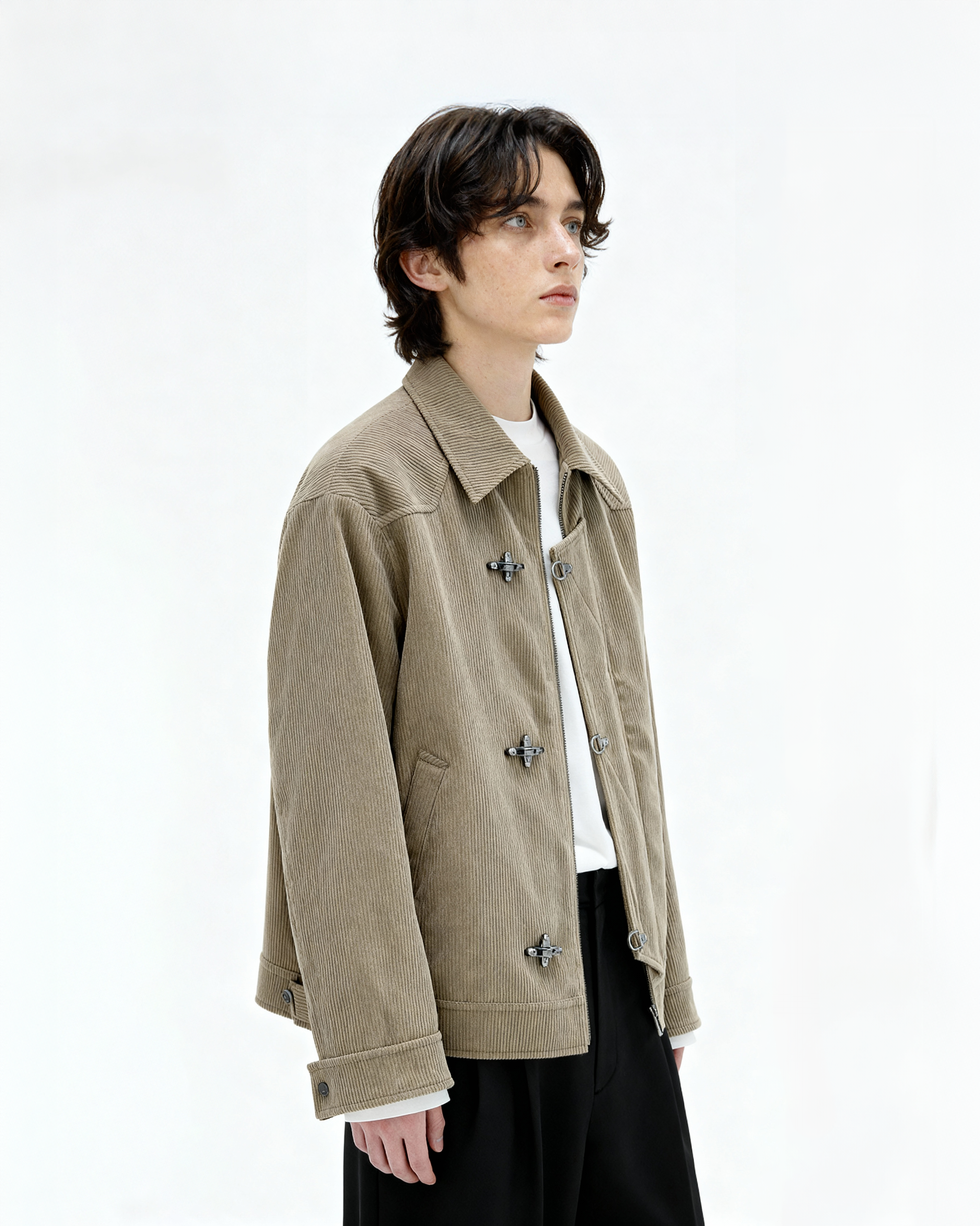 Fireman Clasp-Buckle Corduroy Collared Jacket