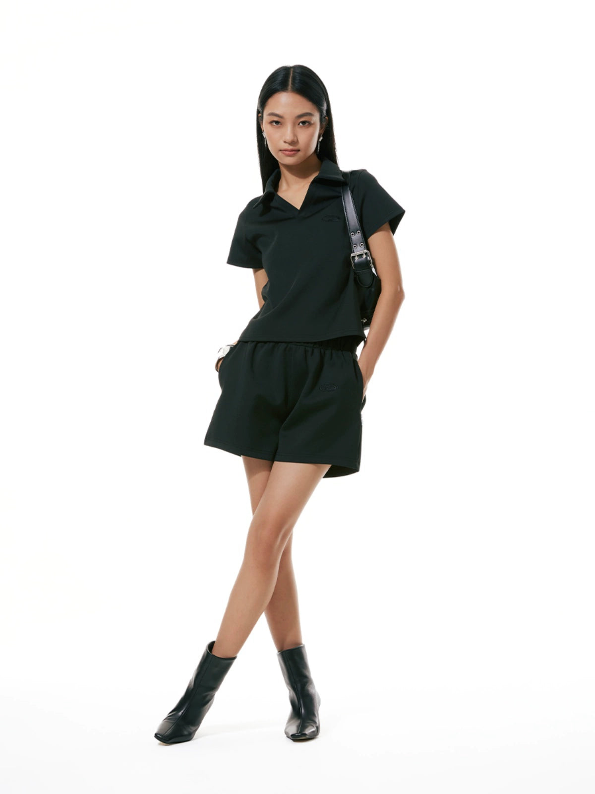 Constructed with a premium blend of 94% polyester and 6% spandex, these shorts are tailored to be both durable and flexible, accommodating your on-the-go lifestyle. The flare cut and subtle embroidery detail embody a nonchalant elegance, while the elastic waistband ensures a perfect and comfortable fit. Ideal for those seeking a blend of edgy sophistication and relaxed wearability.