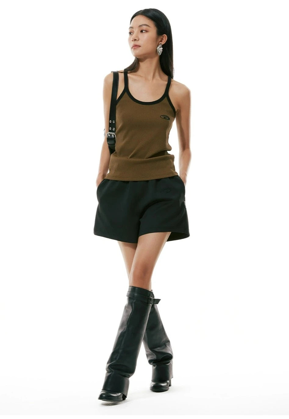 Flare Embroidered Elastic Waistband Sweatpant Shorts