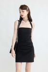 Flat Halter Strap Ruched Mini Dress
