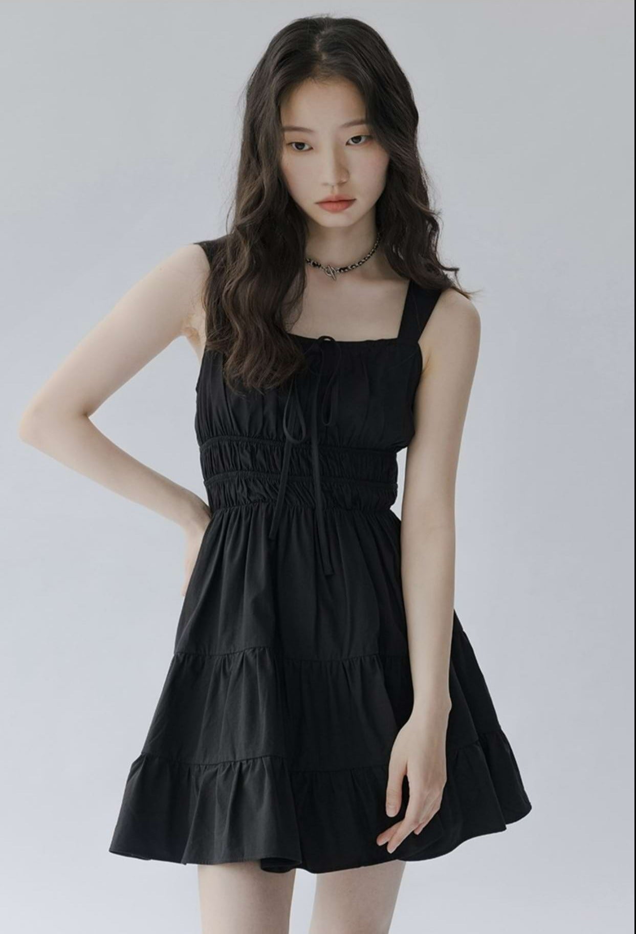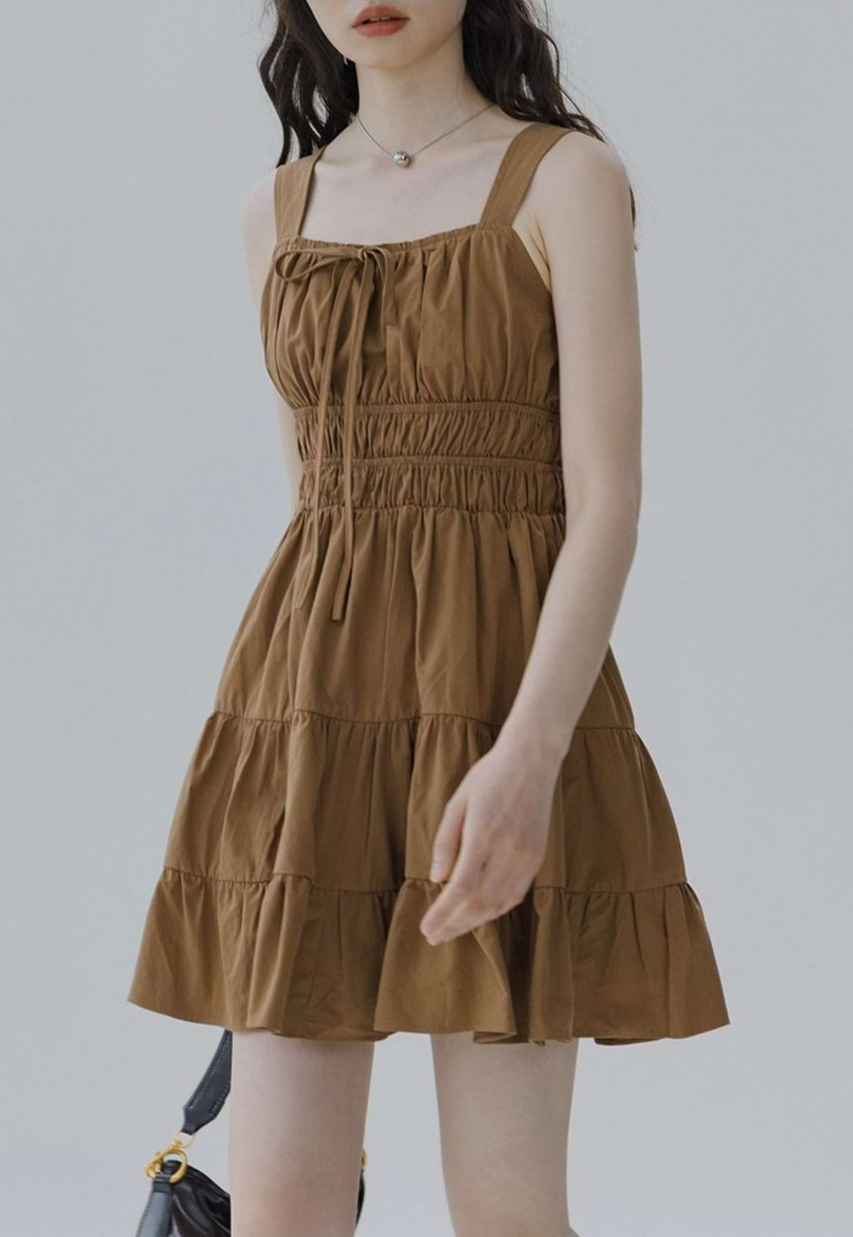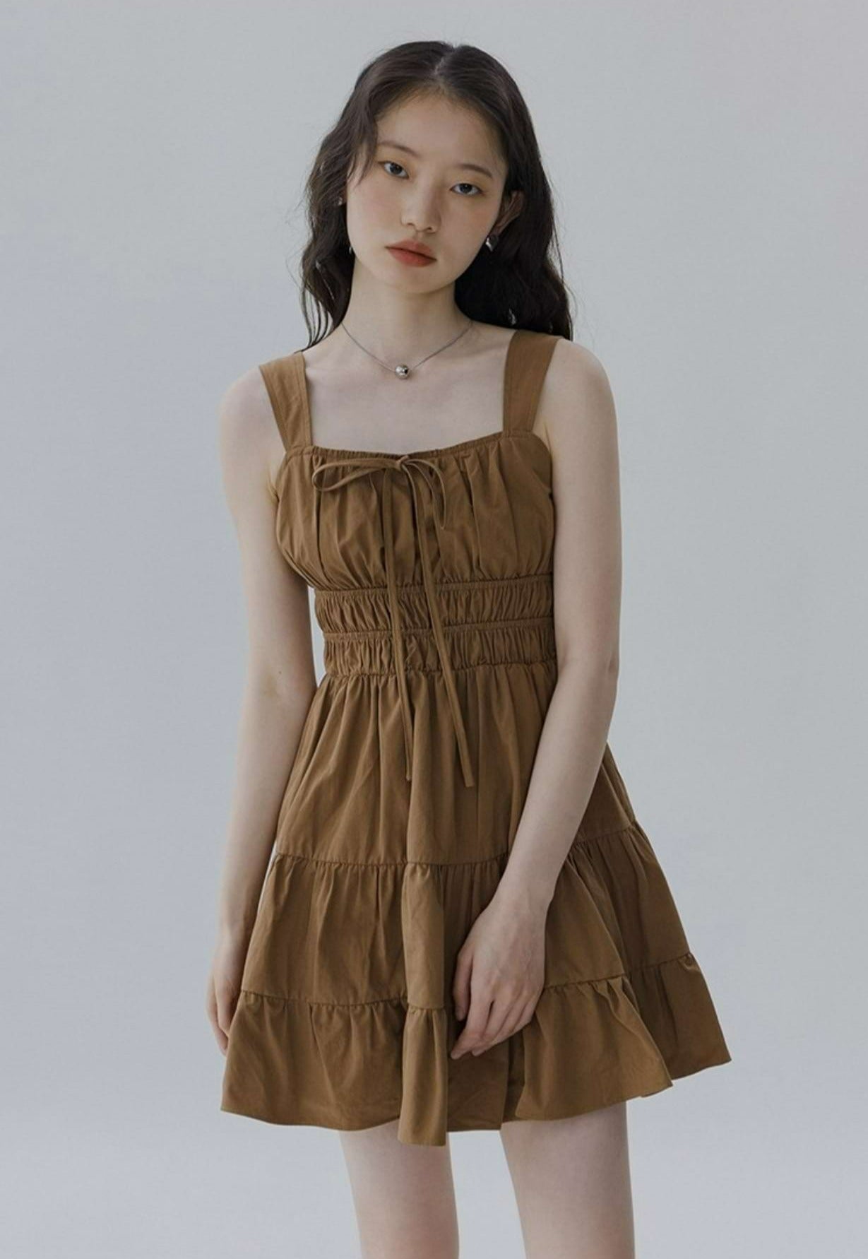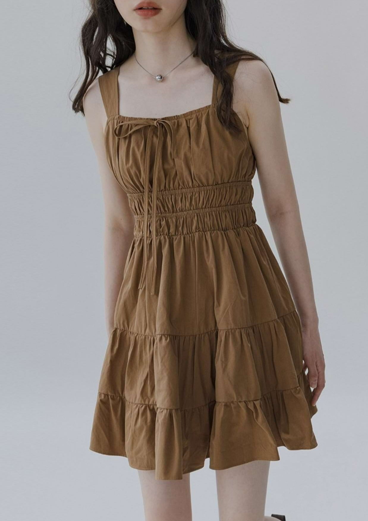 Flat Strap Shirred Mini Dress