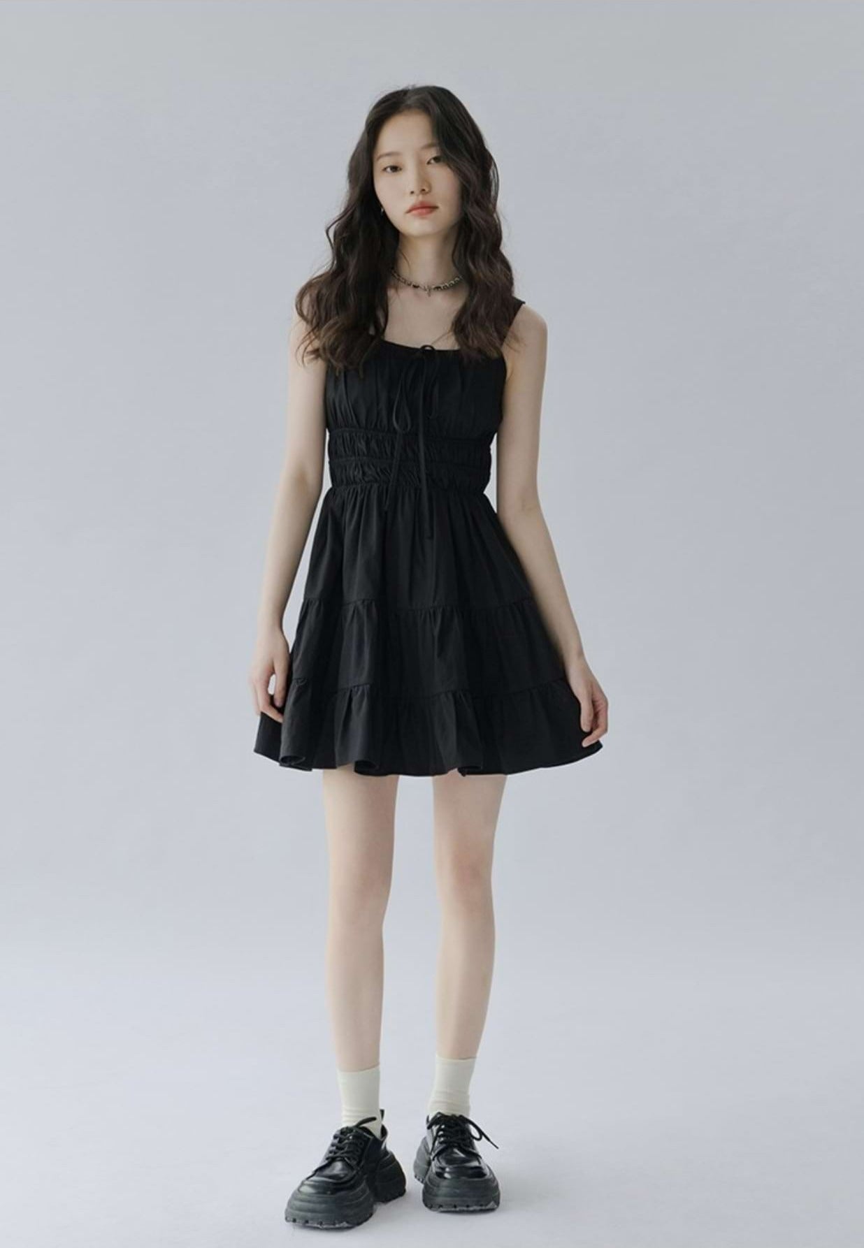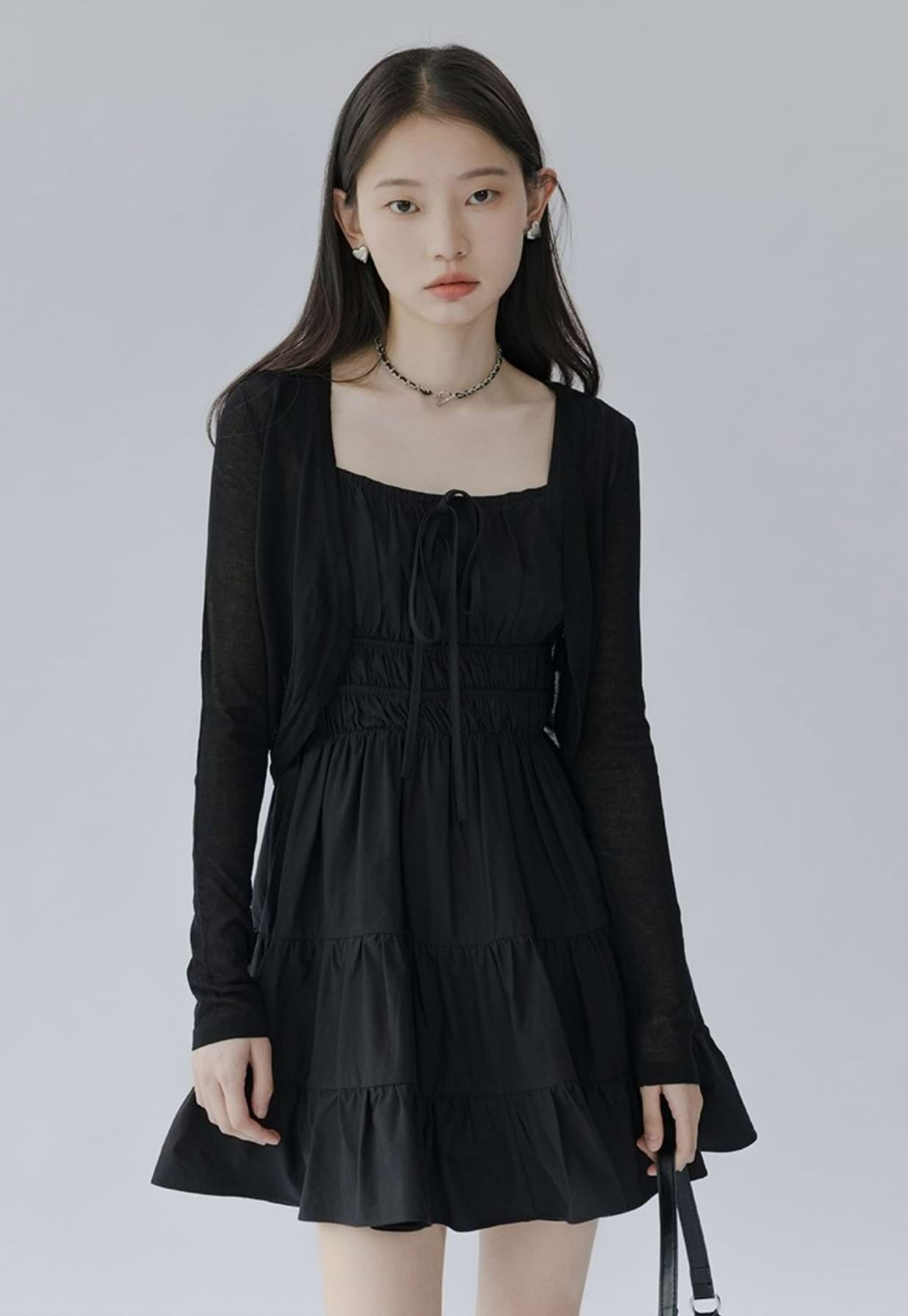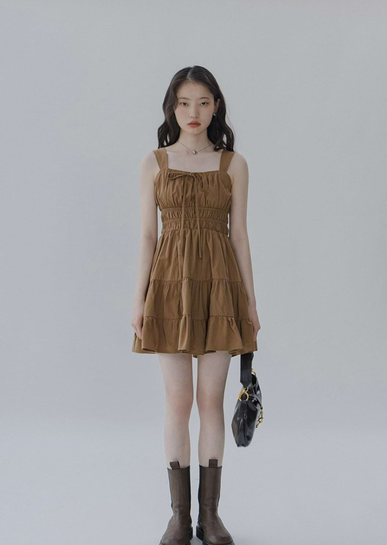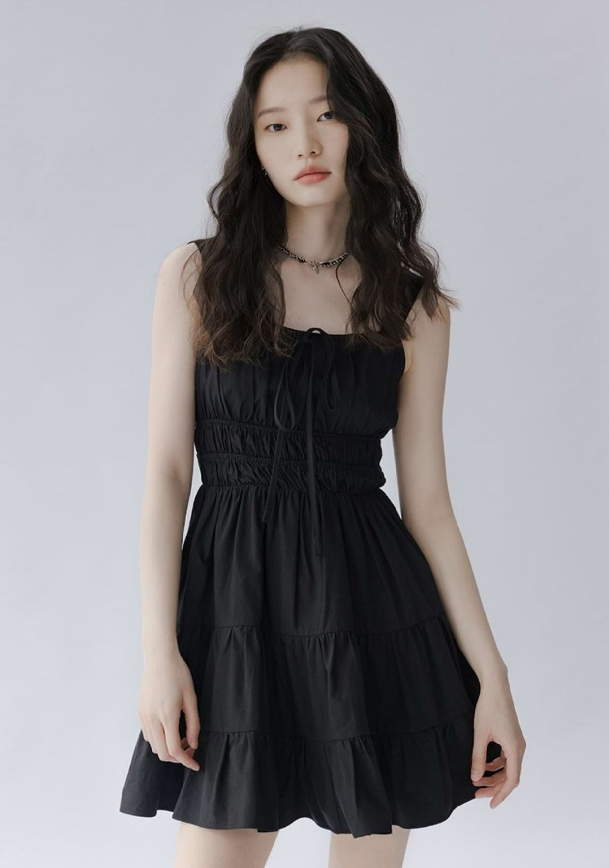 Flat Strap Shirred Mini Dress