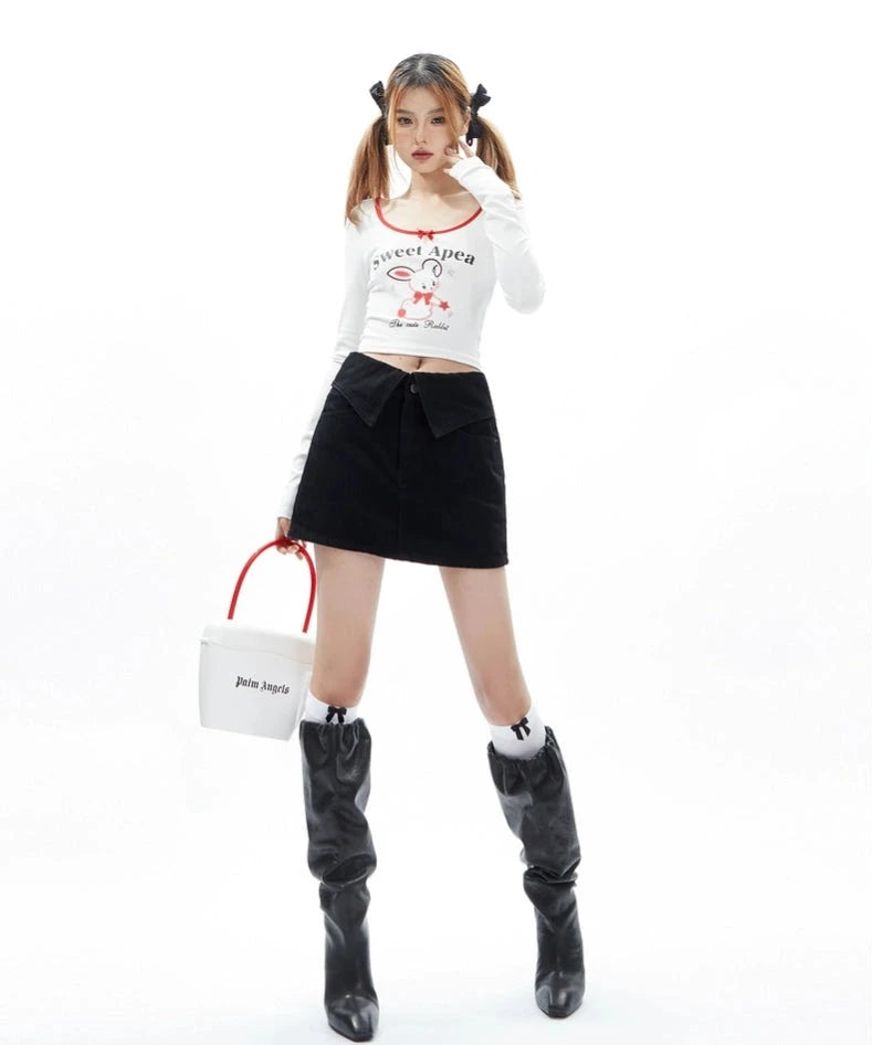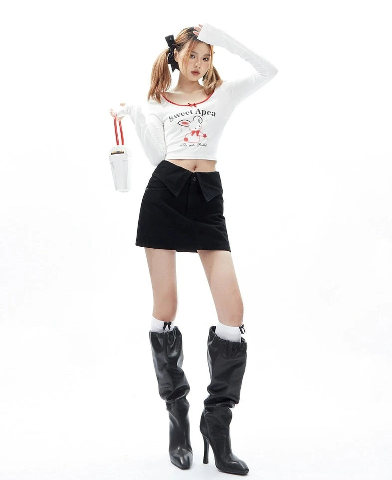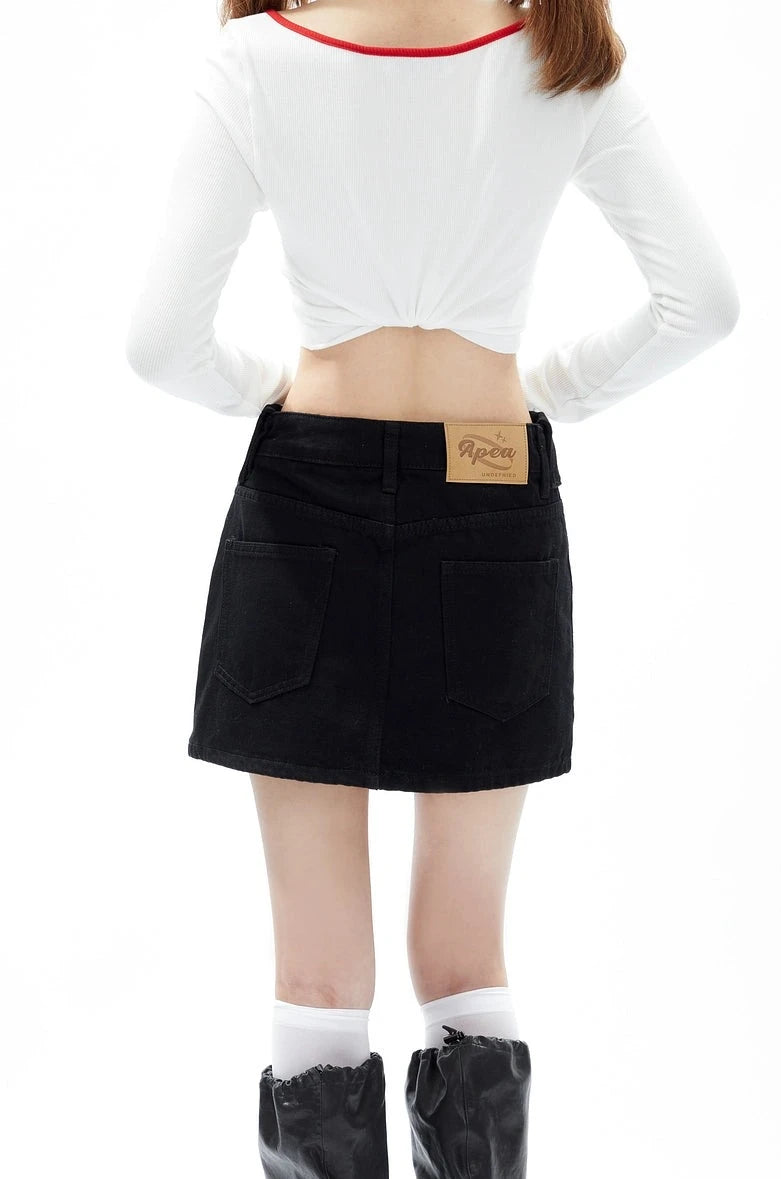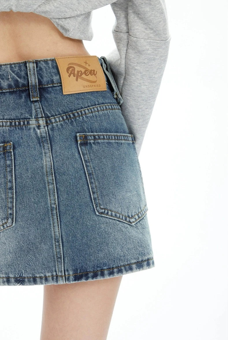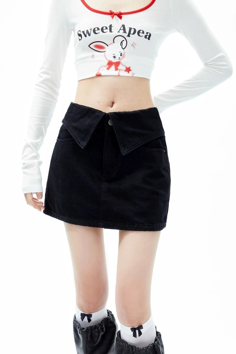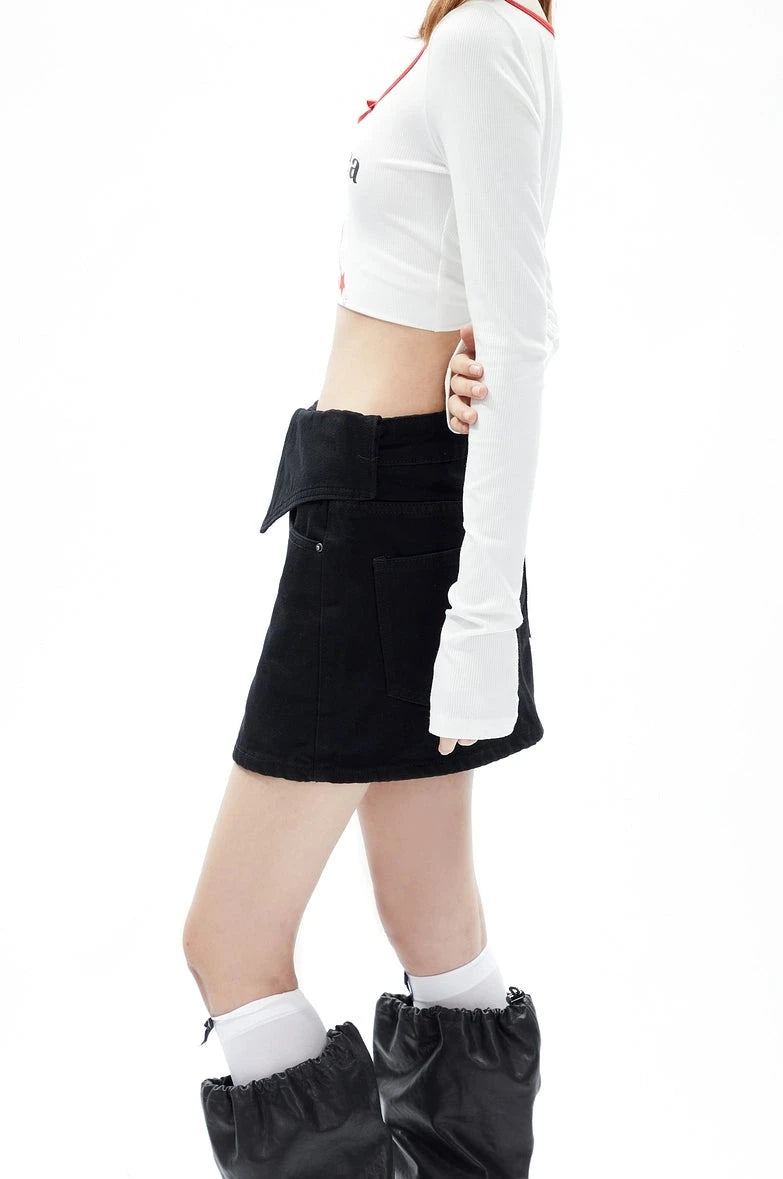 This skirt brings a unique twist to a classic silhouette with its distinctive fold-over waist detail. Crafted from a quality mix of cotton, regenerated cellulose fiber, and a touch of polyester, this A-line skirt stands out with its textured denim and minimalist appeal. The fold-over waist is not just a design element; it also adds a layer of flair and subtly accentuates the body shape.