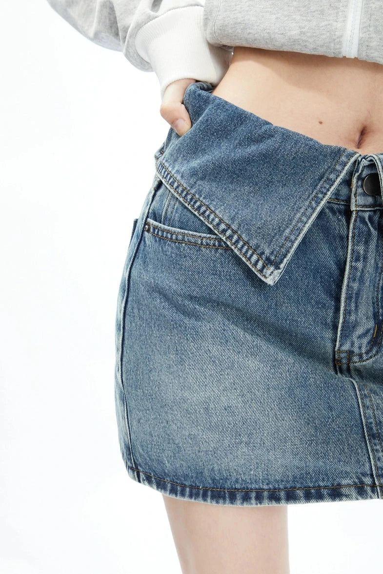 Read full Return PolicyExperience a blend of casual vintage vibes with the Fold Over Waist Faded Denim Mini Skirt, where comfort meets style effortlessly.