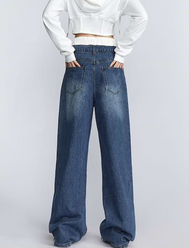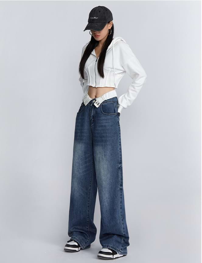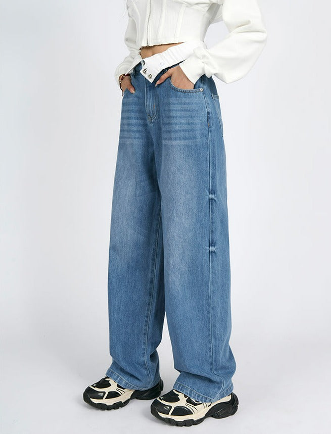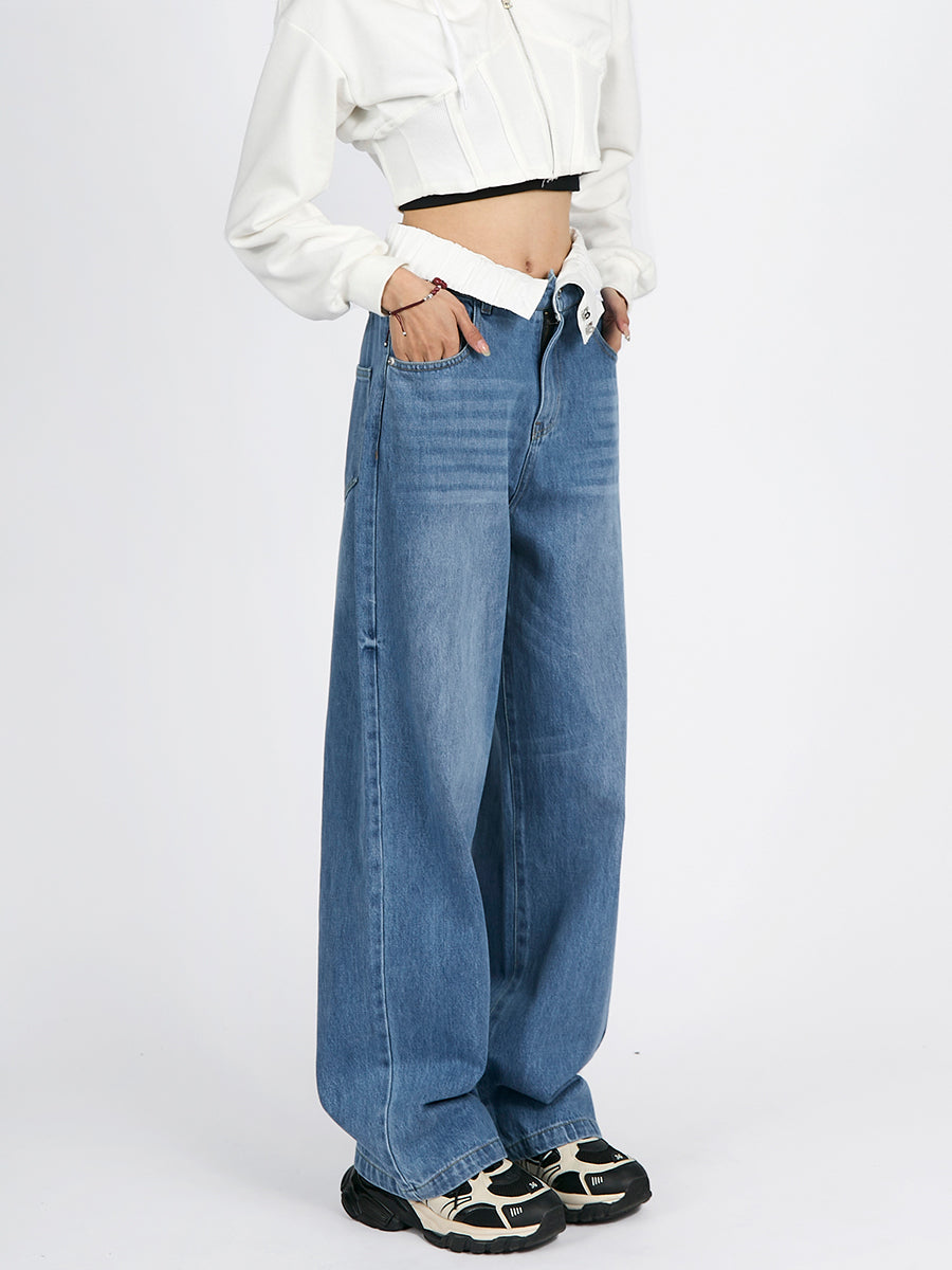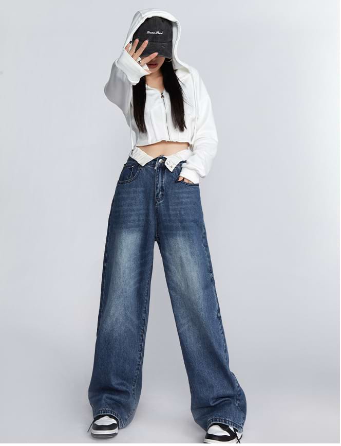Read full Return PolicyThis pair of Fold-Over Waist Jeans is designed with a comfortable fit and casual look. Its waistline is designed to be folded for a versatile style that can be paired with any top. Enjoy the latest trend in casual jeans with a pair of fold-over jeans.