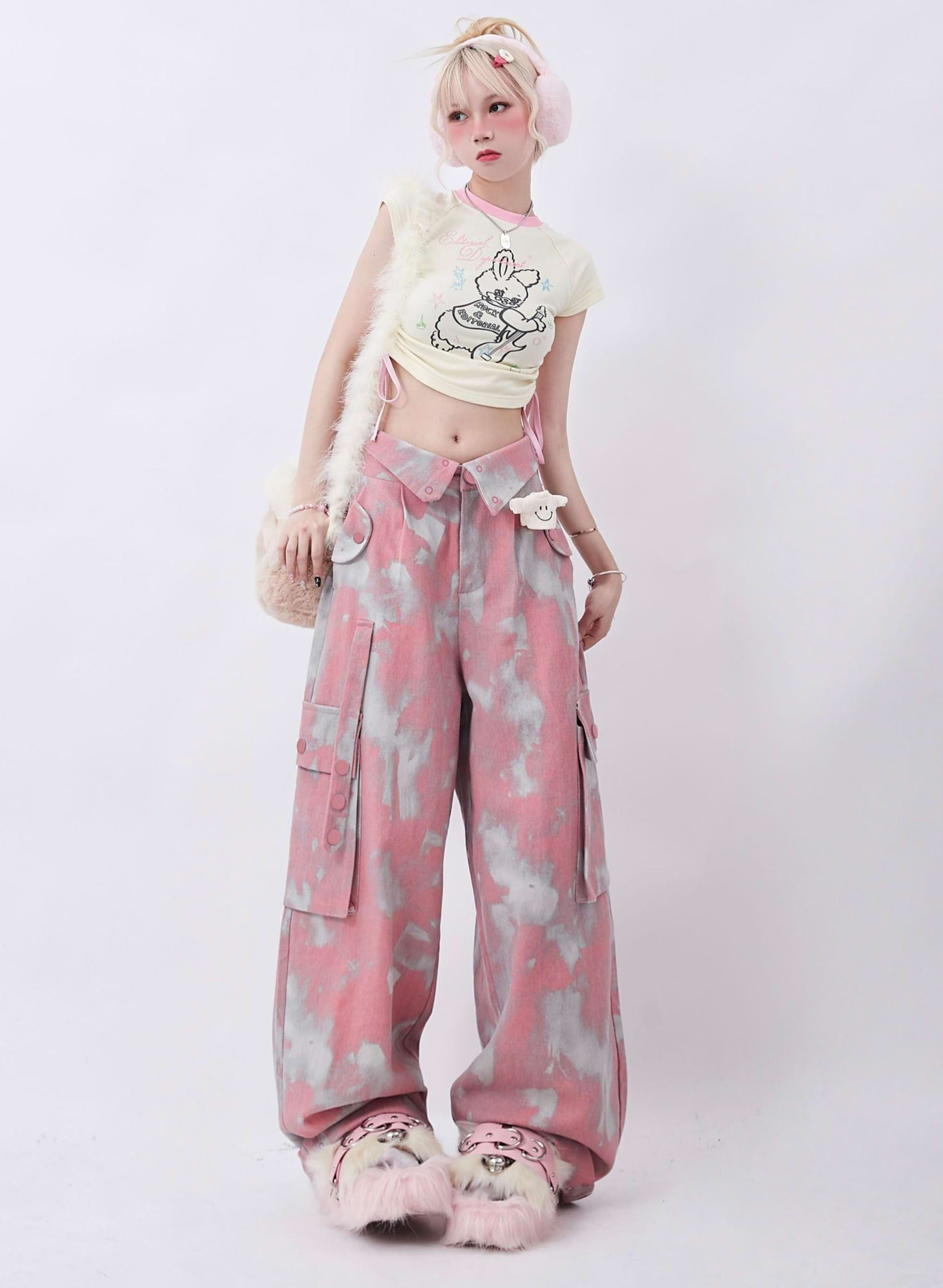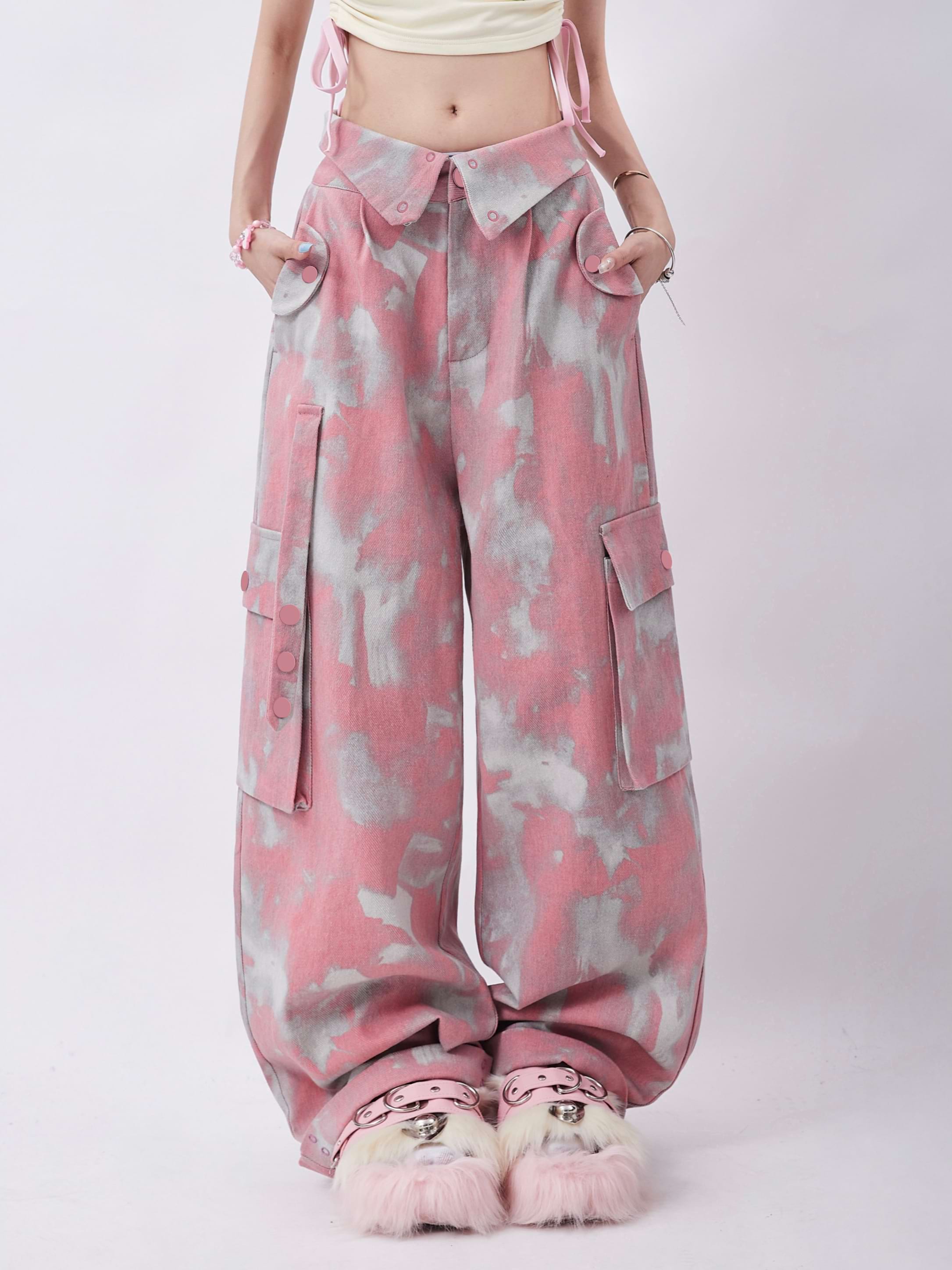 Fold-Over Waist Tie-Dye Pants