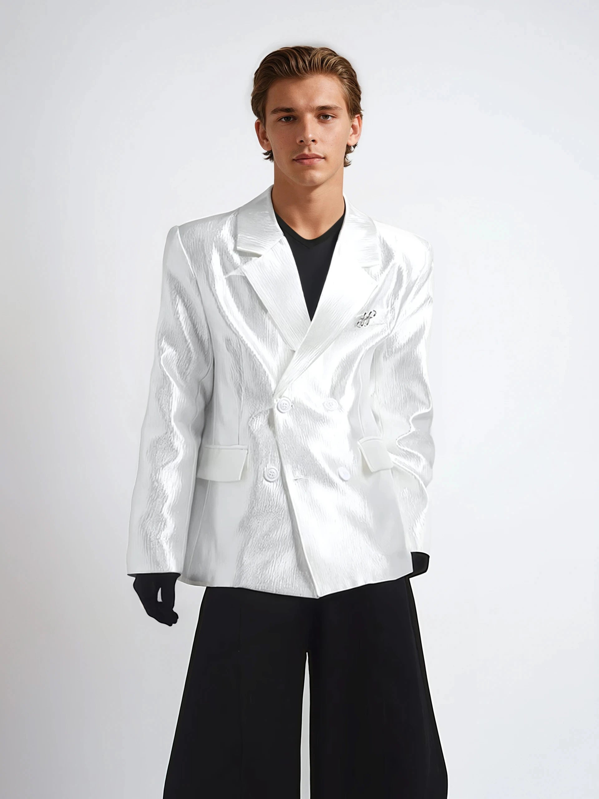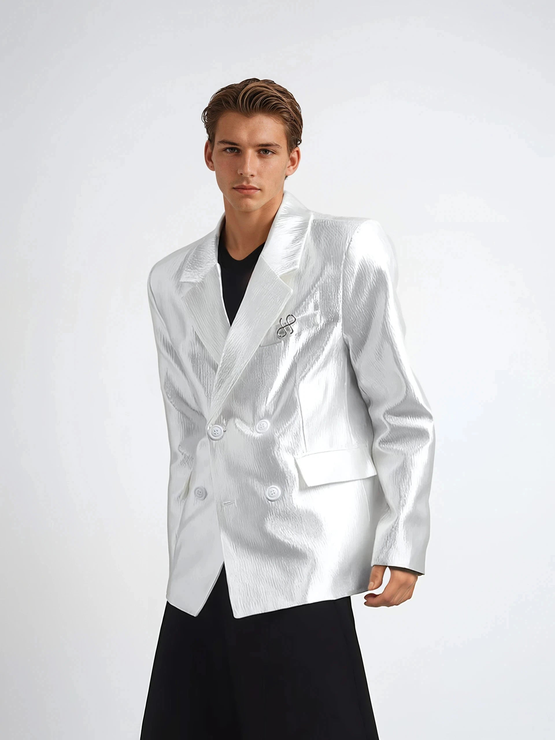 Textured Double-Breasted Blazer with Peak Lapel