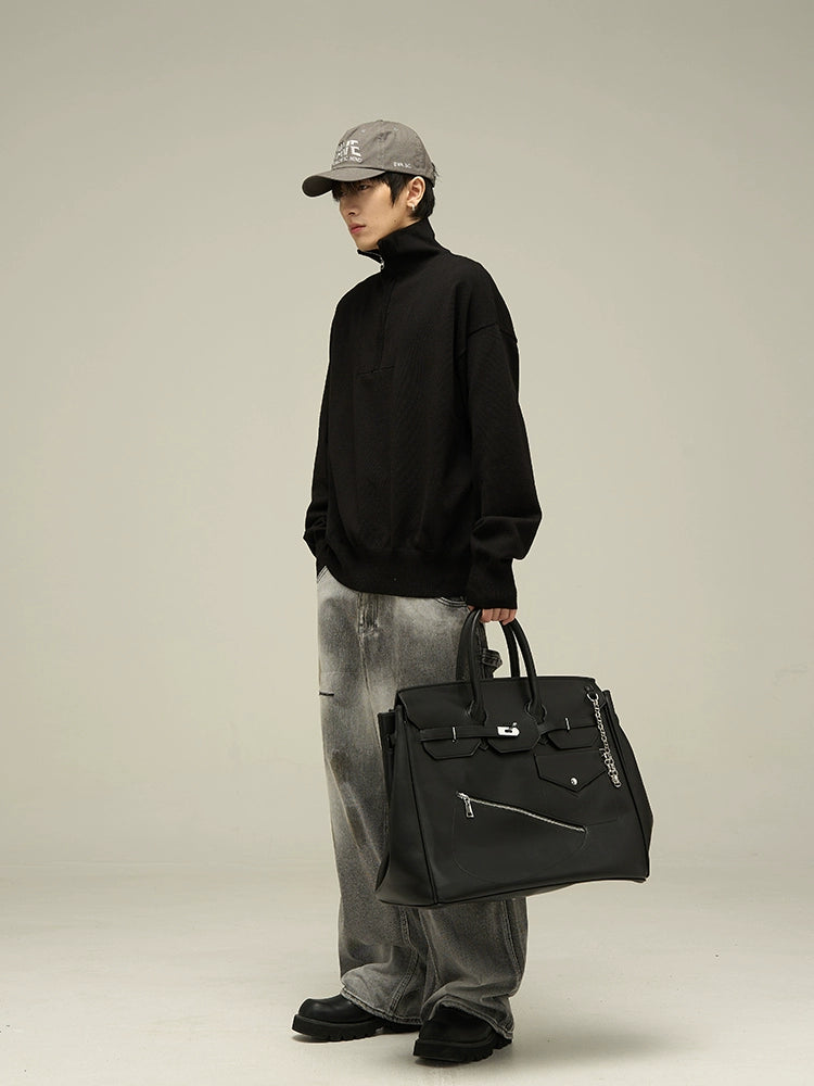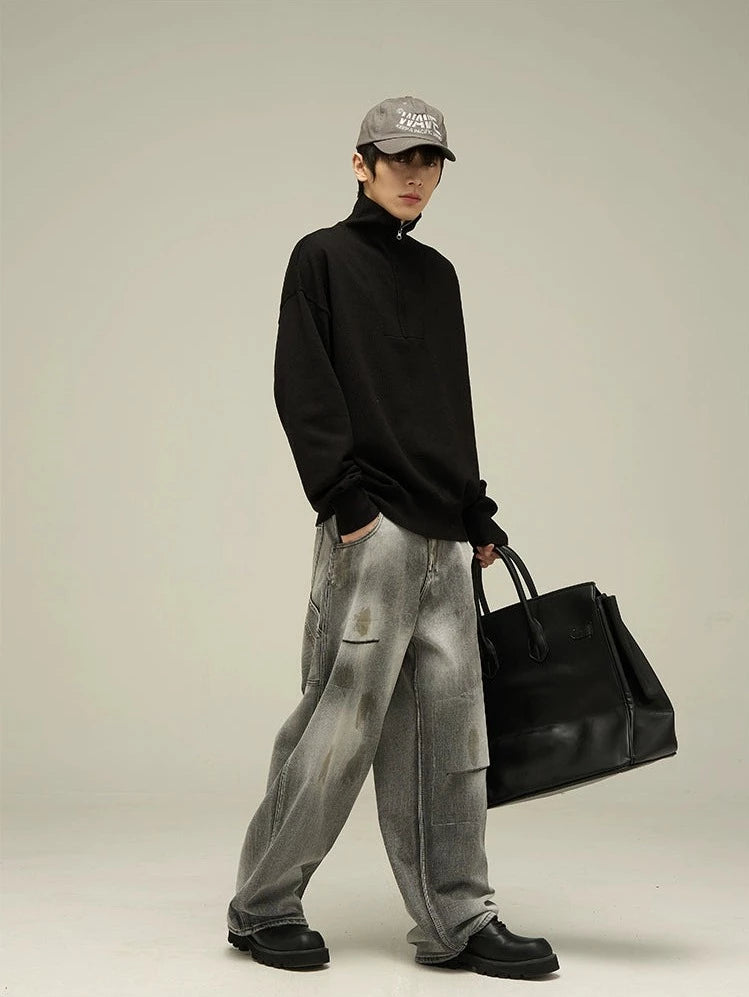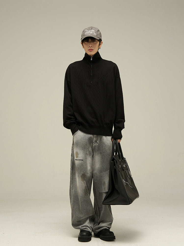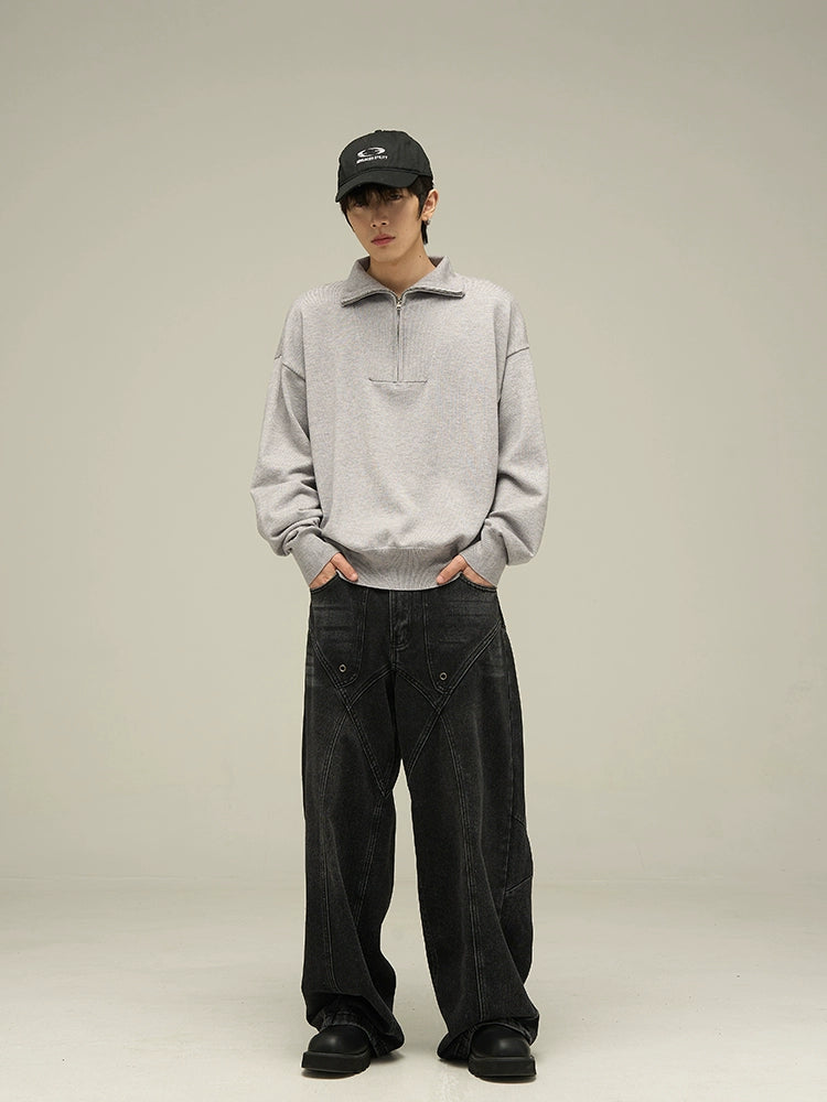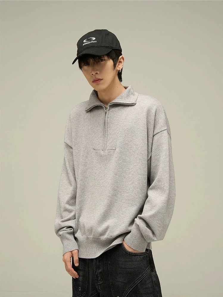 Crafted with quality materials, this sweatshirt features a sleek, solid color design and a convenient half-zip closure, offering an easy-to-wear piece with a moody yet professional aesthetic. The midweight thickness ensures a comfortable fit for those crisp days, while the long sleeves and subtle zipper decoration add to its timeless appeal.