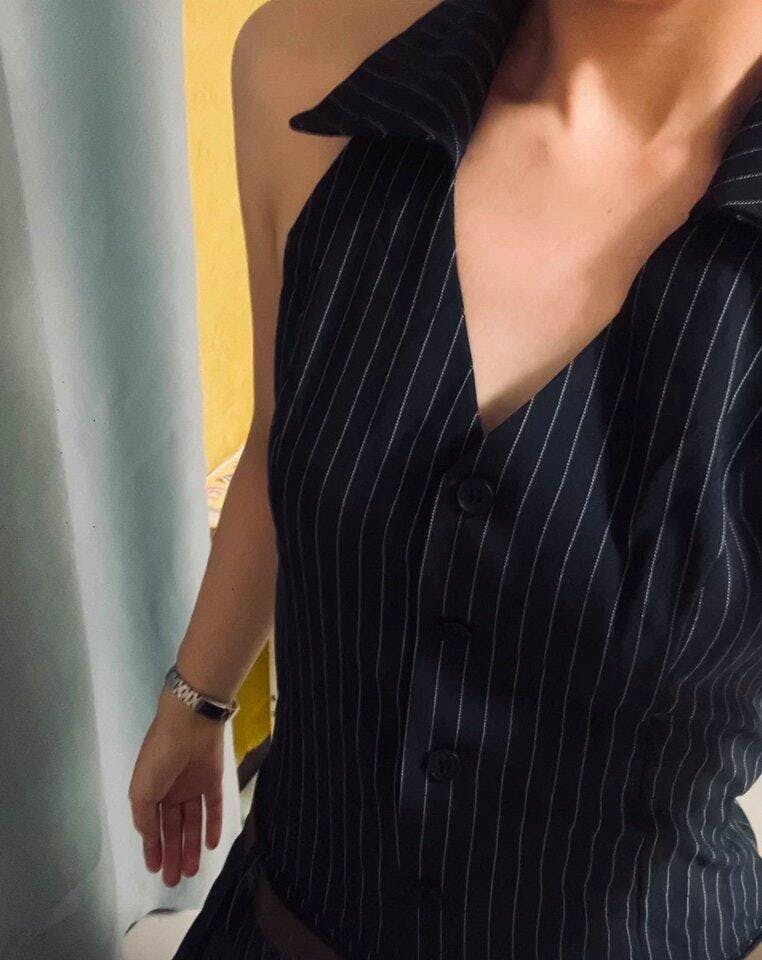 Subtle pinstripes on suiting-inspired fabric add texture while keeping it clean and structured. Crafted with precision stitching and a form-flattering waist, this piece blends edge and ease.