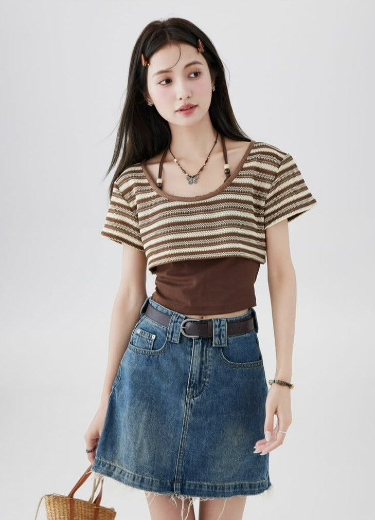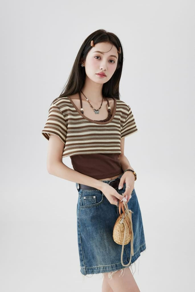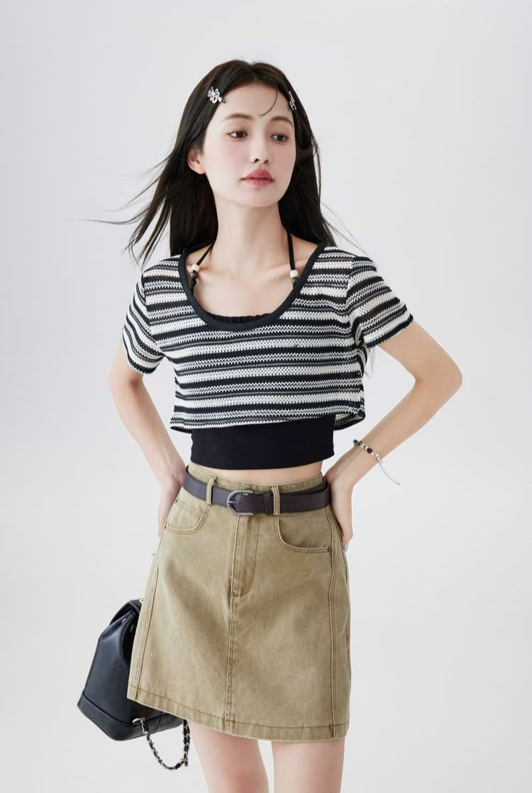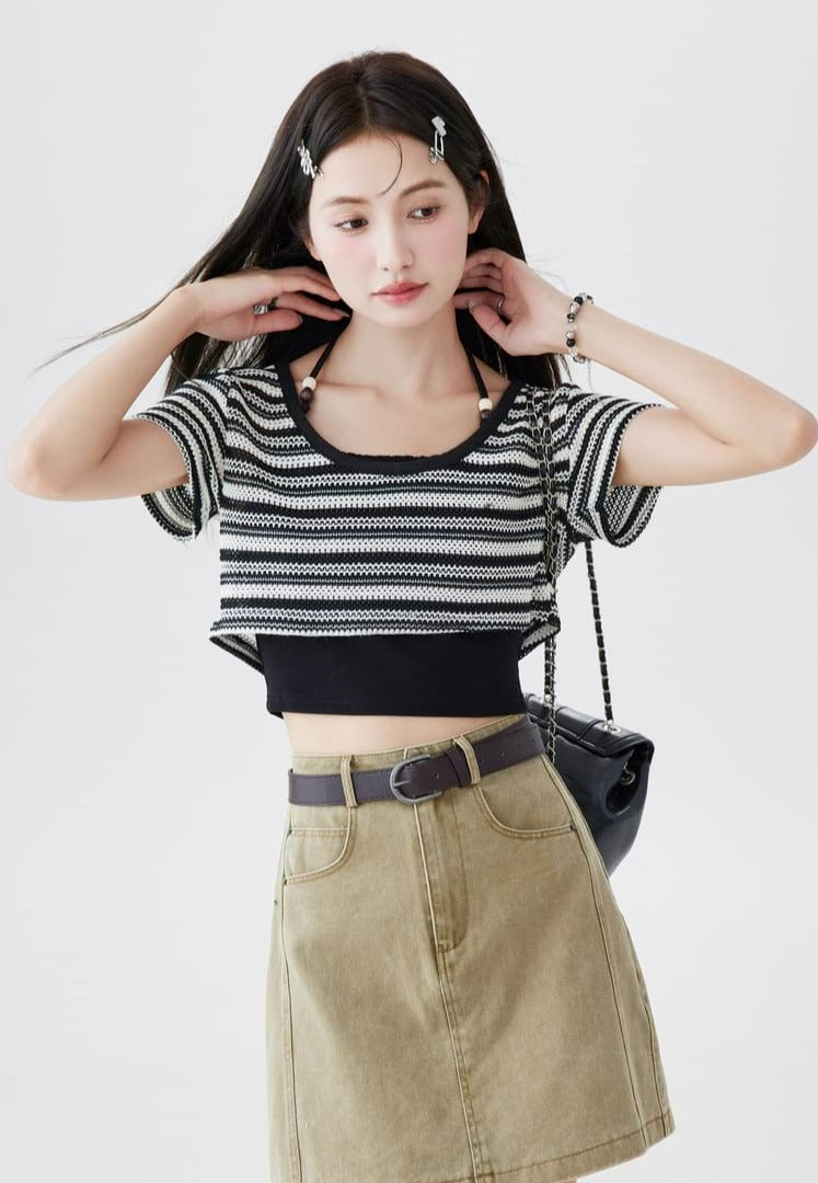 Read full Return PolicyStay stylish and comfortable with this two-piece set! The halter strap camisole and stripe cropped knit top look amazing when paired together, but look equally amazing when worn separately. Choose to dress it up with a skirt or keep it casual with jeans – the possibilities are endless. You’ll fall in love with the easy-to-style, effortless look of this two-piece set!