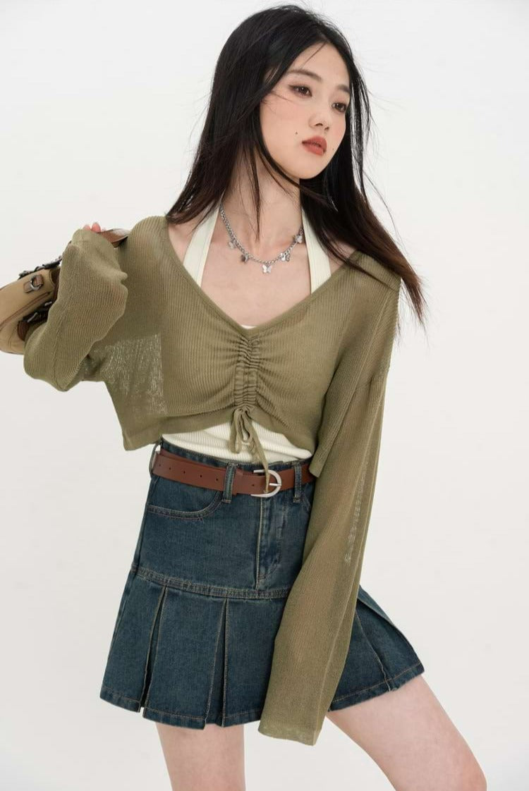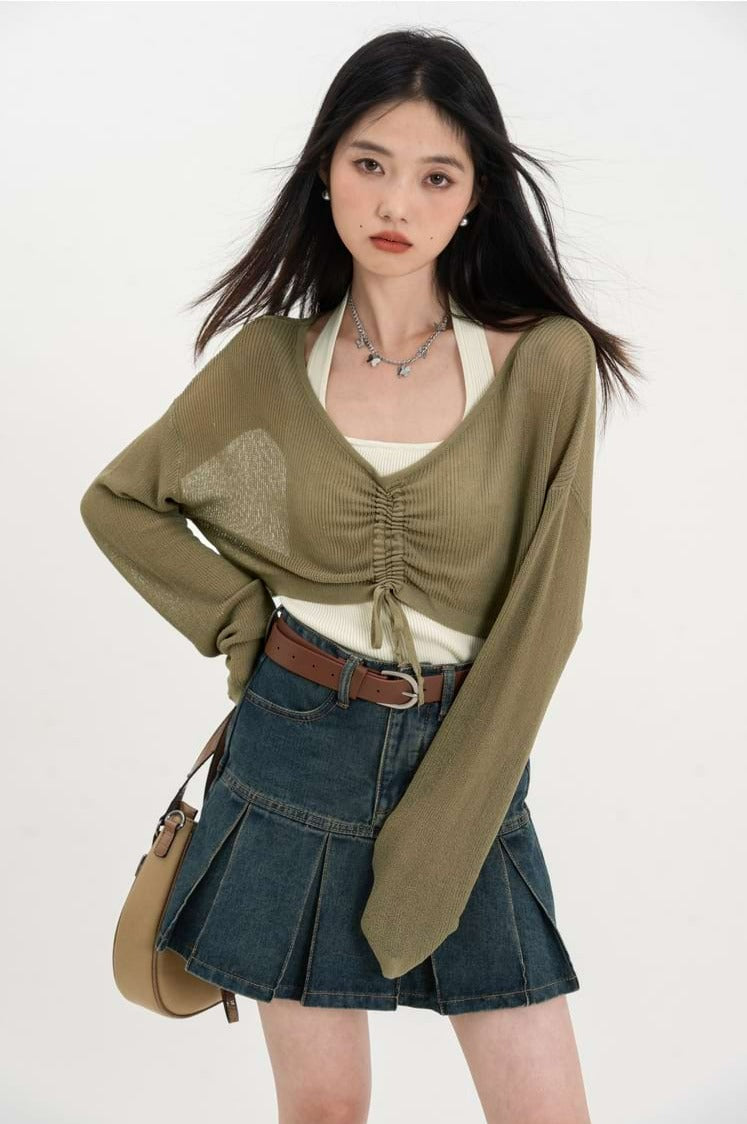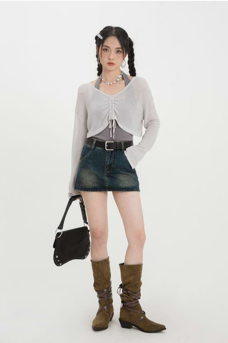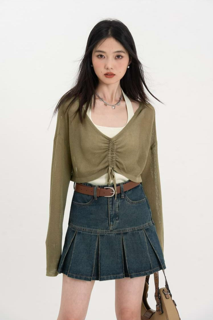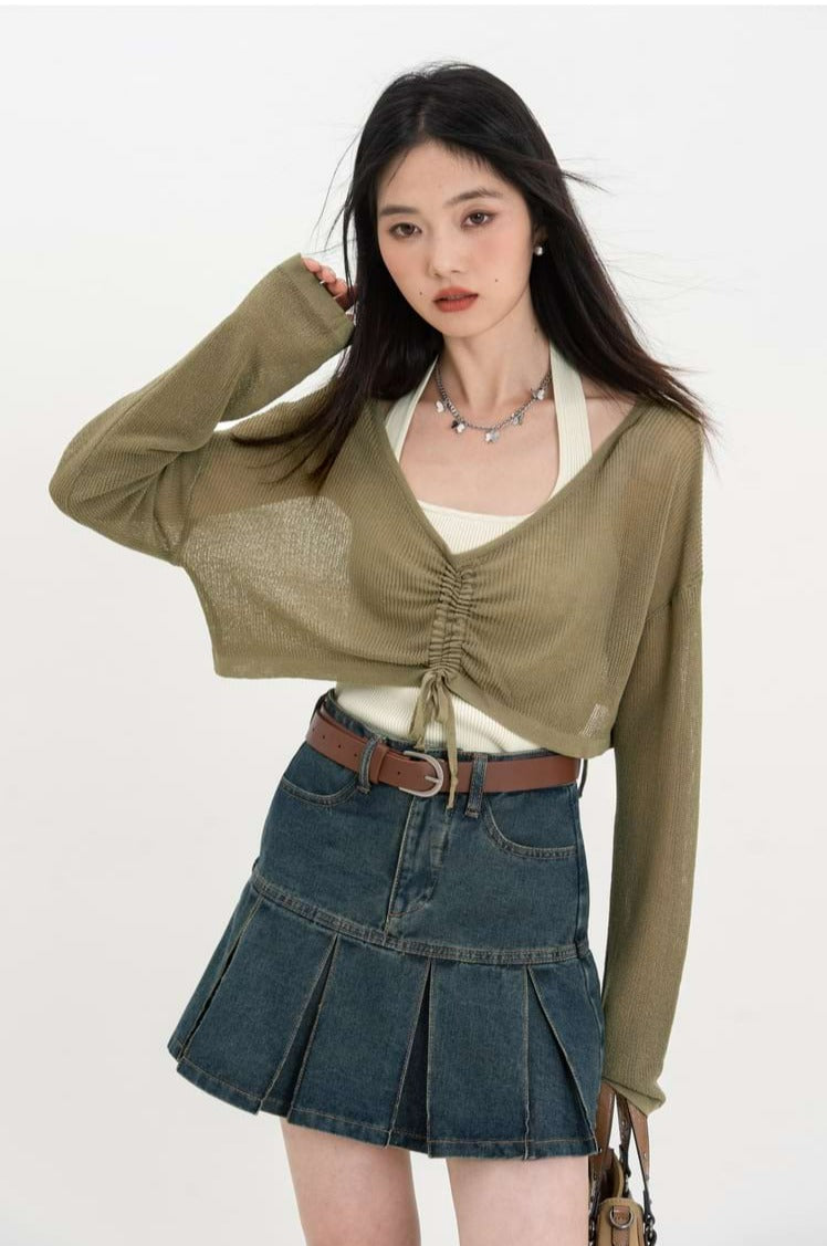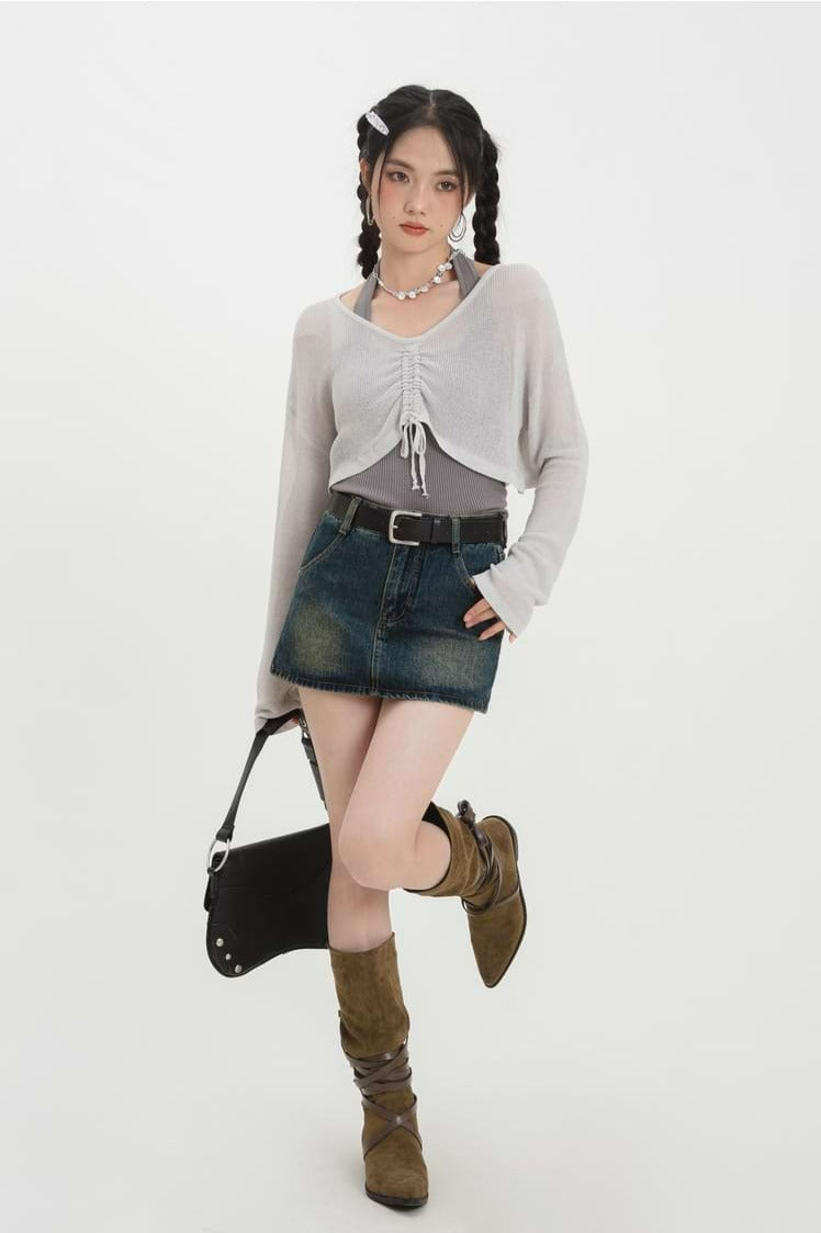 Read full Return PolicyRefresh your wardrobe with this fashionable Halter Top and Ruched Mesh Cropped Shrug from nightcity clothing. This two-piece set is designed with lightweight fabric and can be worn together or separately to mix-and-match with other items. The Halter Top is perfect for showcasing your favorite statement necklace, while the Cropped Shrug adds a layer of warmth and comfort. Whether you want to take on the day in style, or just relax at home, this Halter Top and Ruched Mesh Cropped Shrug set is the perfect choice.