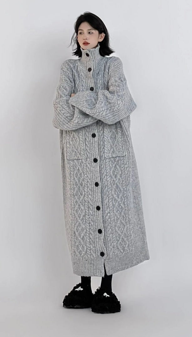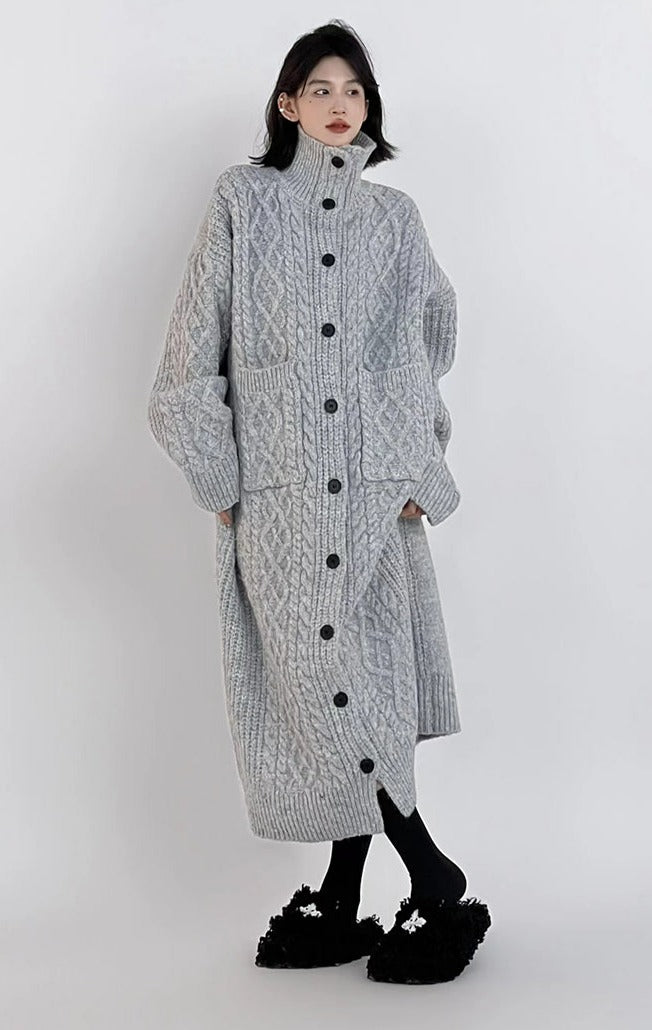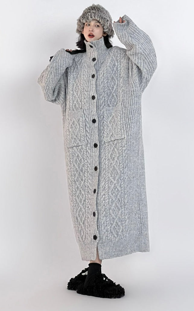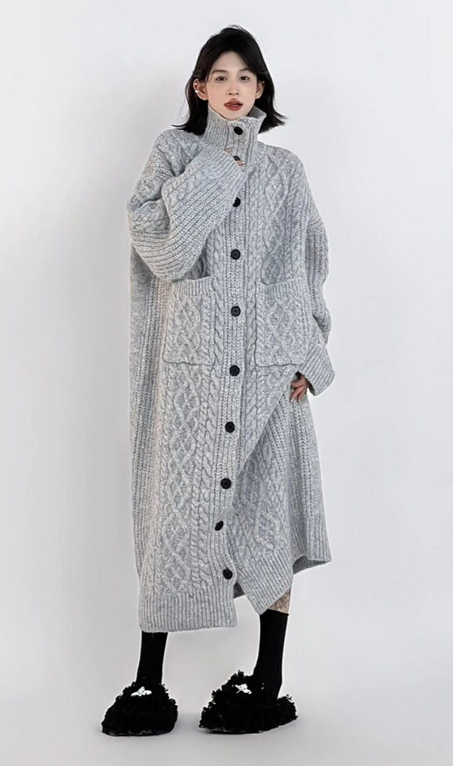 Read full Return PolicyWith the chilly weather on the horizon, it's time to start thinking about coats. This high neck knit coat is perfect for staying warm in style. The braid pattern is fun and unique, and you can wear it with the buttons on or off depending on your mood. Pair it with a pair of cute boots or snow shoes, and you're good to go.
