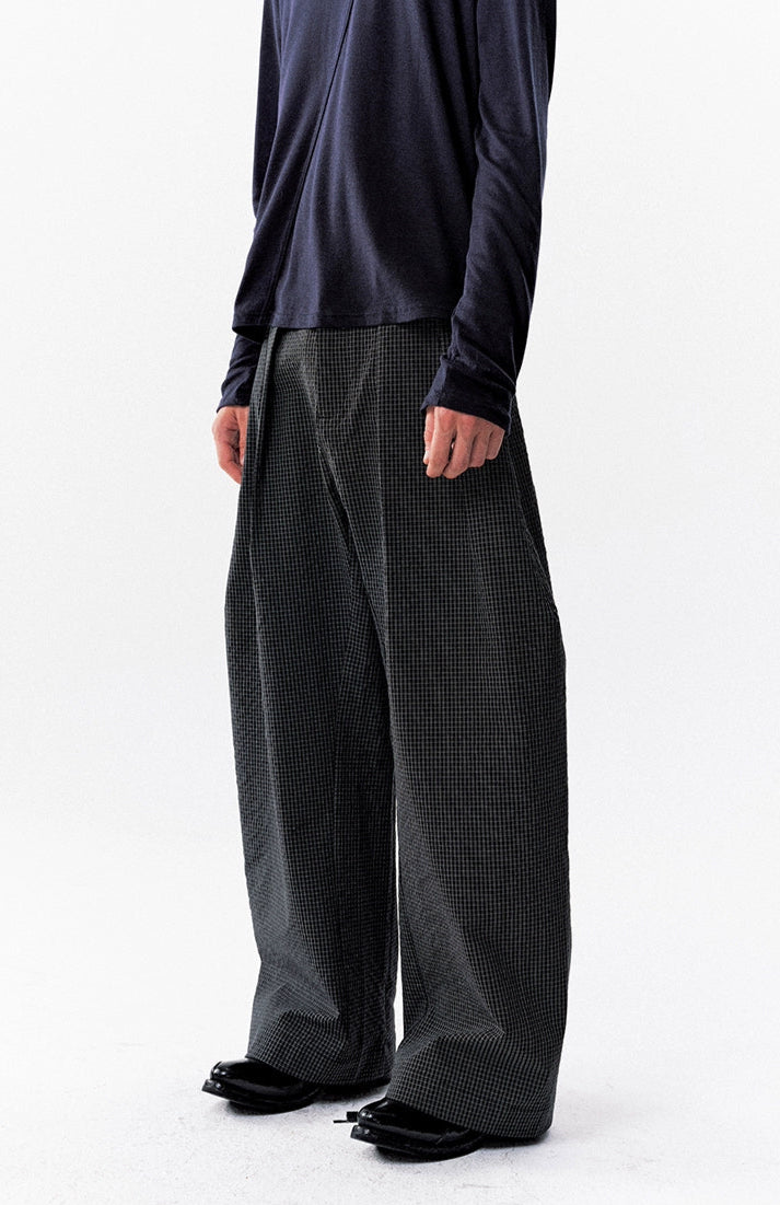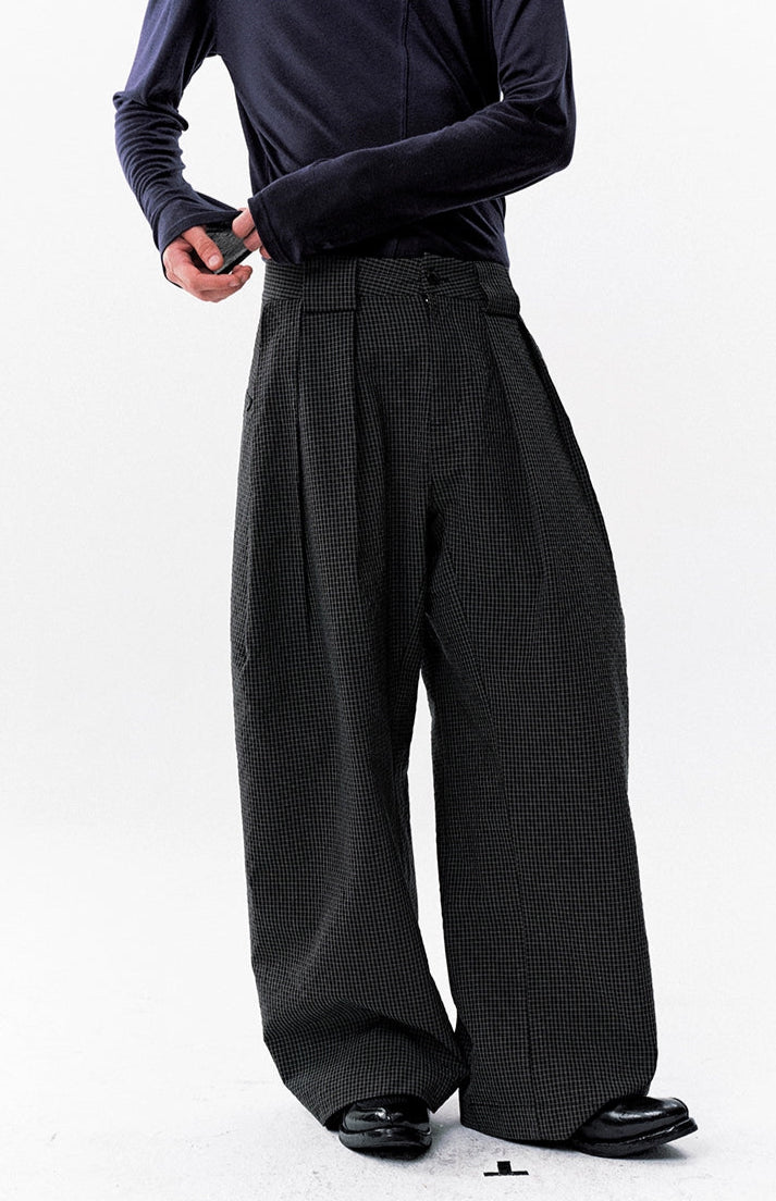 High-Waist Micro-Check Pattern Wide Leg Pants
