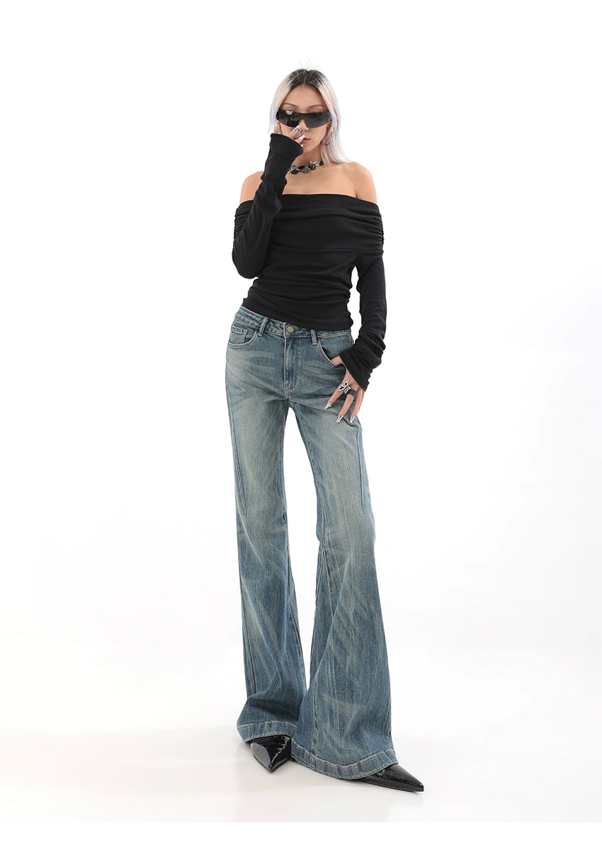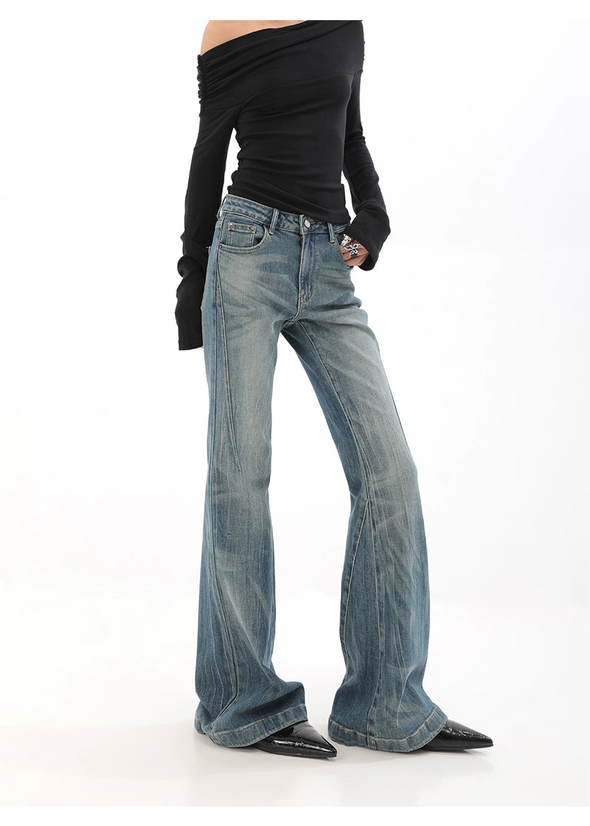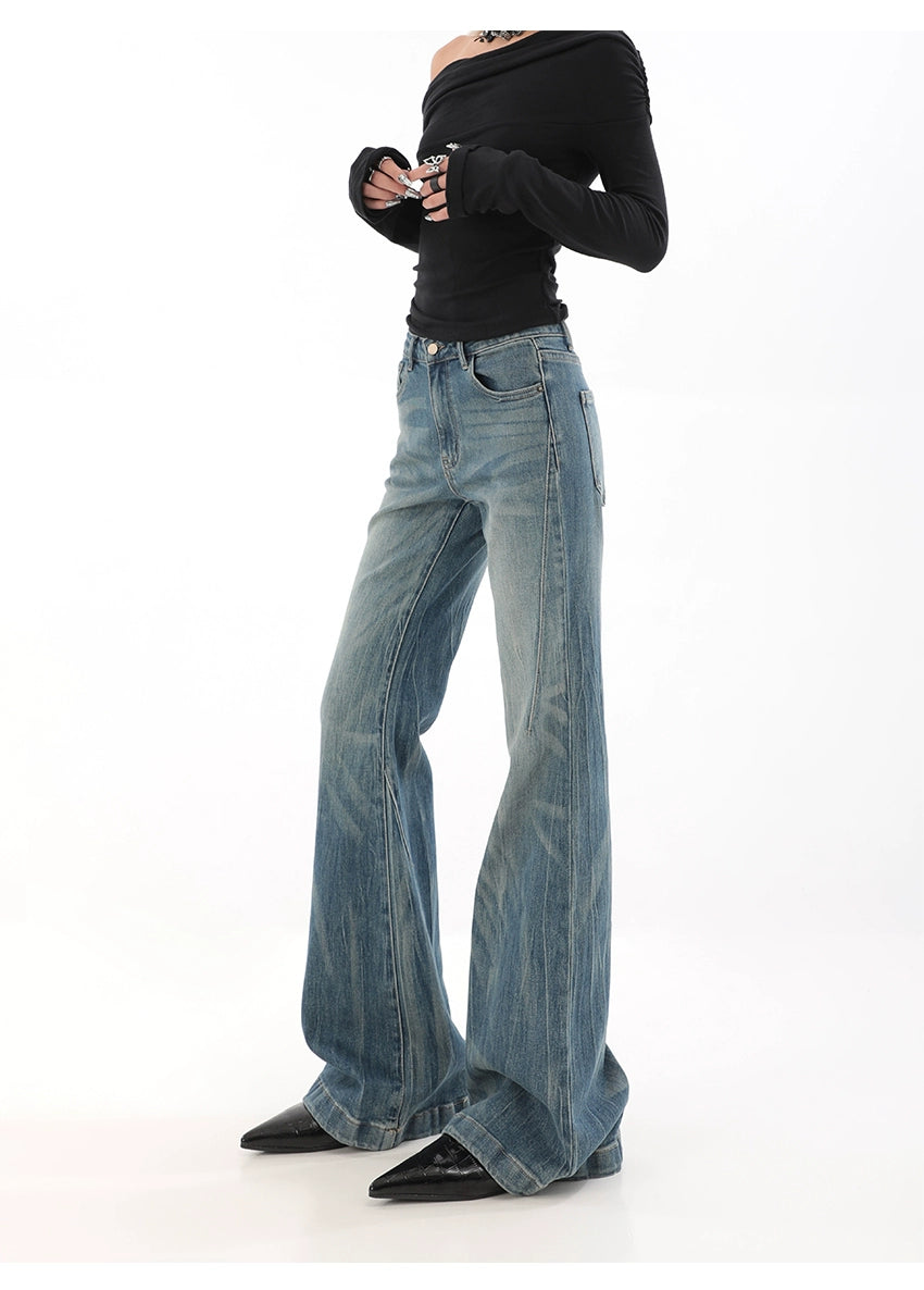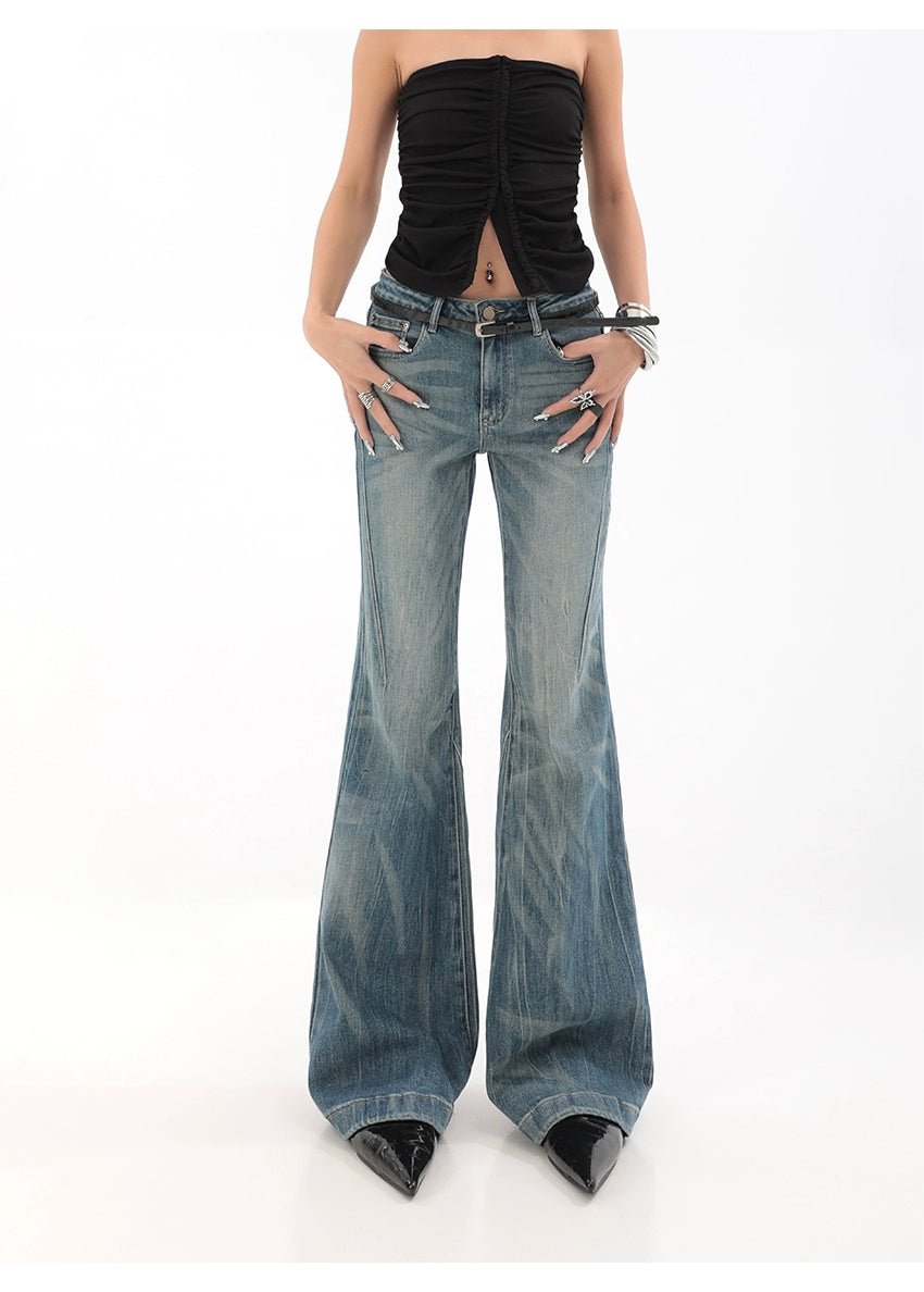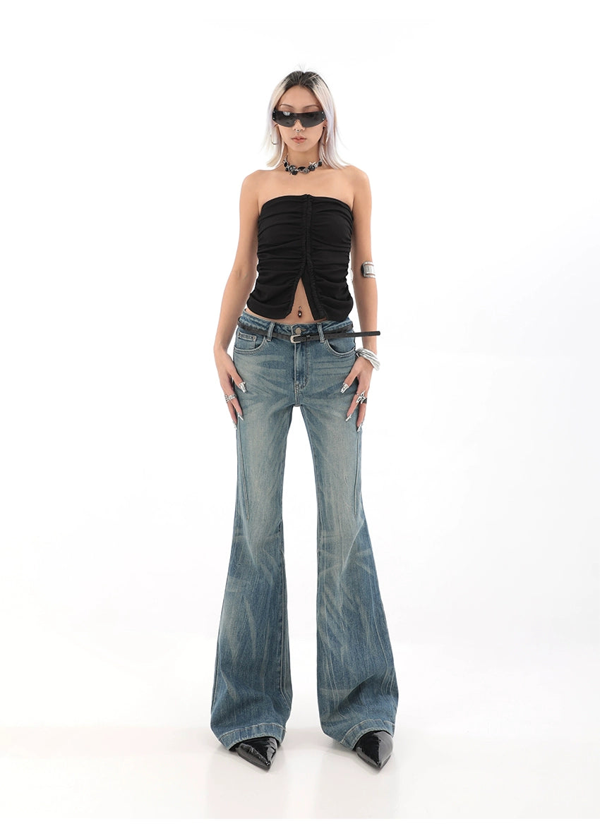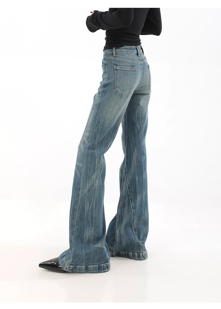 The versatile bell-bottom cut creates a silhouette that pairs seamlessly with both fitted tops and loose blouses, making them suitable for a variety of occasions, from casual outings to more sophisticated events. Embrace the nonchalant essence of retro-inspired style with a contemporary twist.