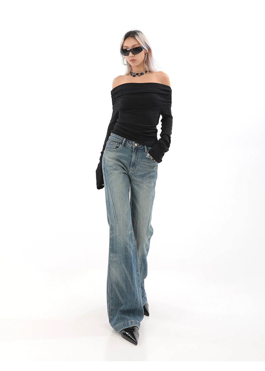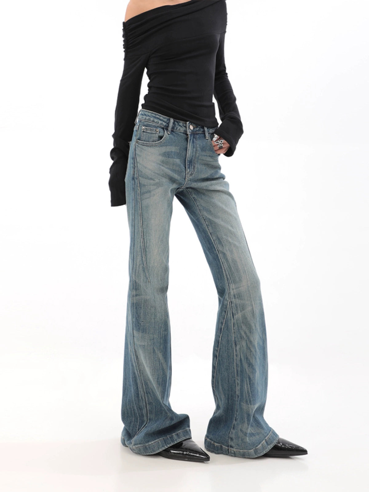 Made from a soft denim blend, these jeans offer the perfect combination of stretch and structure for a fit that flatters and moves with you. Highlighting an authentic vintage wash, each pair showcases unique fading and whiskering patterns that echo the soulful vibe of edgy fashion statements.