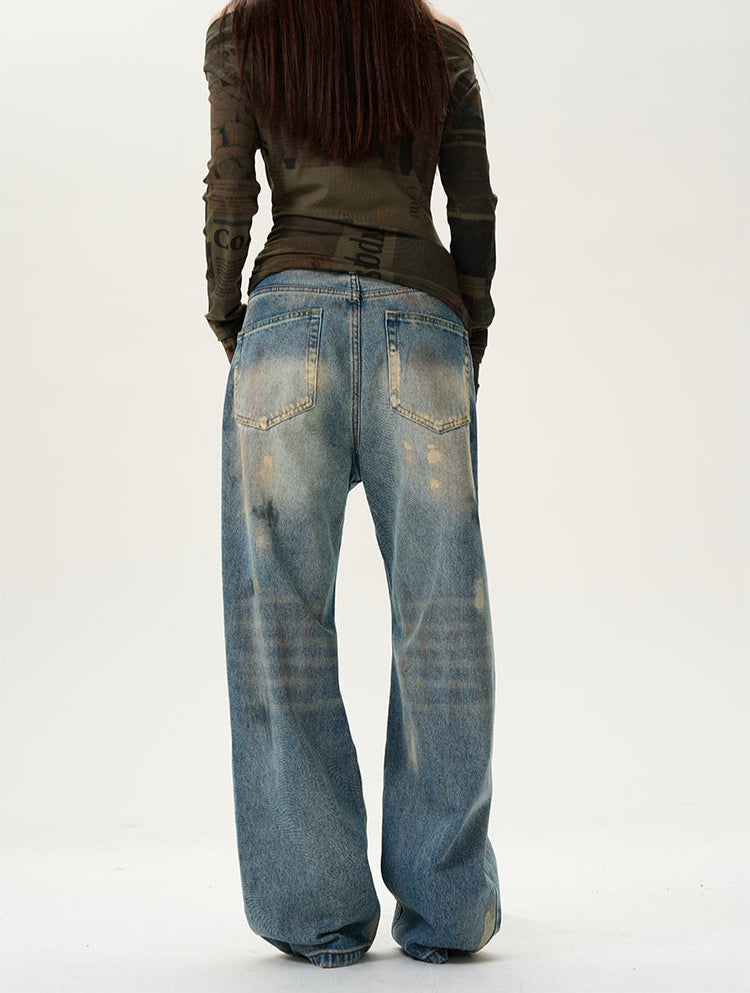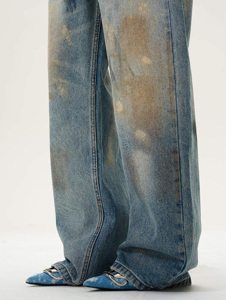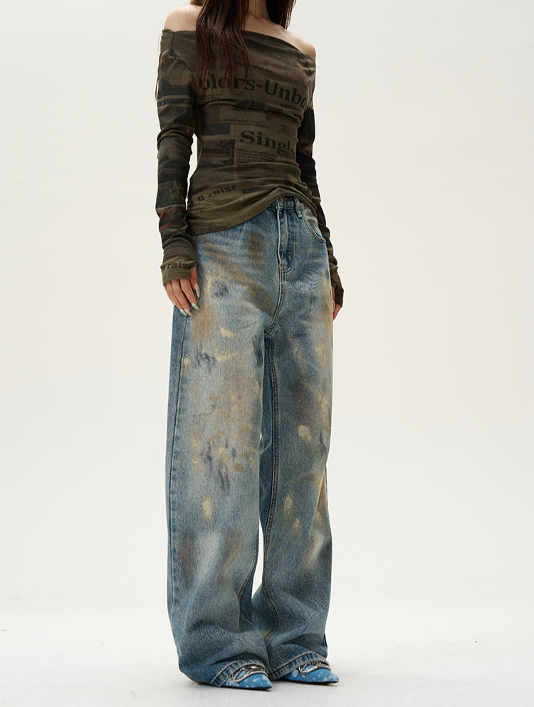 High Waist Wide Leg Paint Smudge Jeans