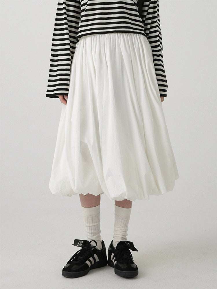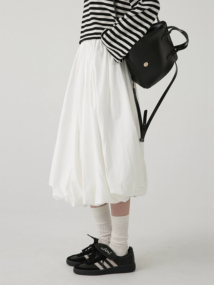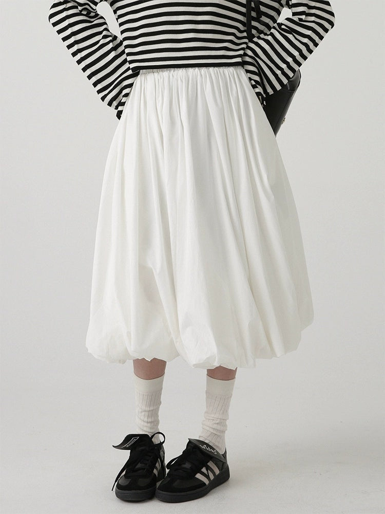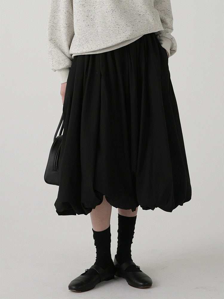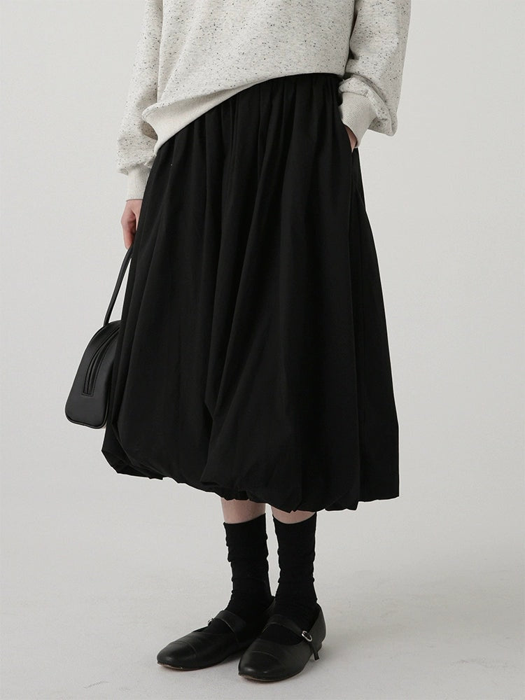 High-Waisted Balloon Midi Skirt with Pockets