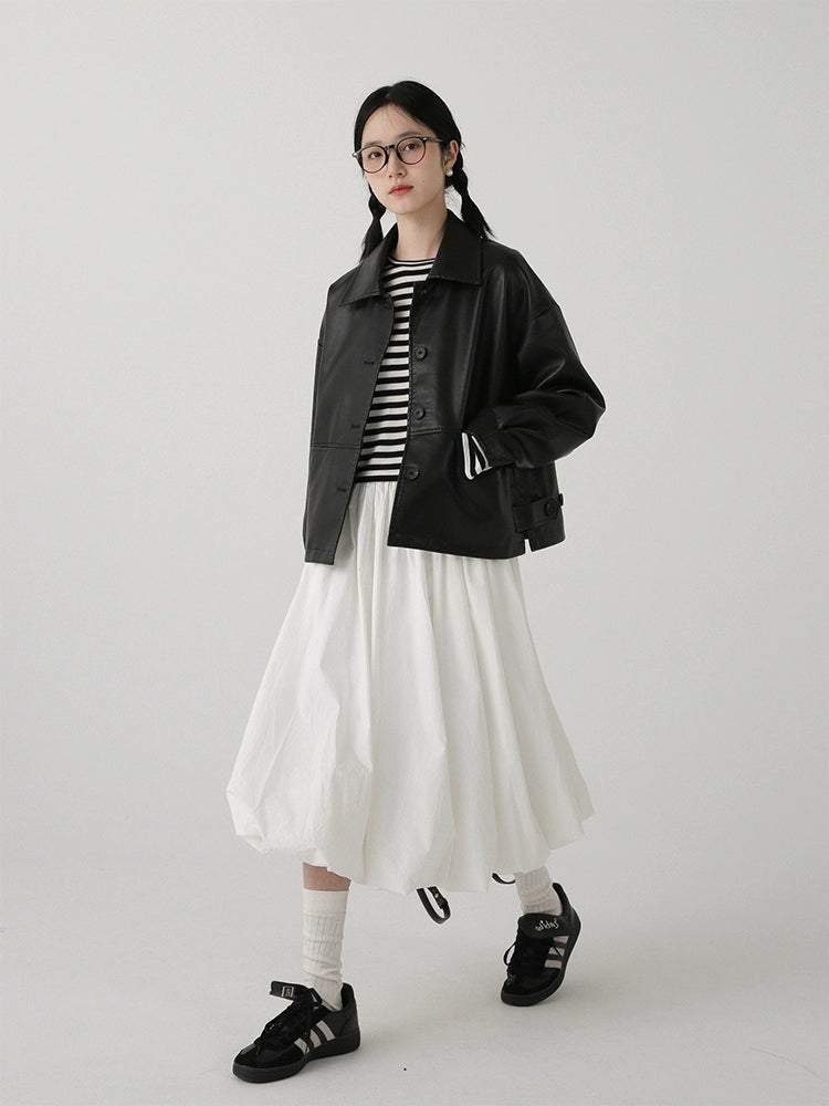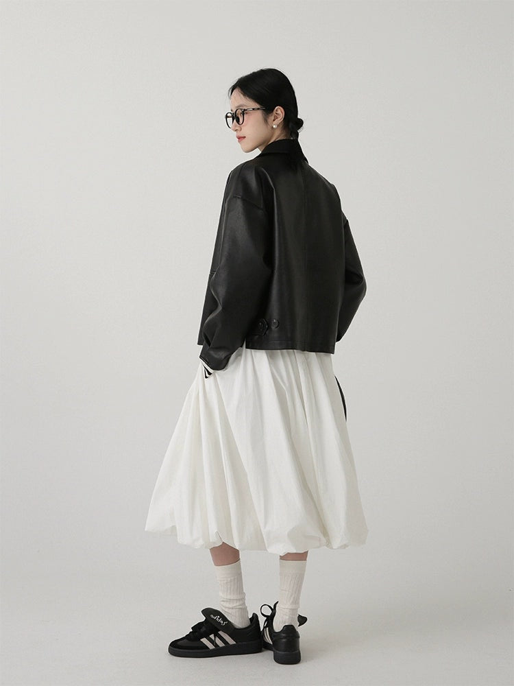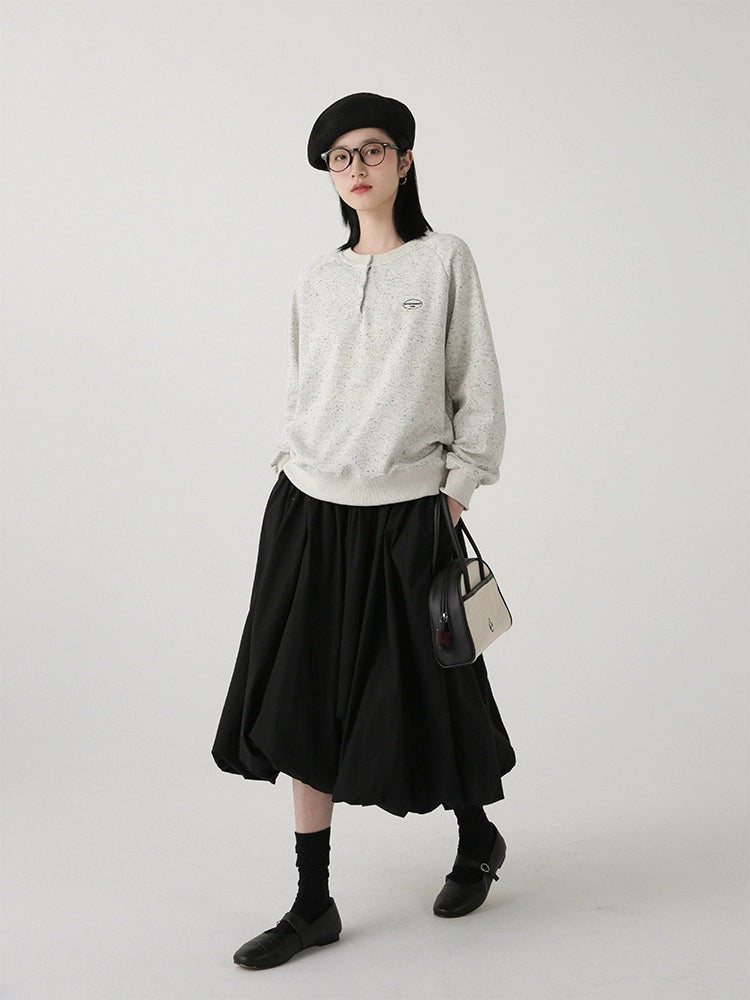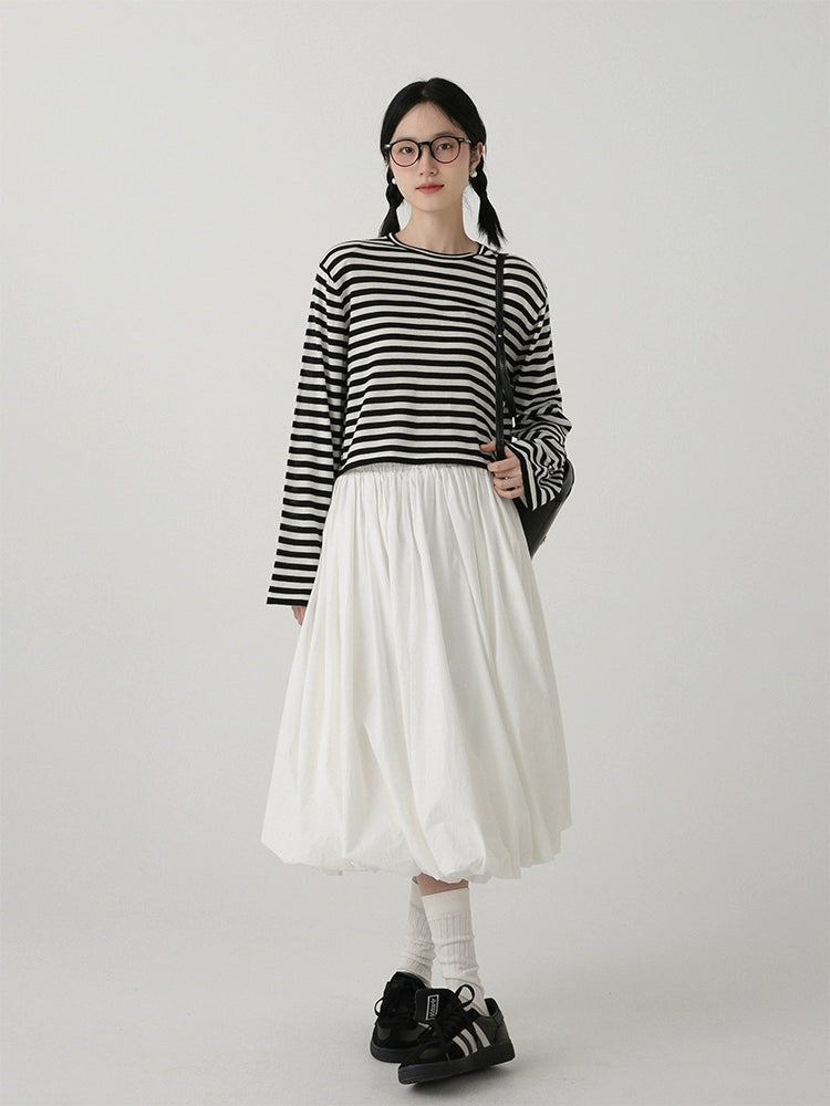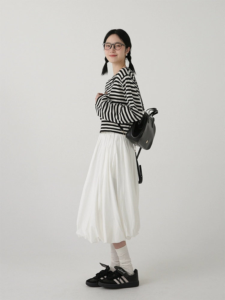 High-Waisted Balloon Midi Skirt with Pockets
