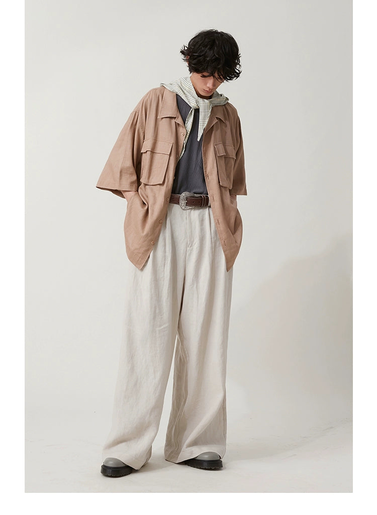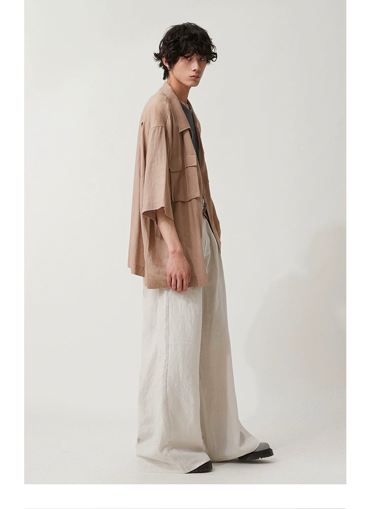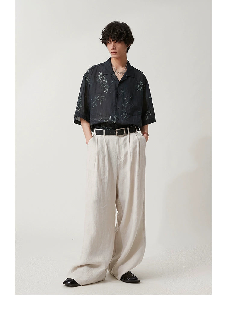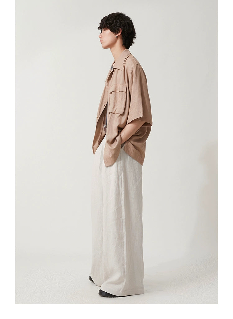 Crafted from a premium blend of materials, these trousers boast a comfortable hand and a subtly wrinkled texture that adds a touch of edginess. The wide-leg cut and loose straight fit are carefully designed to flatter and elongate, making a statement with their understated yet fashion-forward vibe.
