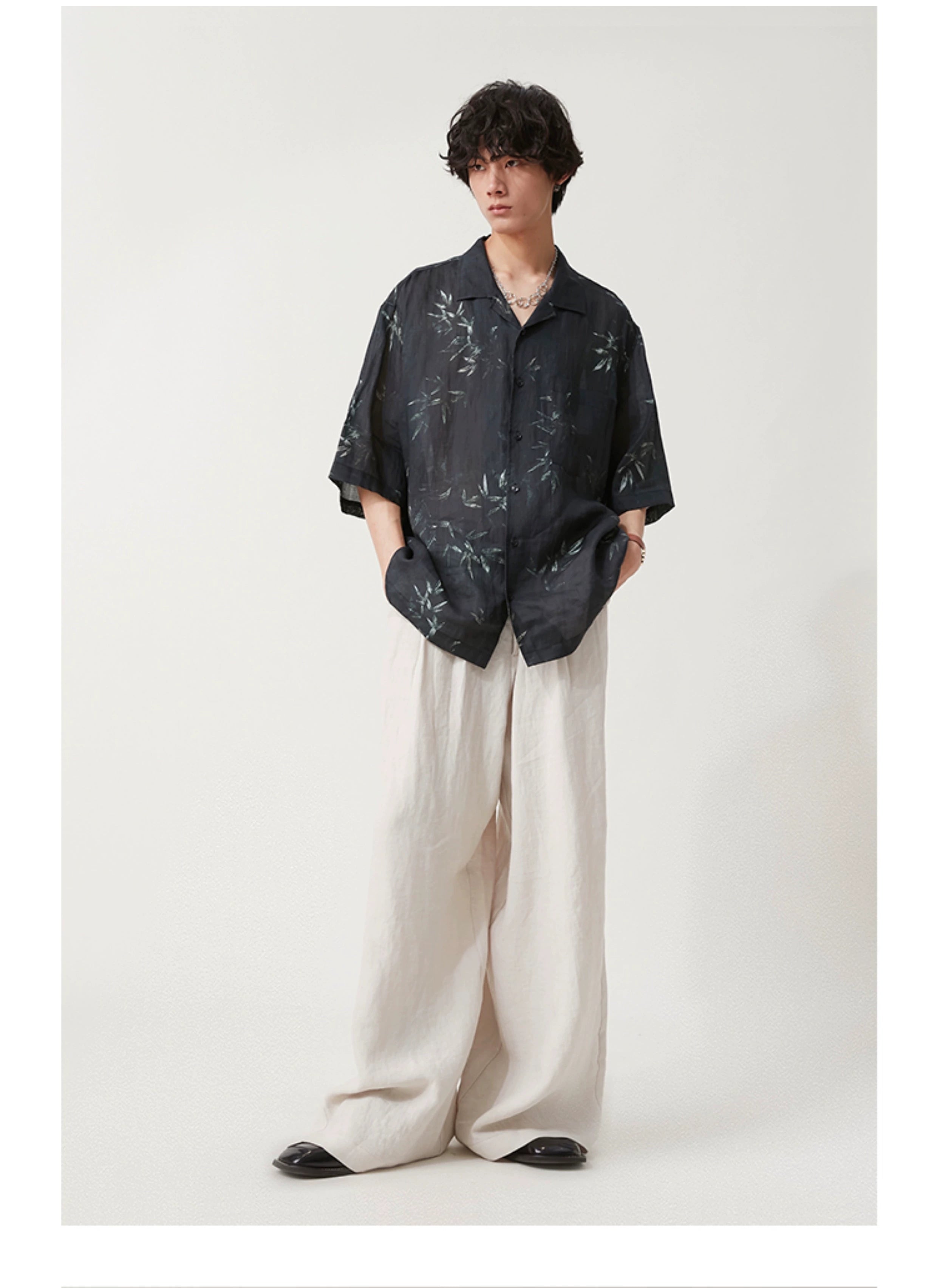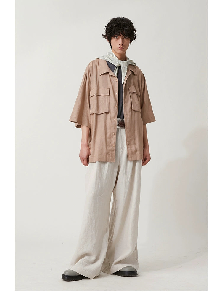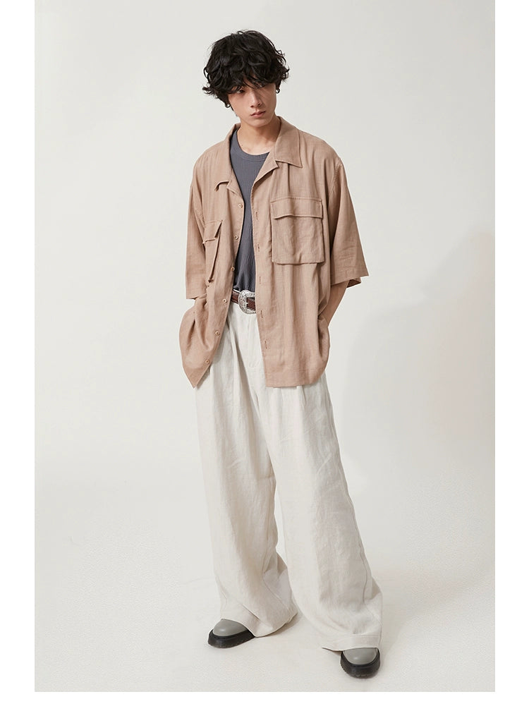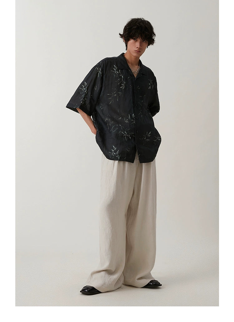 Crafted from a premium blend of materials, these trousers boast a comfortable hand and a subtly wrinkled texture that adds a touch of edginess. The wide-leg cut and loose straight fit are carefully designed to flatter and elongate, making a statement with their understated yet fashion-forward vibe.