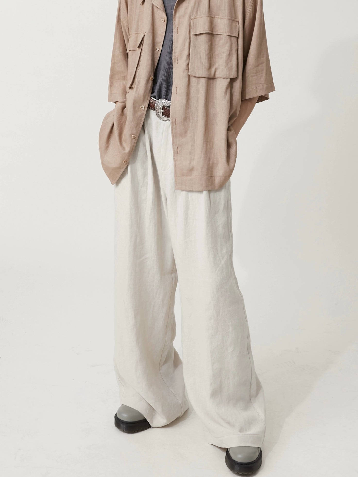 Read full Return PolicyInfuse laid-back sophistication into your wardrobe with our High-Waisted Wide-Leg Linen Trousers, ideal for creating a relaxed yet polished look.