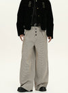 Houndstooth Pattern Button-Fly Wide Leg Trousers