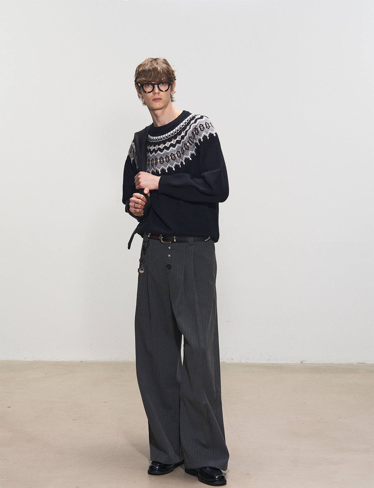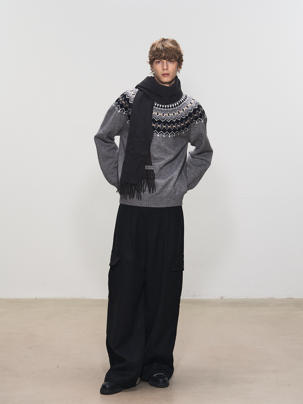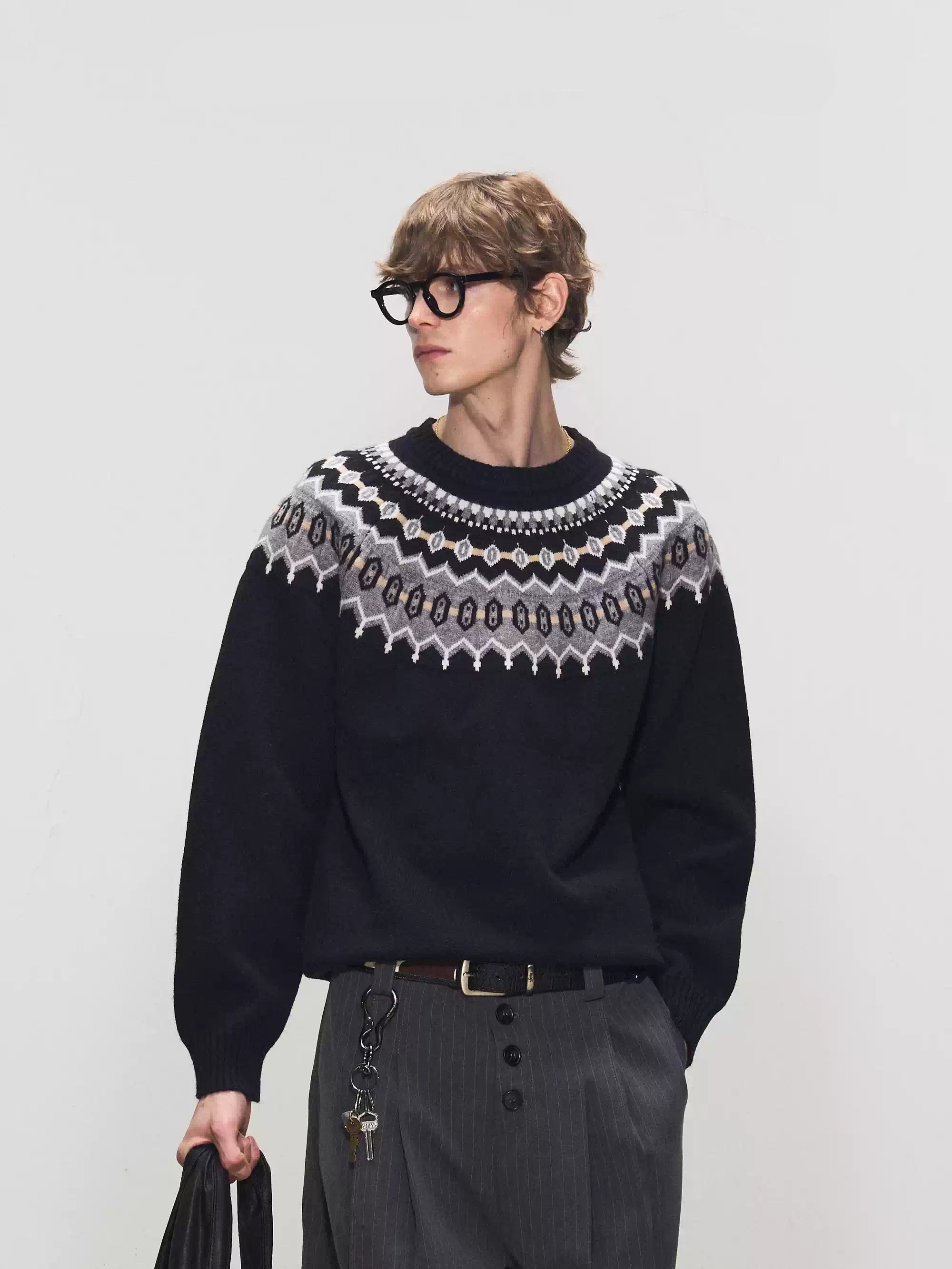 Jacquard Knit Crew Neck Sweater with Fair Isle Pattern