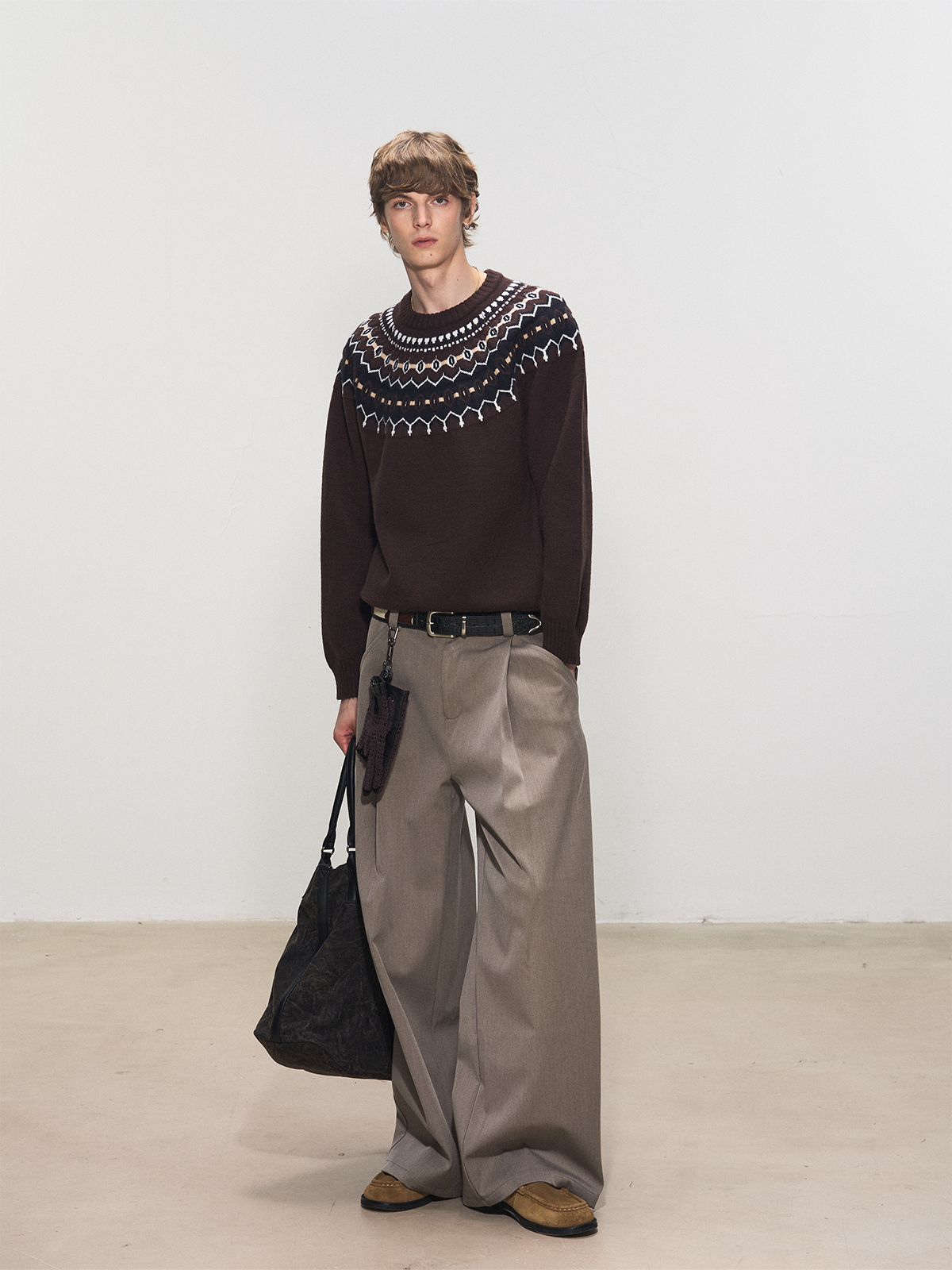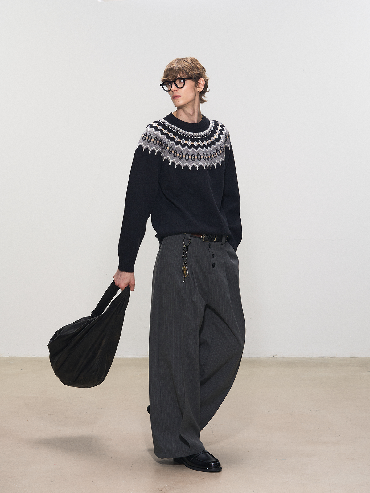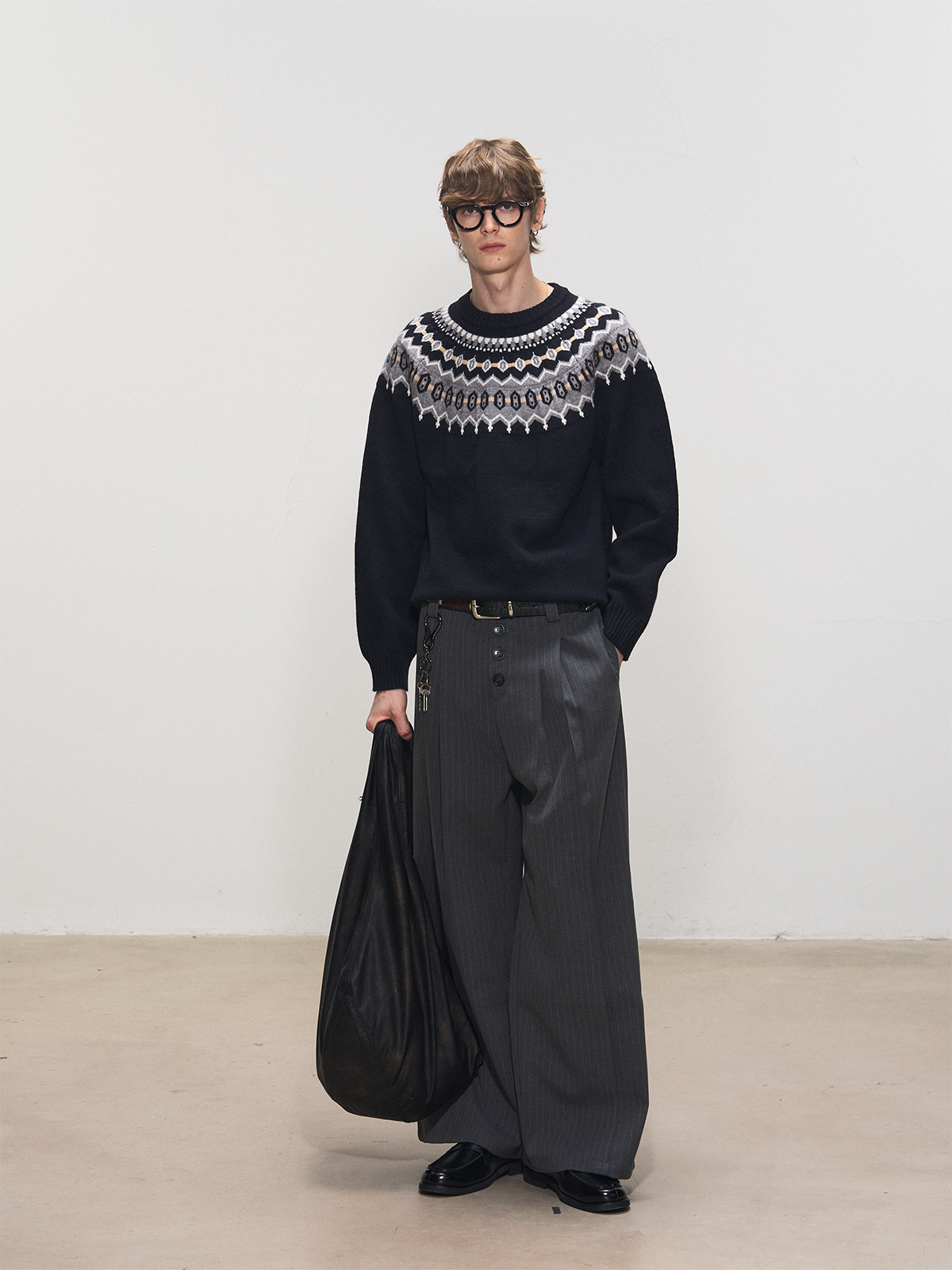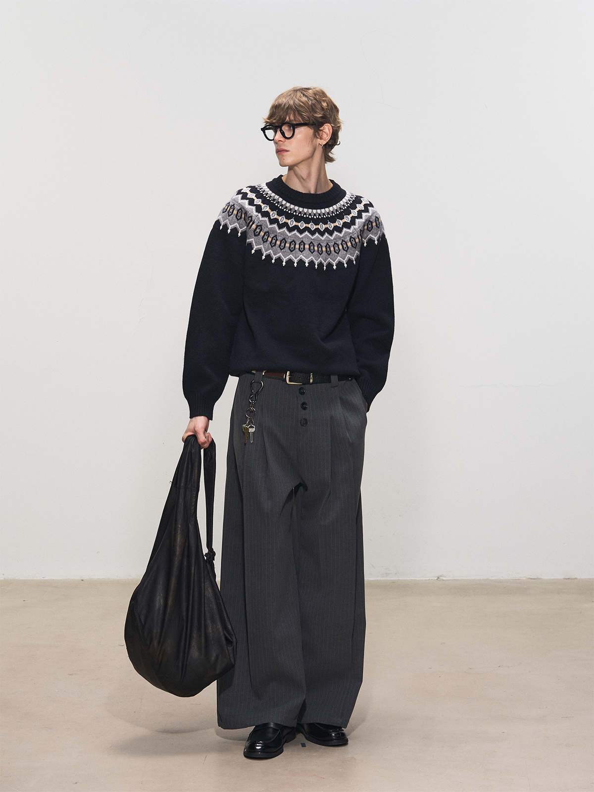 Jacquard Knit Crew Neck Sweater with Fair Isle Pattern