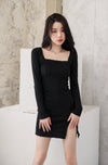 Read full Return PolicyKnit bodycon dress with split hem and a square collar for extra detail, best worn under outerwear and with boots.