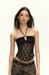 Crafted from a blend of polyamide fiber and spandex, this top offers both comfort and a flattering fit. The delicate lace overlay provides a textured, nuanced look, while the unique halter neck adds a touch of street-inspired flair. Perfect for those who appreciate a garment that marries sophistication with a bit of an edge.