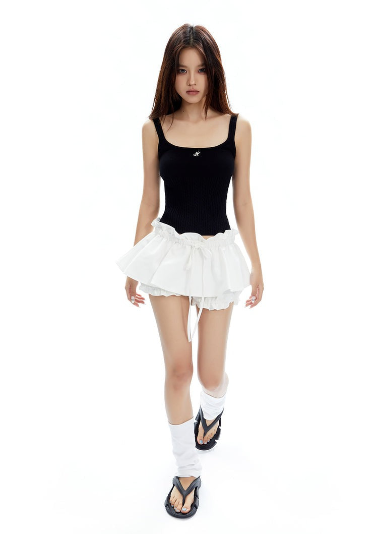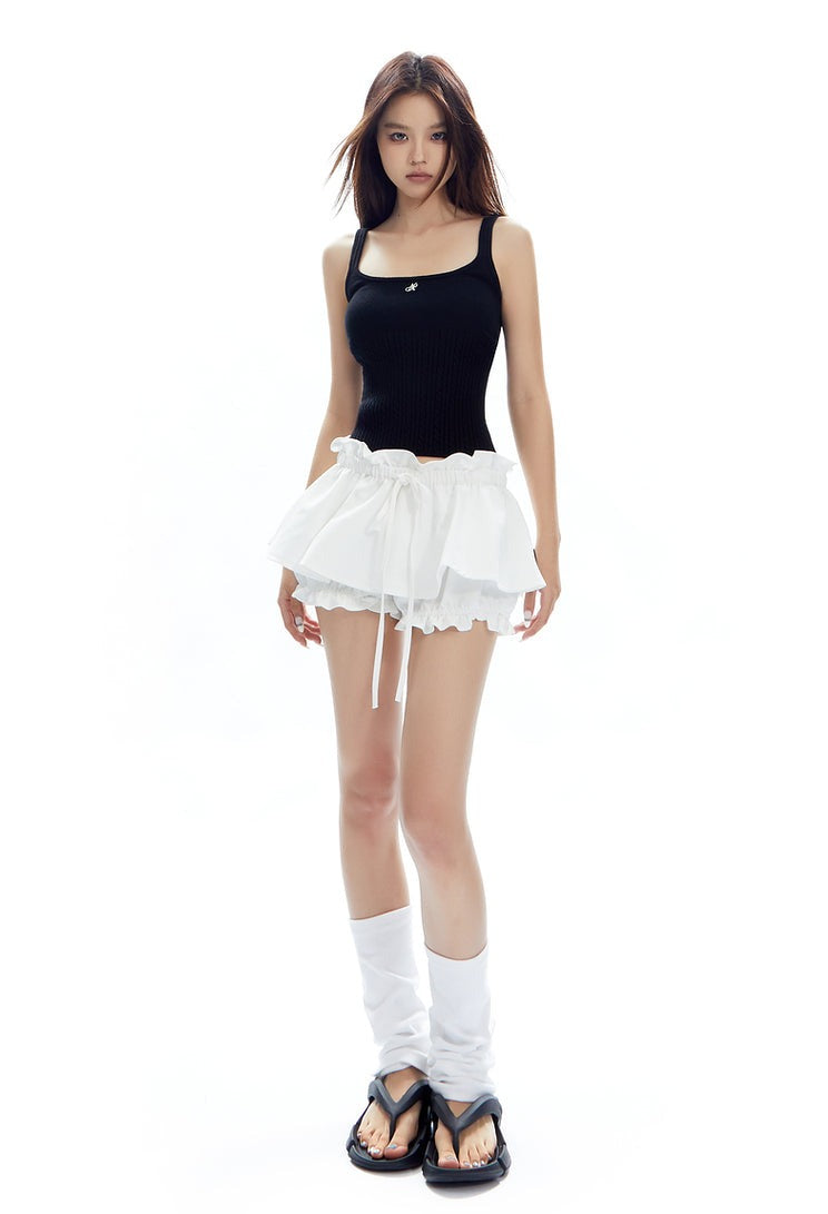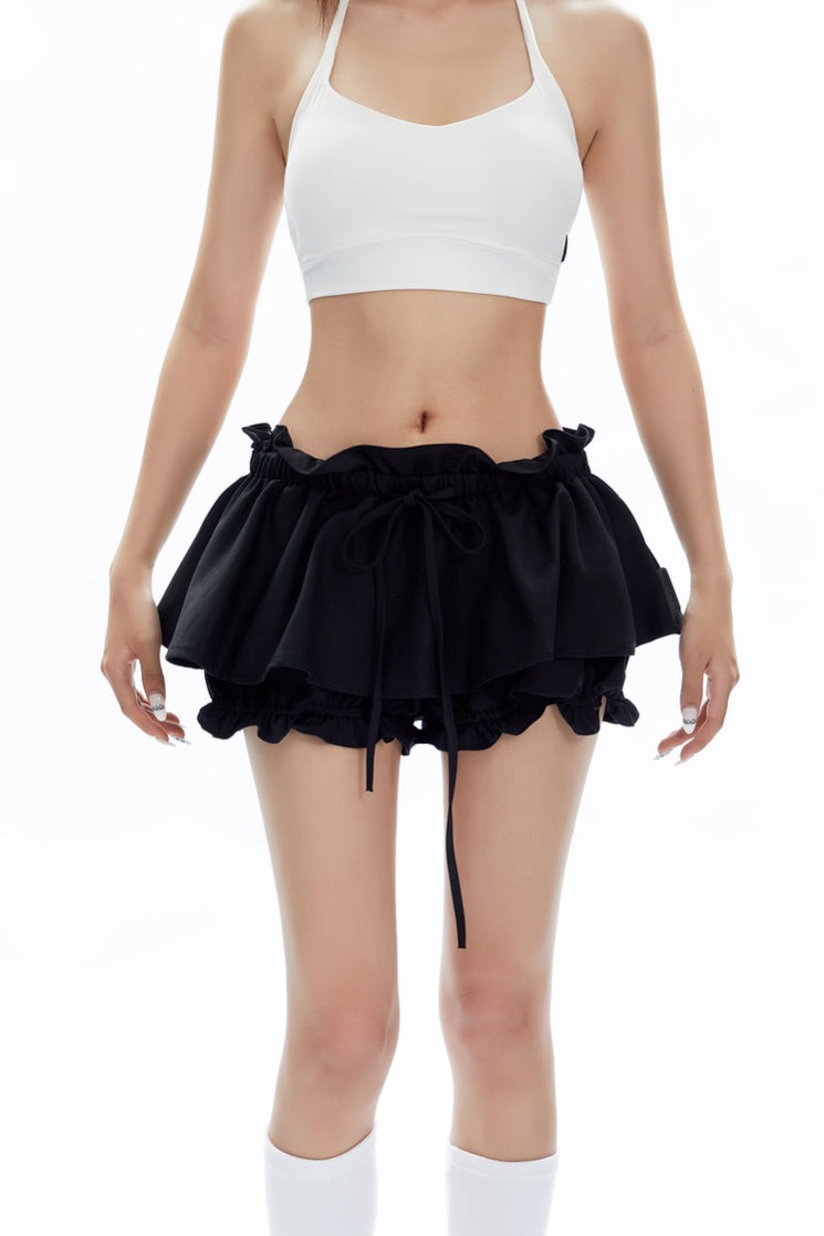 Layered Ruffle Mini Skirt Shorts with Drawstring Detail