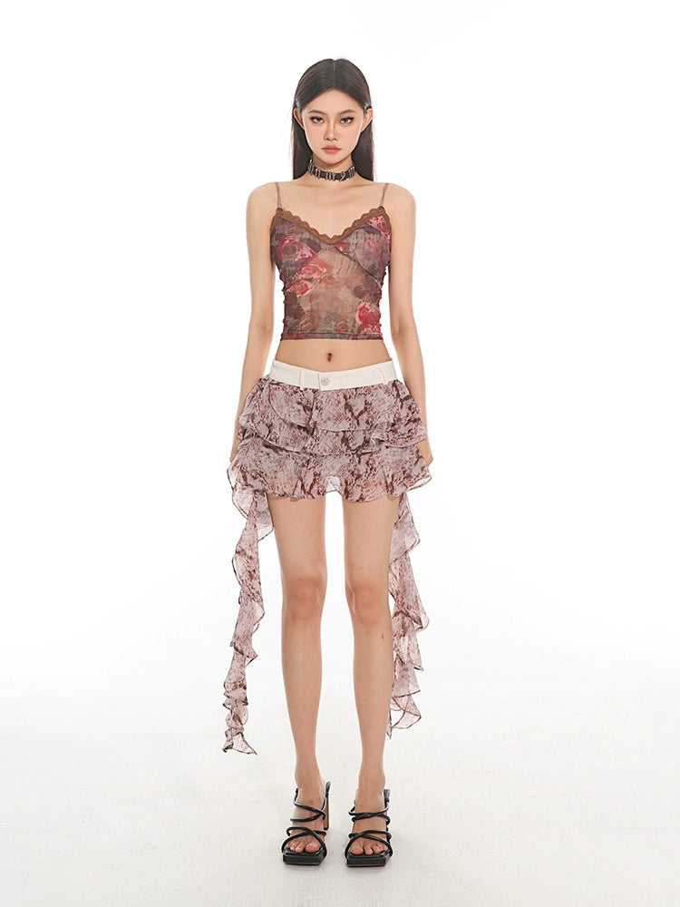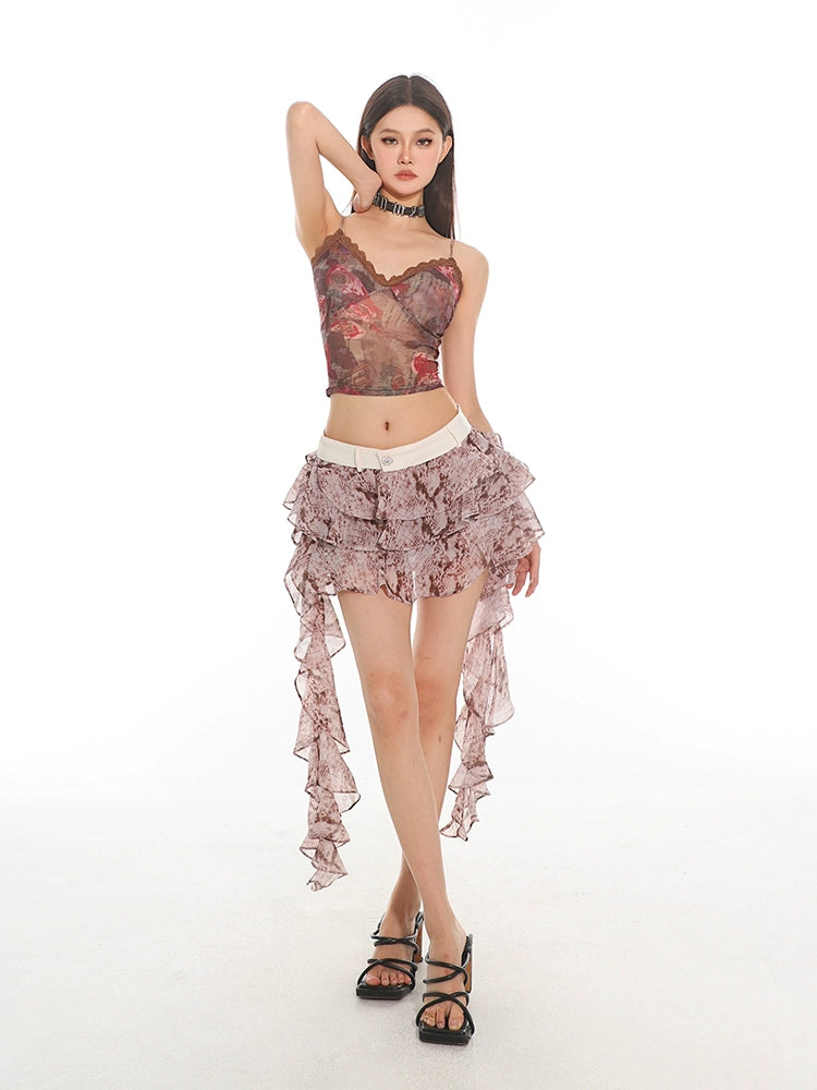 Read full Return PolicyInfuse your wardrobe with a touch of whimsy with this Layered Ruffle Mini Skirt, showcasing playful ruffle tassels that swing with each step.