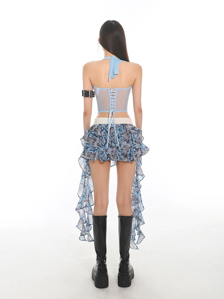 Layered Ruffle Mini Skirt with Ruffle Tassel Tie Detail