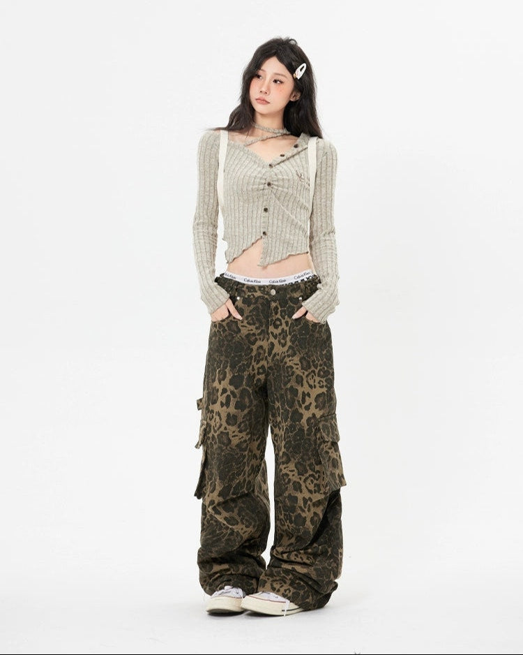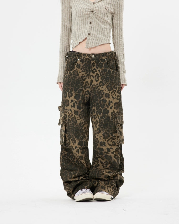 Read full Return PolicyUnleash your wild side with our Leopard Print Cargo Pocket Wide Leg Pants, a bold statement in any wardrobe. These pants blend a fierce pattern with functional flair, featuring spacious cargo pockets for the perfect combination of style and practicality. Ideal for versatile fashion mavens, they command attention while fitting effortlessly into a myriad of settings – from laid-back days to nights out.
