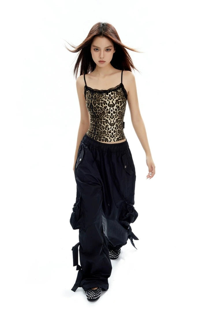 Read full Return PolicyUnleash your wild side with this Leopard Print Lace Trim Camisole Top, designed for the fashion-forward and confident.
