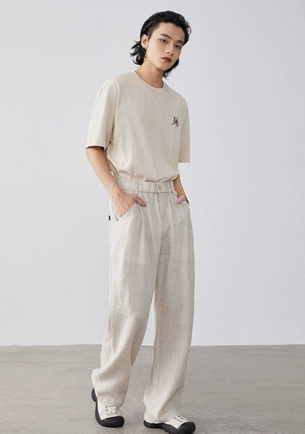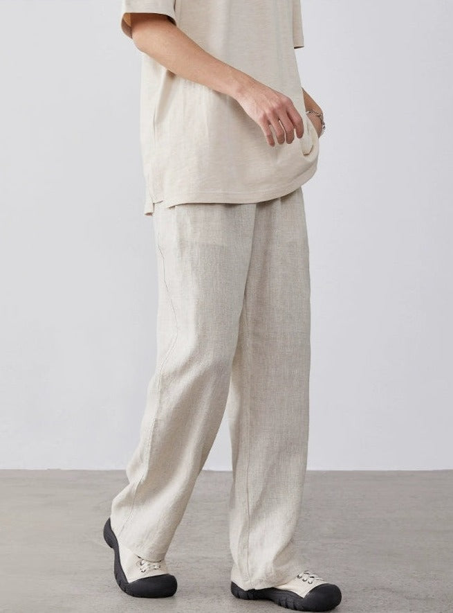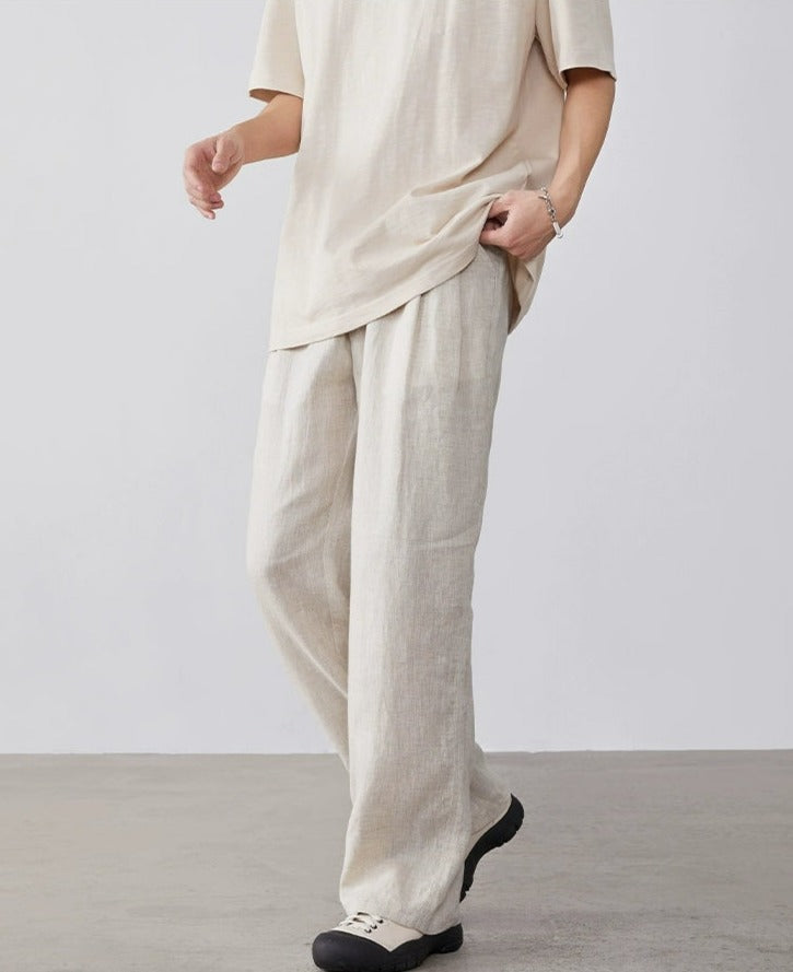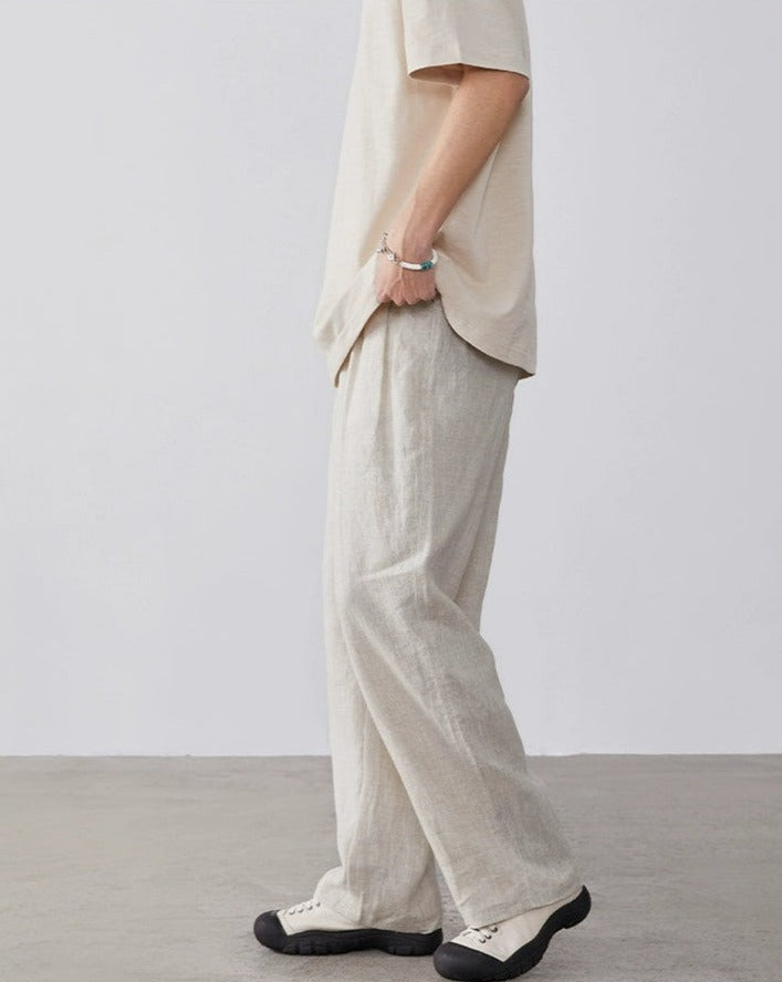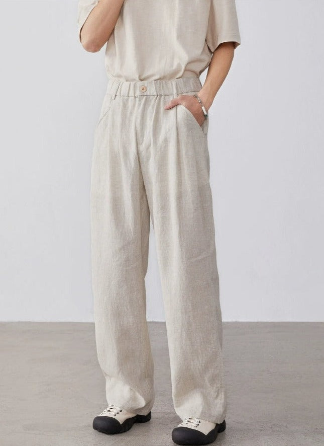 Expertly tailored from a refreshing blend of linen and cotton, these trousers offer a breathable and comfortable fit, ideal for warmer days. A practical, elastic waist ensures a snug fit, while the loose straight cut and solid color design lend a touch of nonchalant elegance.