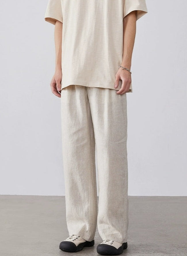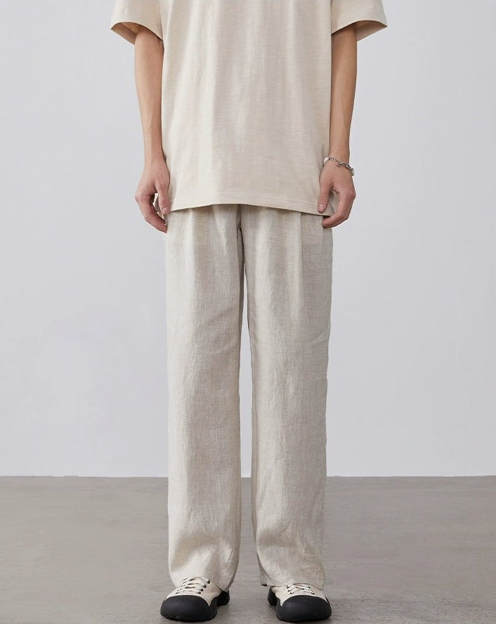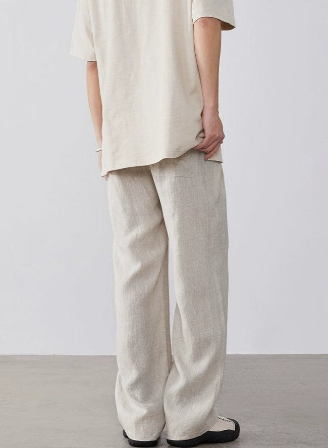 Linen High-Waisted Straight Fit Trousers