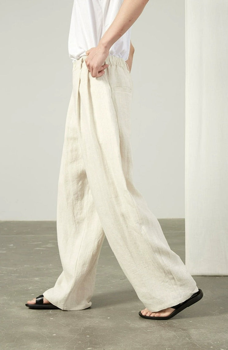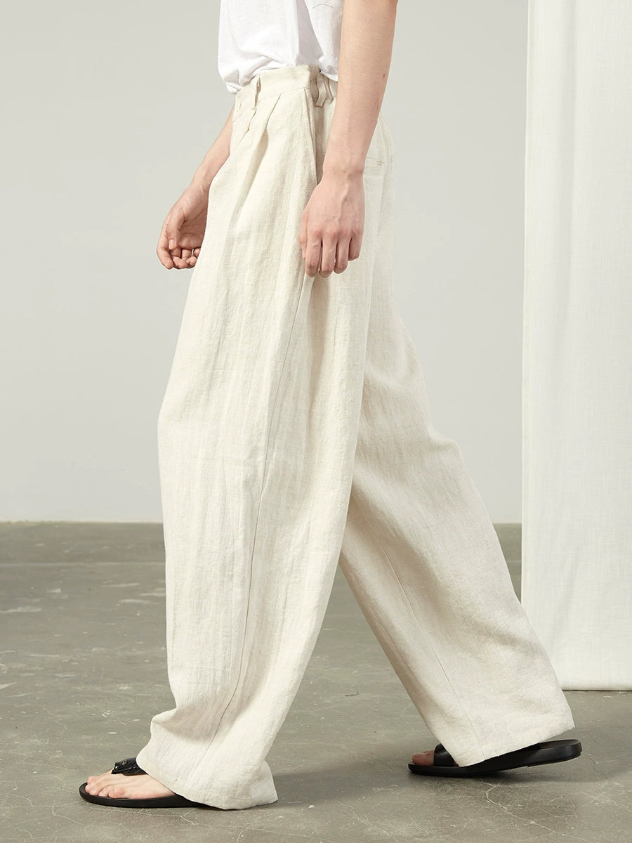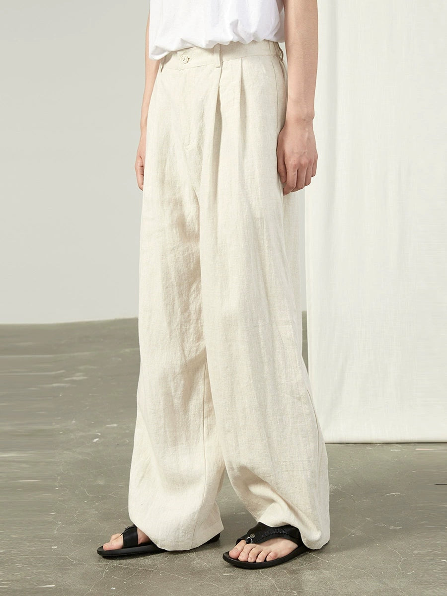 Linen Wide Leg Trousers with Pockets