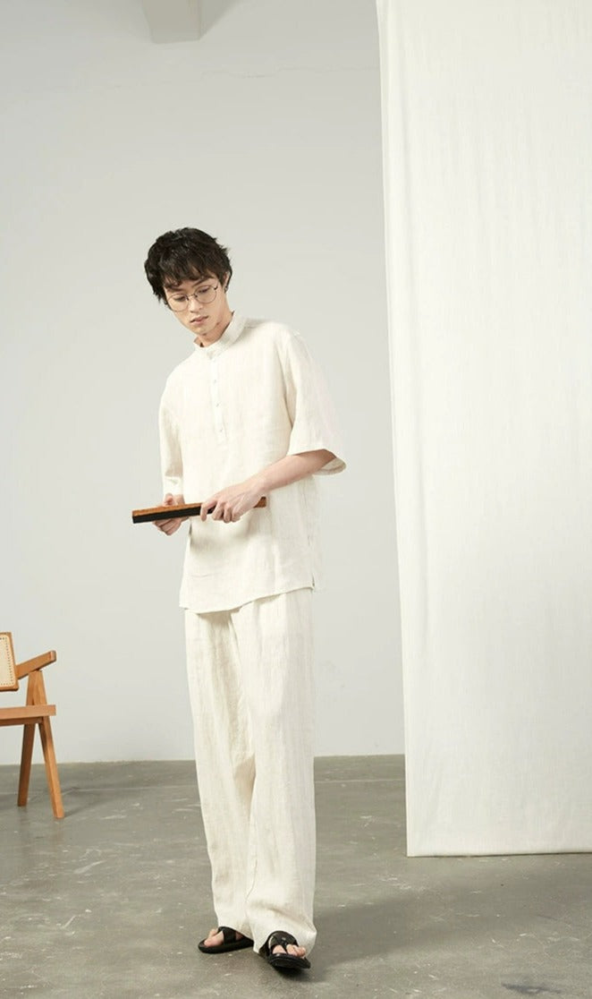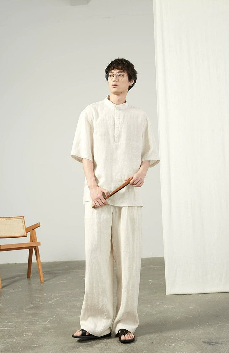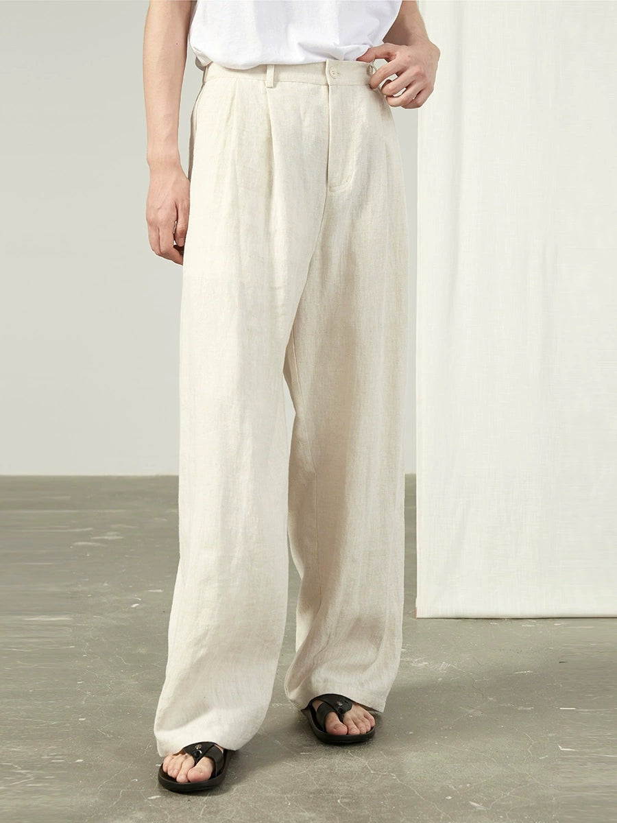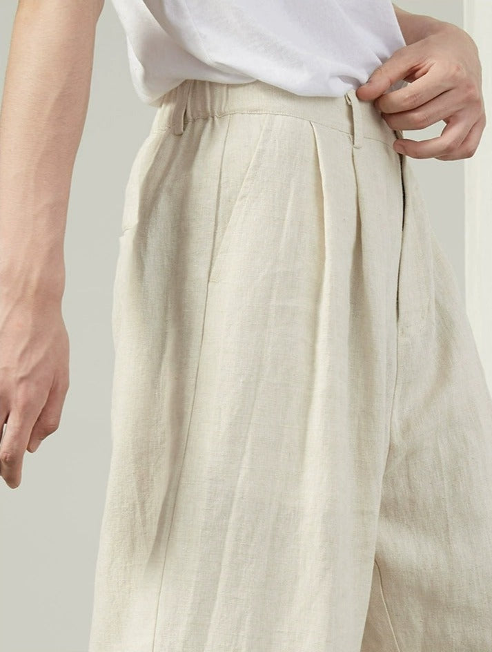 Linen Wide Leg Trousers with Pockets